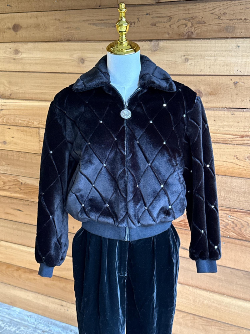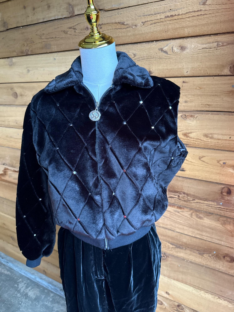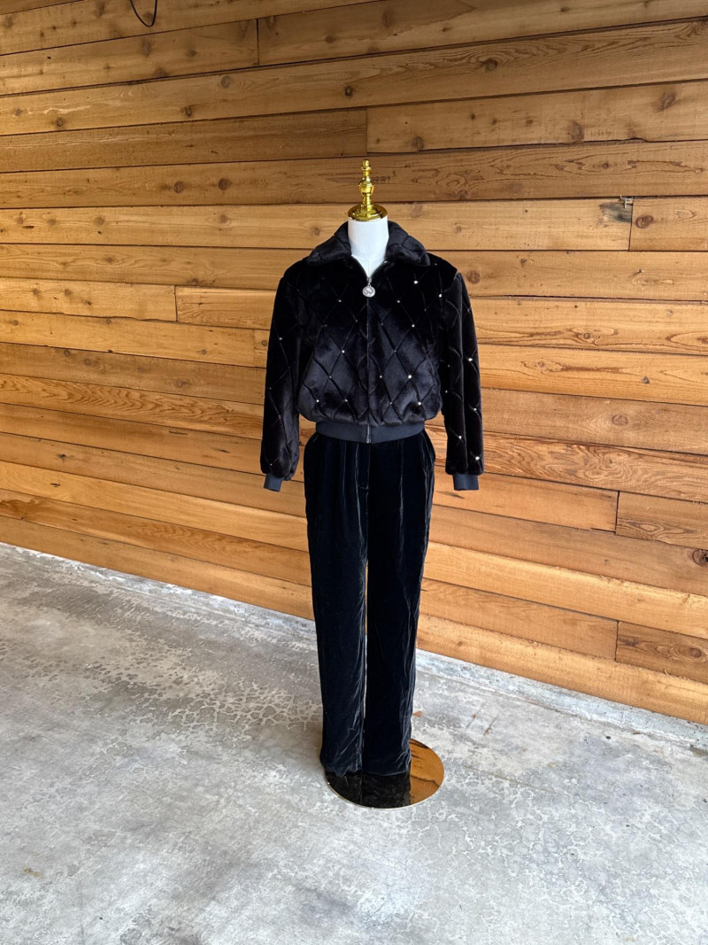 ST JOHN Velvety Pants (Sz 4) Studded Convertible Vest/Coat (Sz P)