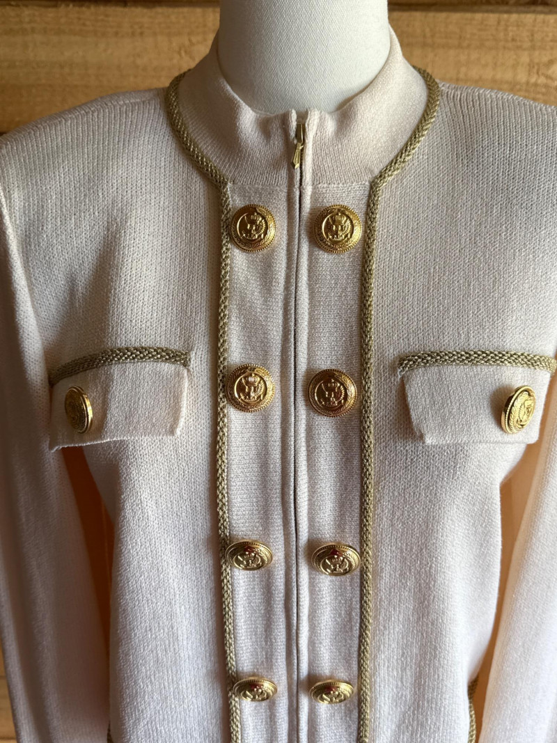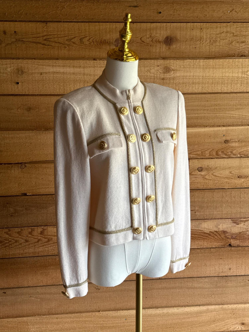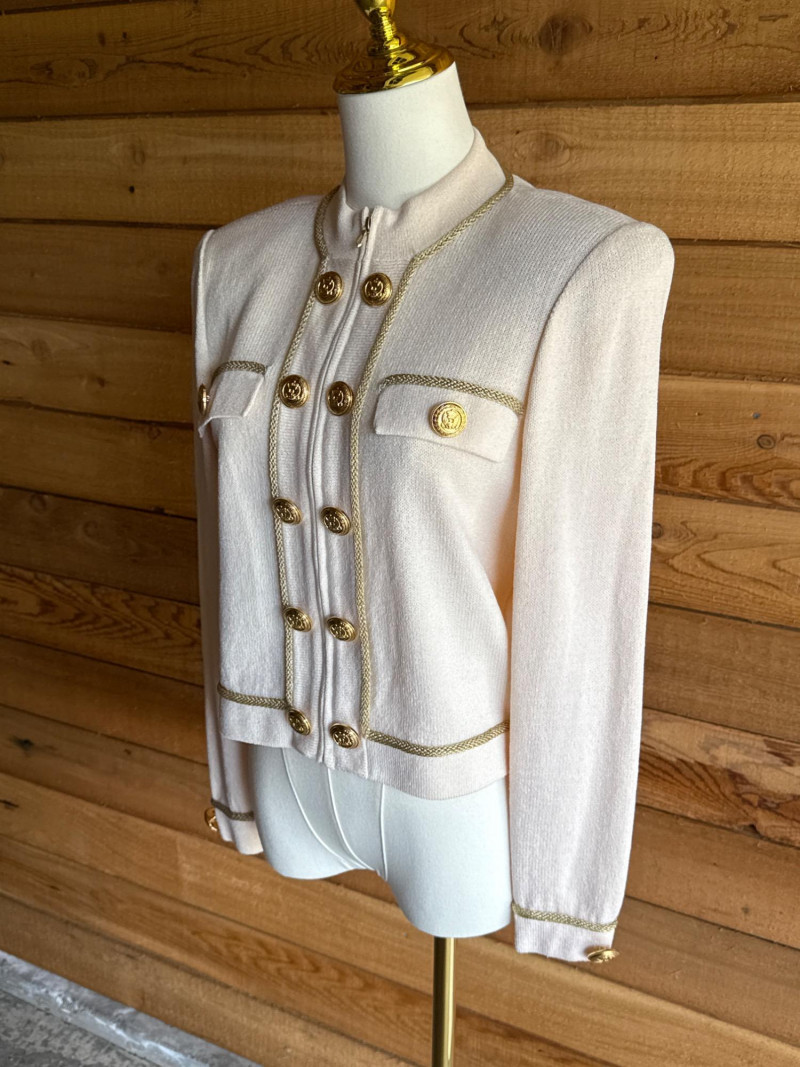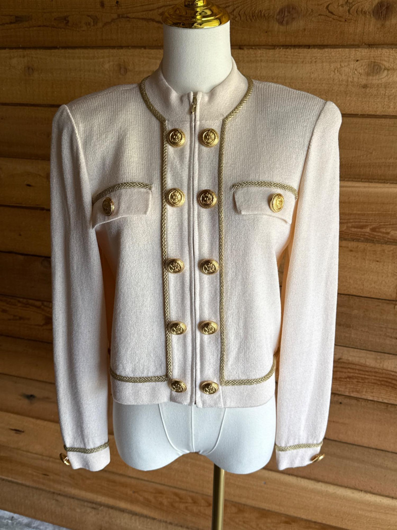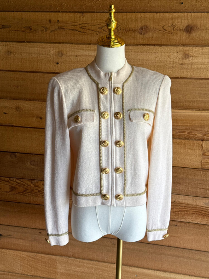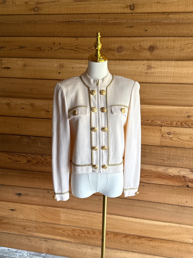 ST JOHN Ivory & Gold Trimmed Jacket- Sz S