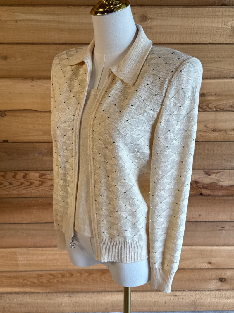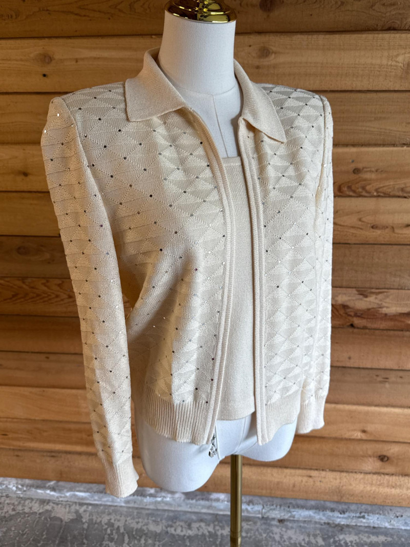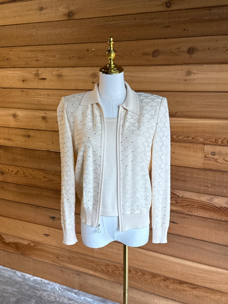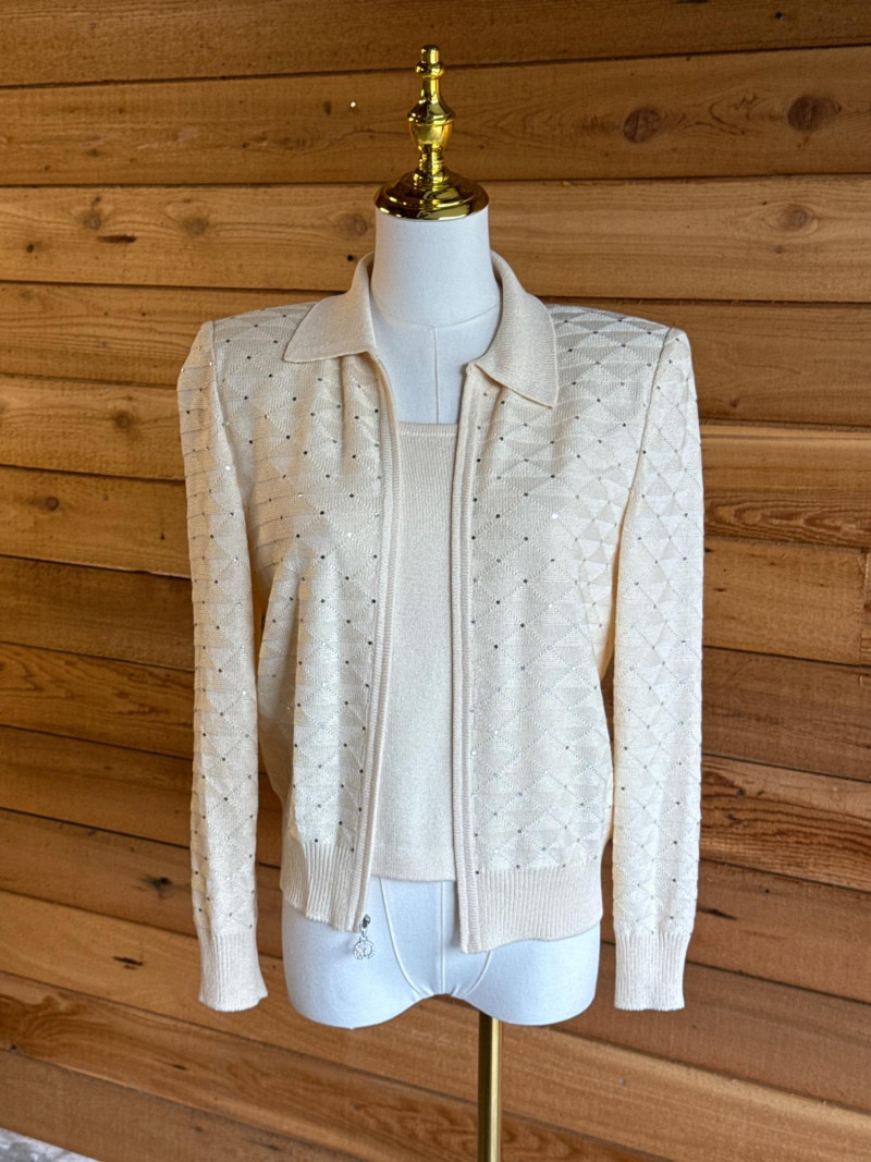 ST JOHN Evening Ivory Beaded Sweater Set- Sz S/2