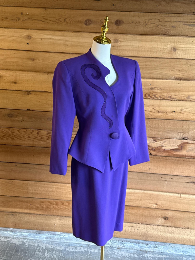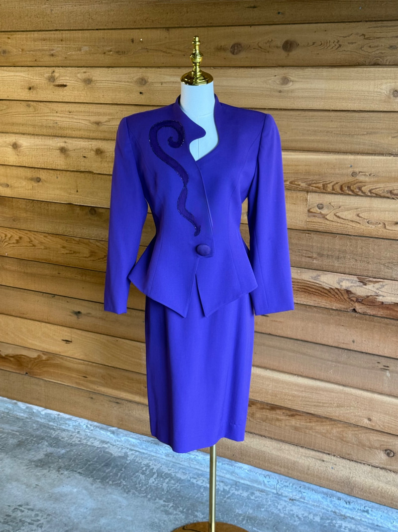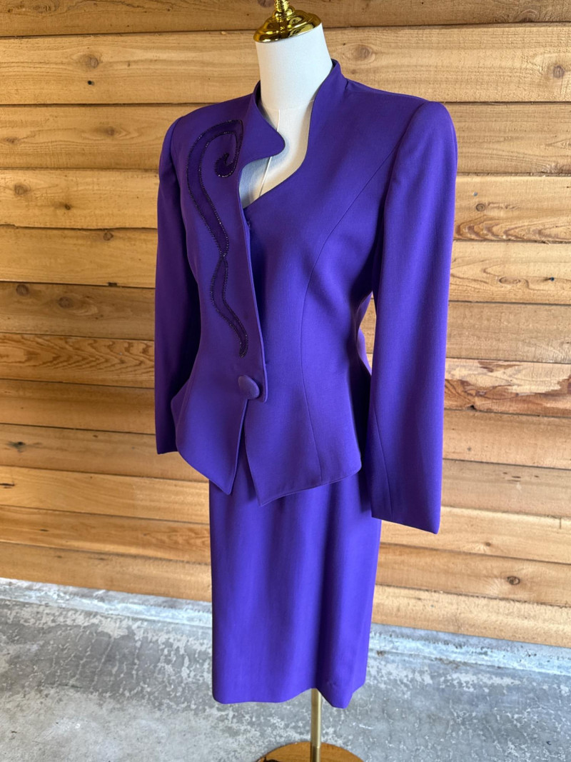 Lot # 144 - ALVIN BELL Vintage Purple Beaded Skirt Suit- Sz 6