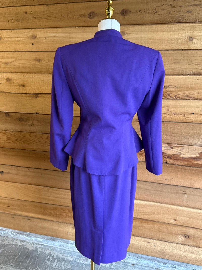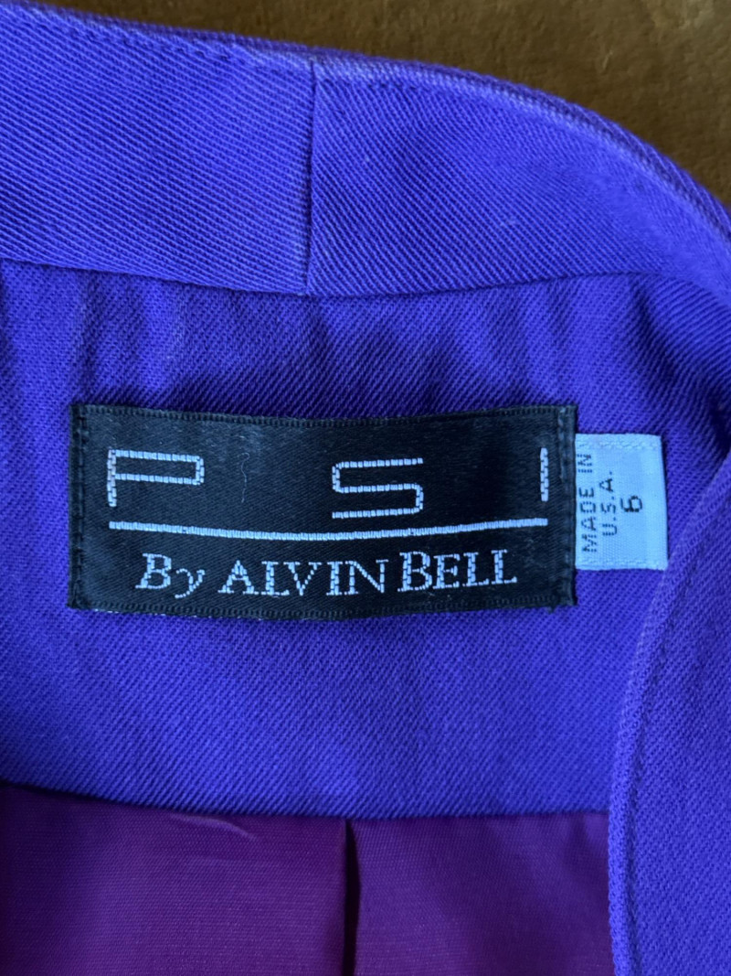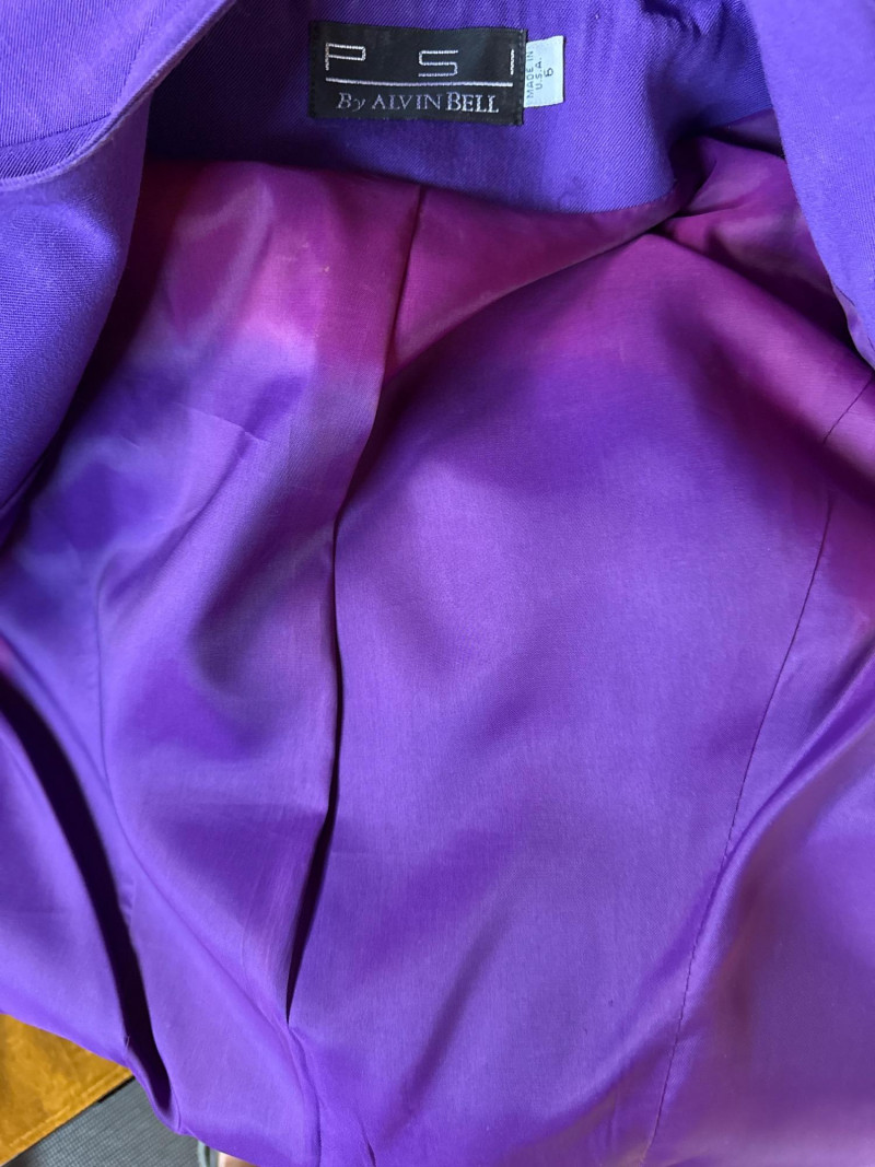 ALVIN BELL Vintage Purple Beaded Skirt Suit- Sz 6 *gently used vintage condition. There is a spot noticed on the front of jacket. Possibly could come out in dry cleaning? Rest of suit is fantastic condition.
