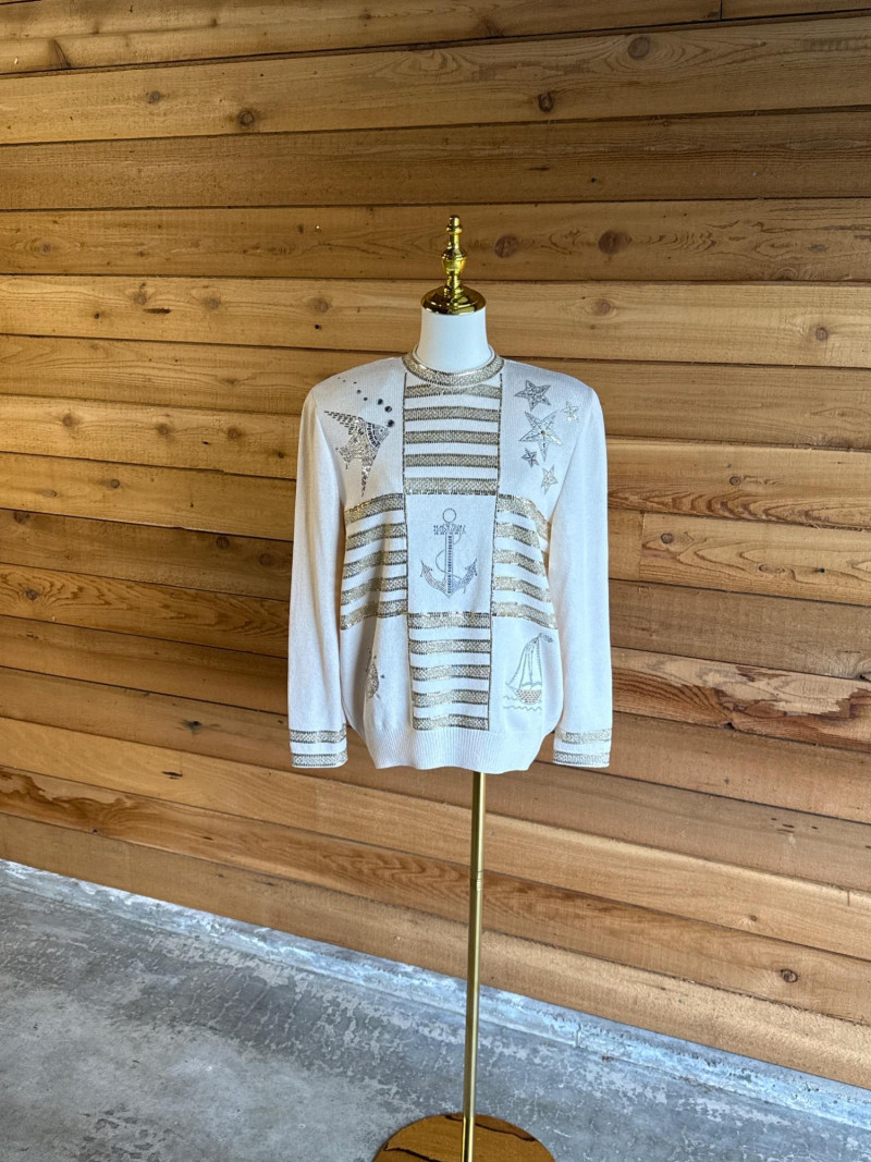 Lot # 30 - ST JOHN Evening Ivory Beaded Nautical Sweater- Sz 2