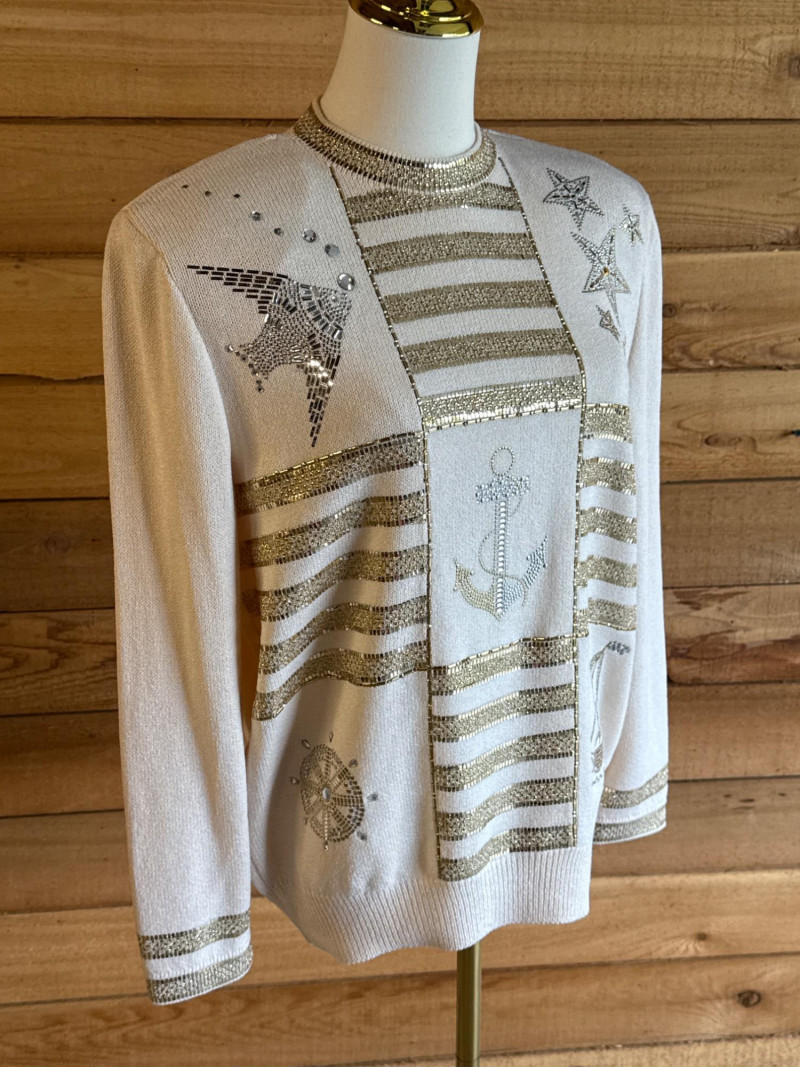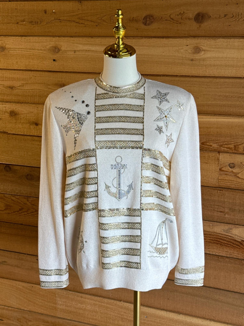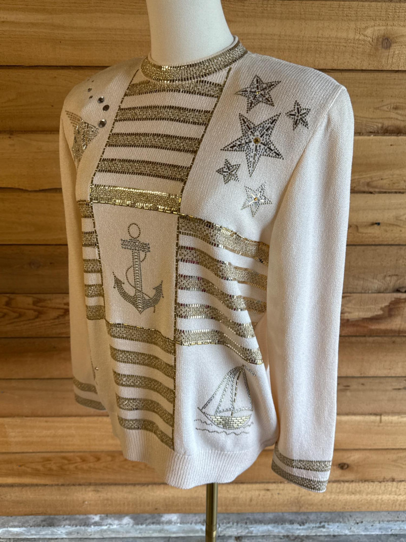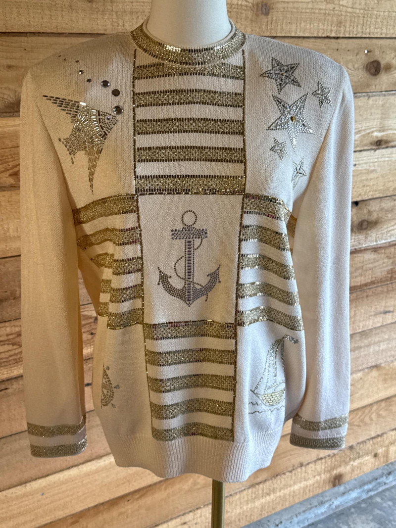 ST JOHN Evening Ivory Beaded Nautical Sweater- Sz 2