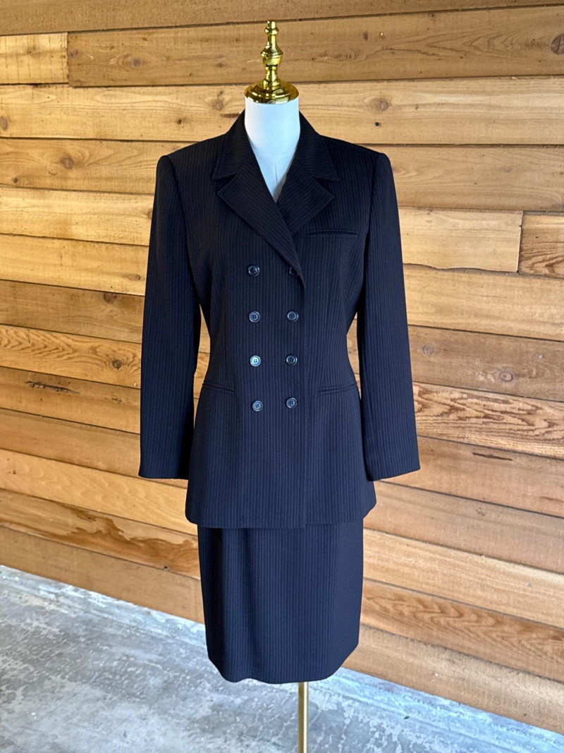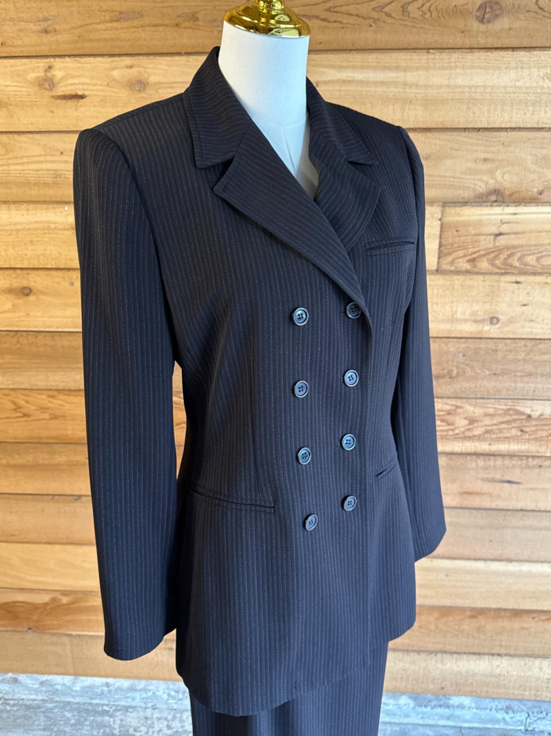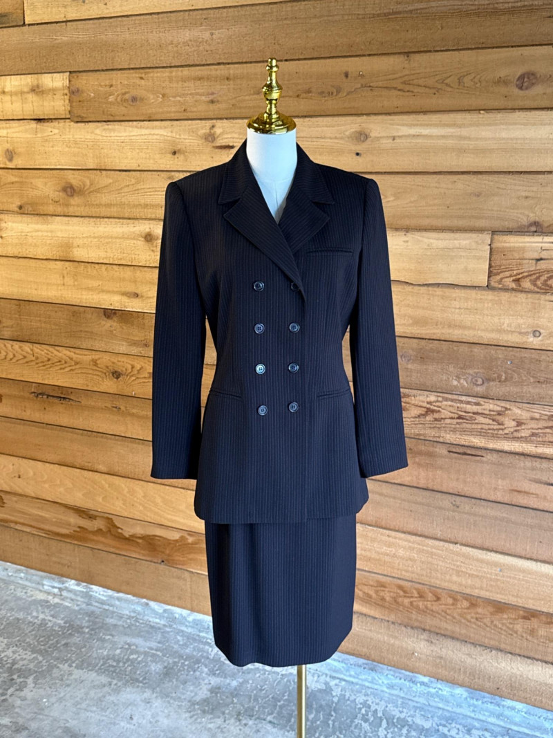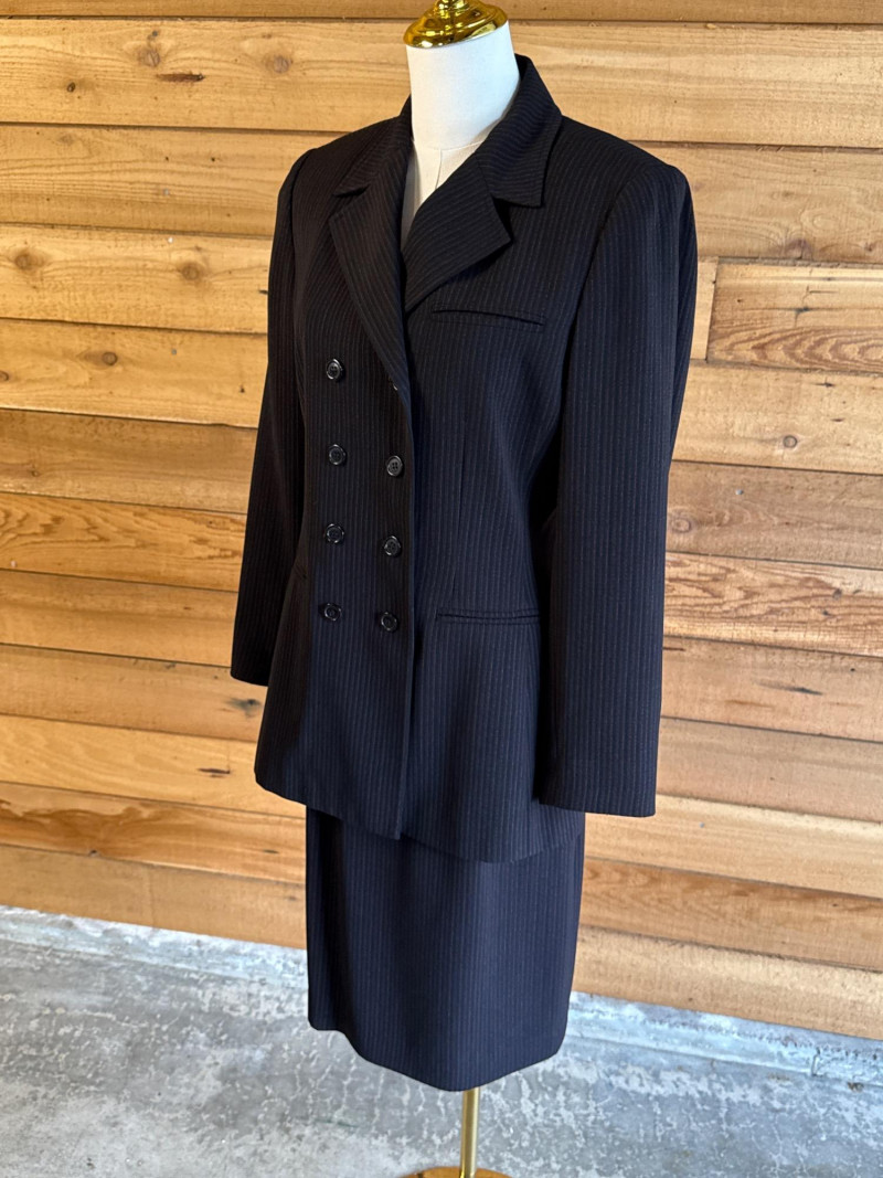 ALBERT NIPON Vintage Black Pinstriped Skirt Suit- Sz 4