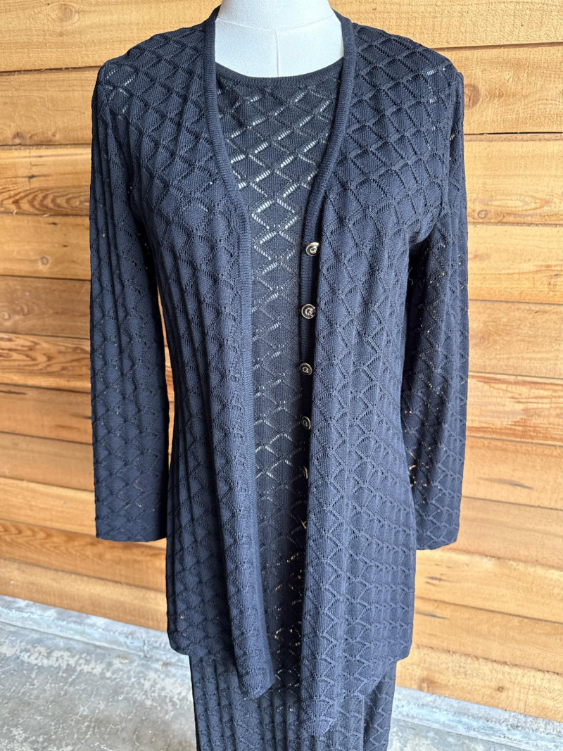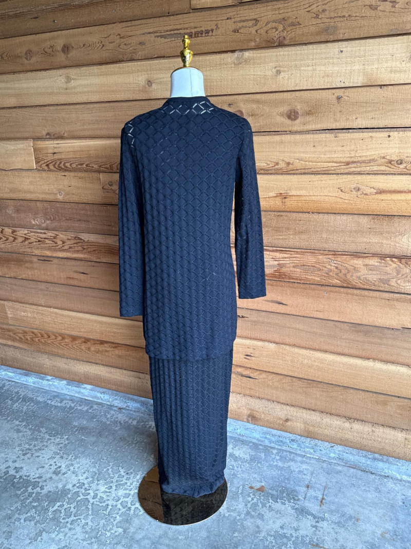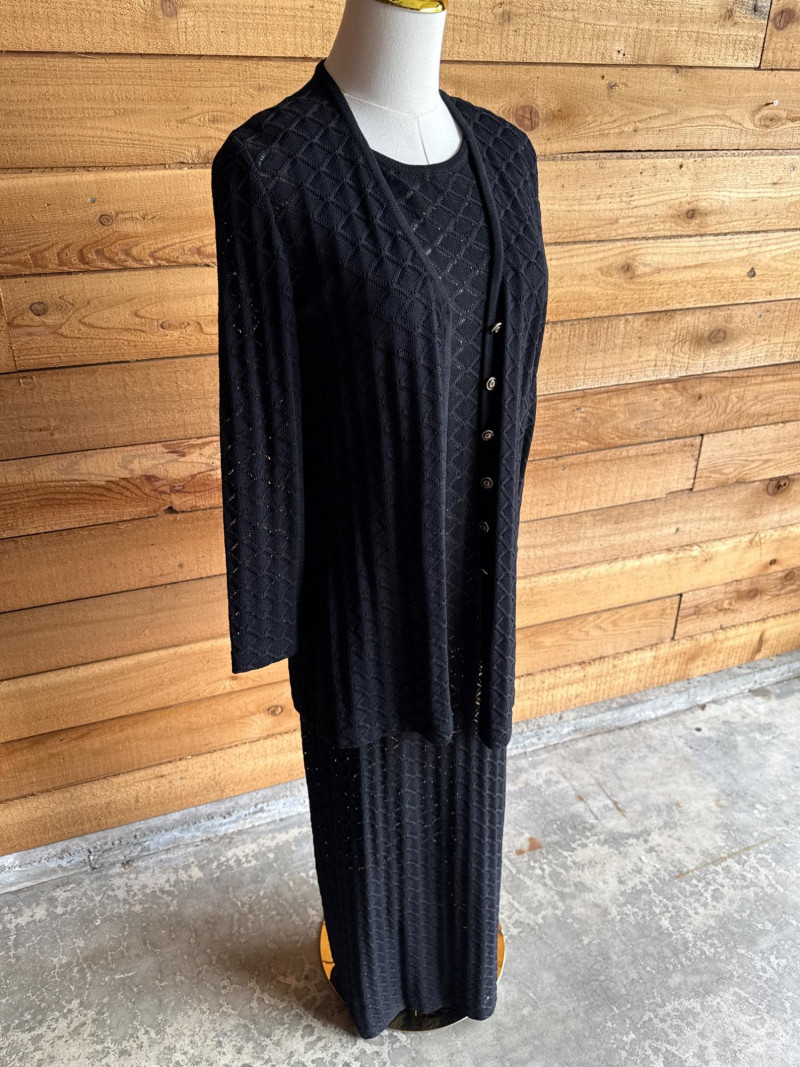 ST JOHN Black Knit Coverup Maxi Dress & Cardigan- Sz 4 *unlined