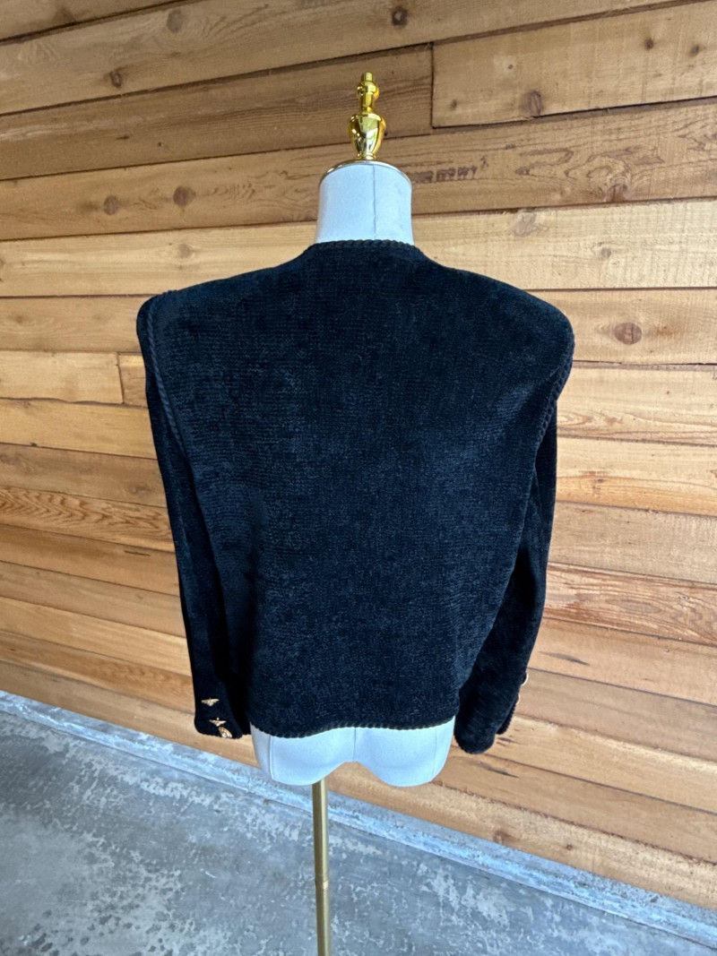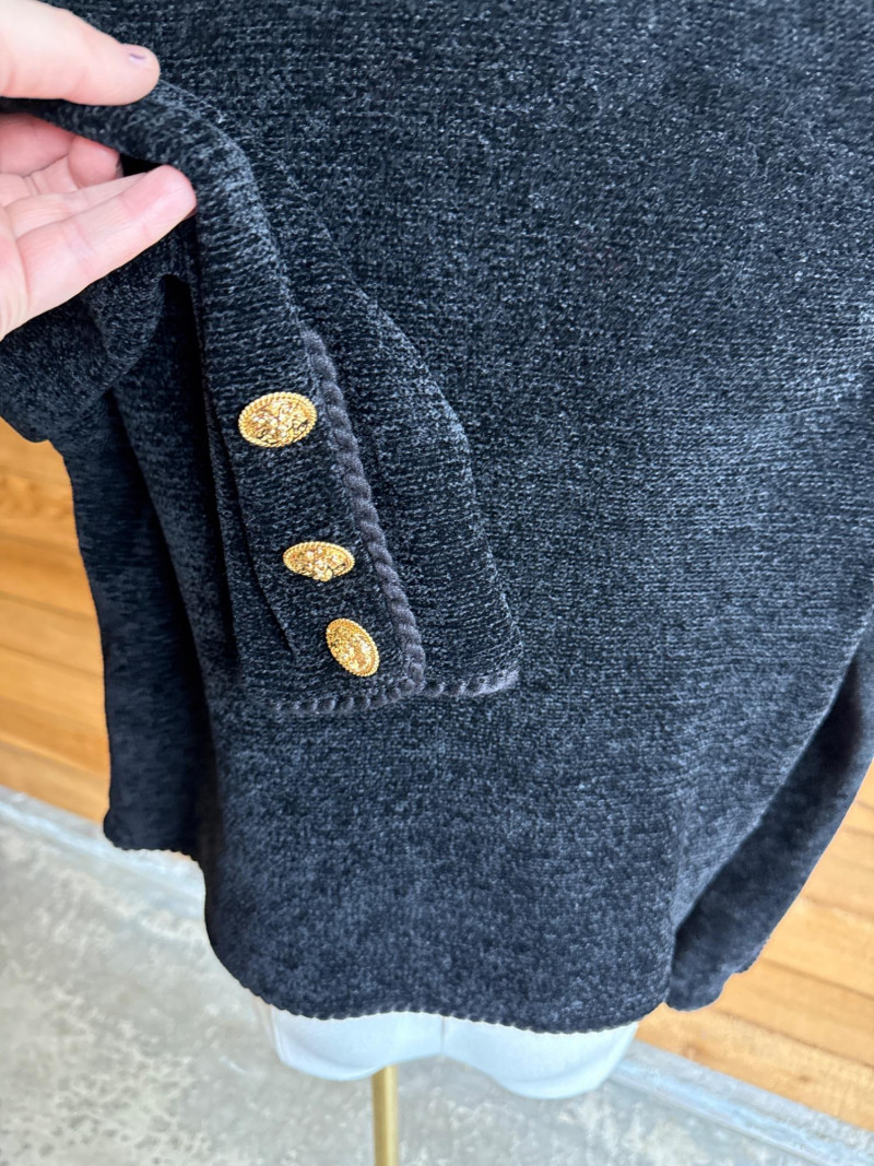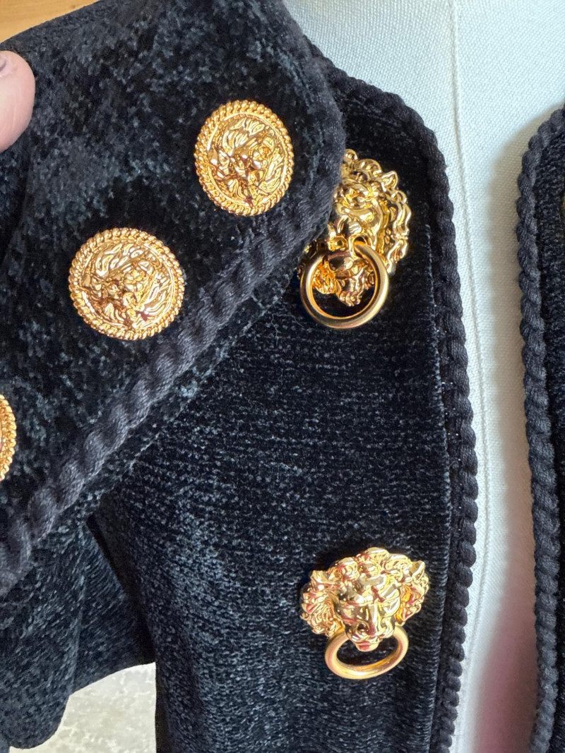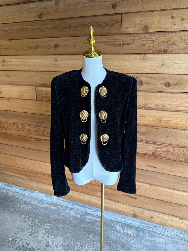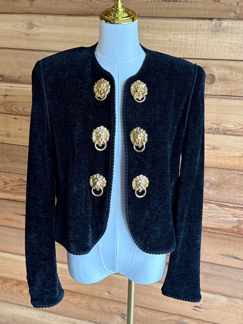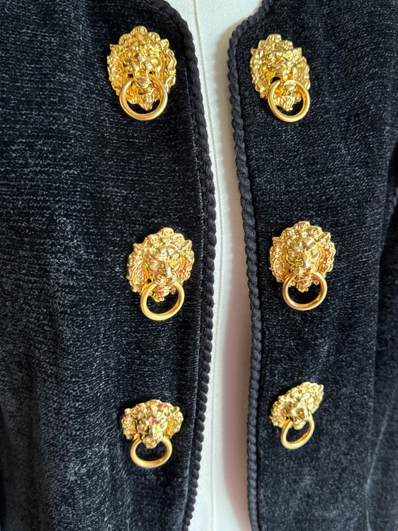 ST JOHN Black Lion Sweater Jacket- Sz 8 *lion heads and buttons are gold metal hardware