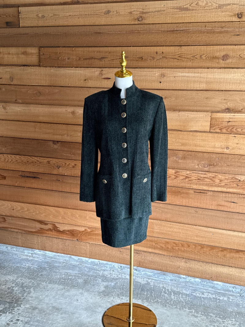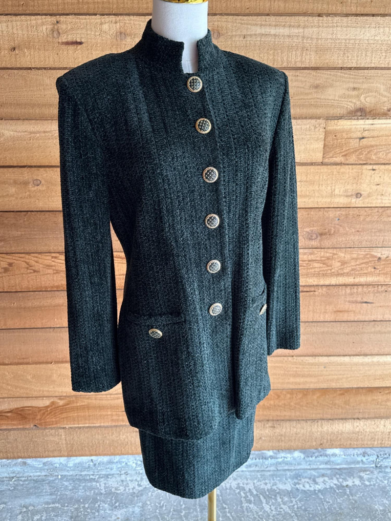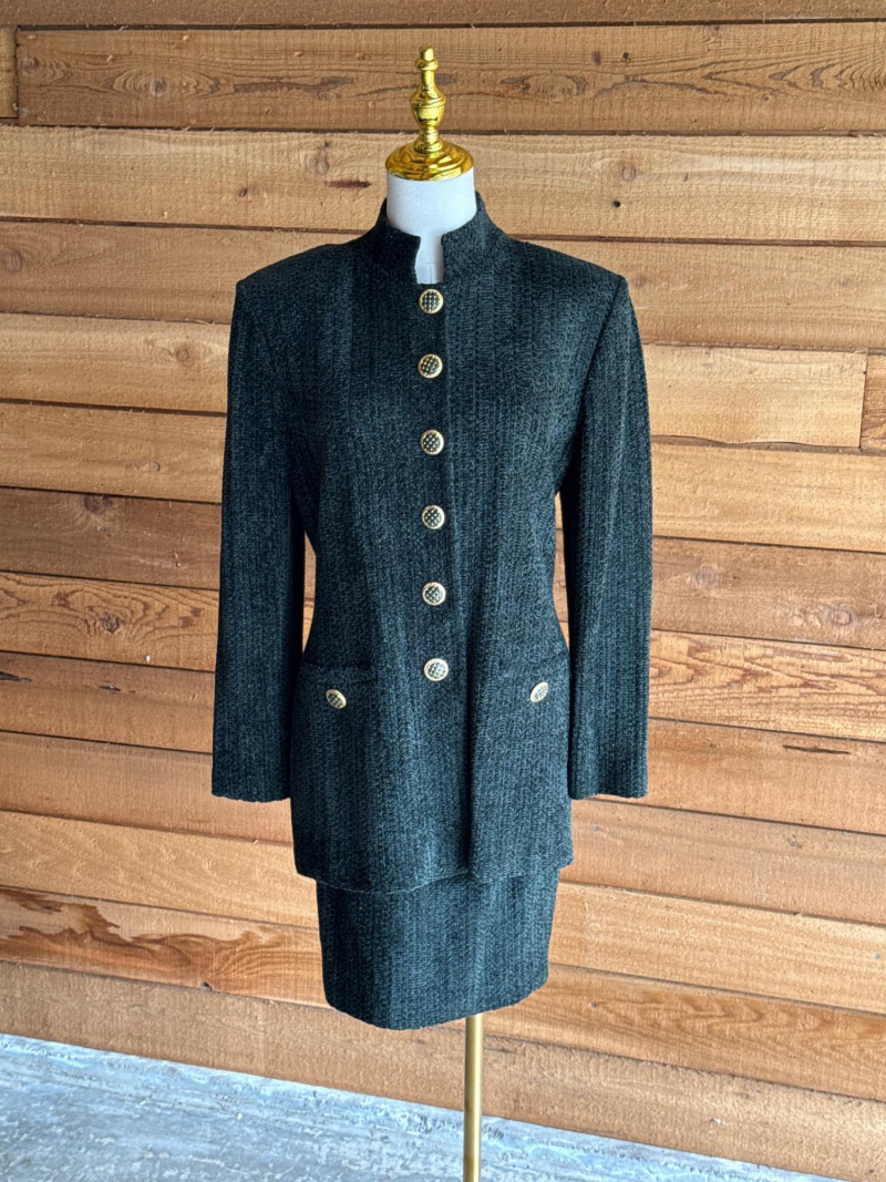 ST JOHN Sparkly Dark Green Skirt Suit- Sz 4