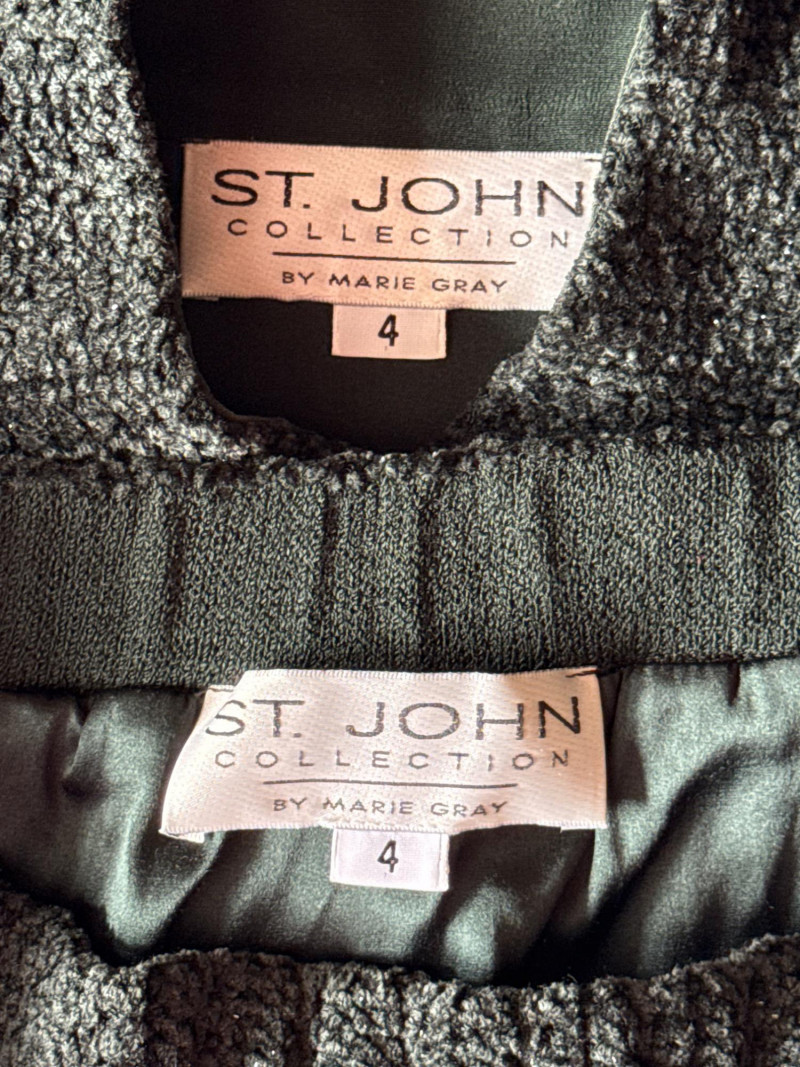 Lot # 78 - ST JOHN Sparkly Dark Green Skirt Suit- Sz 4