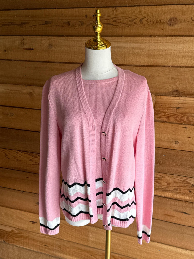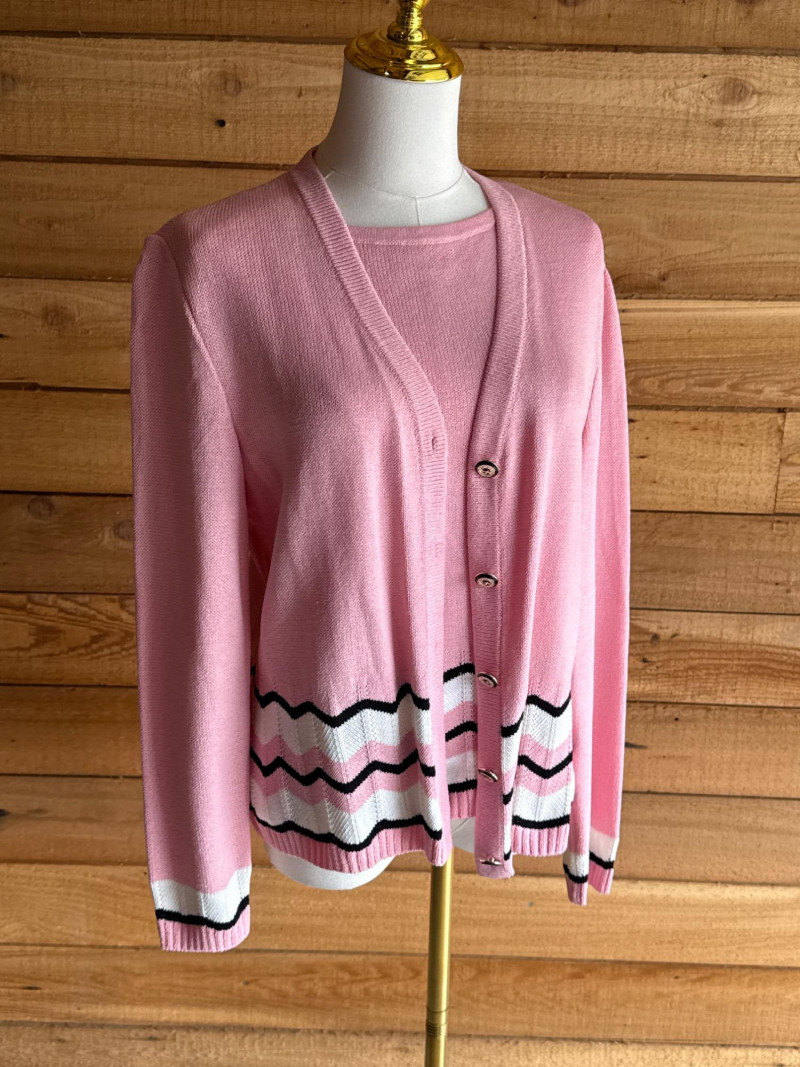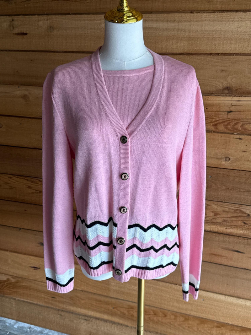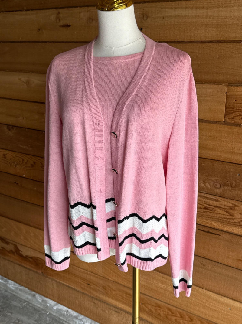 ST JOHN Pink, Black & White Sweater Set- Sz S