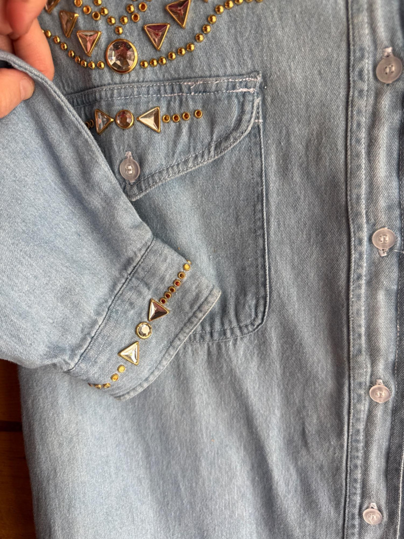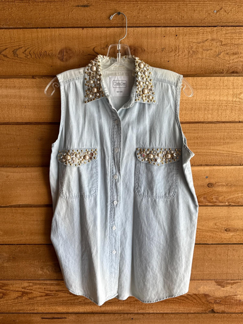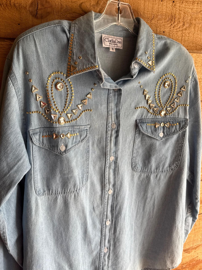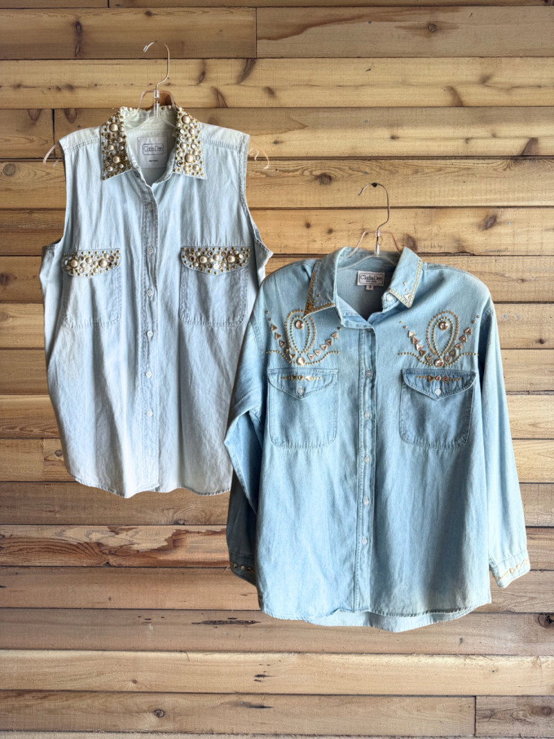 Vintage Denim Bejeweled Vest & Blouse- Sz S/M