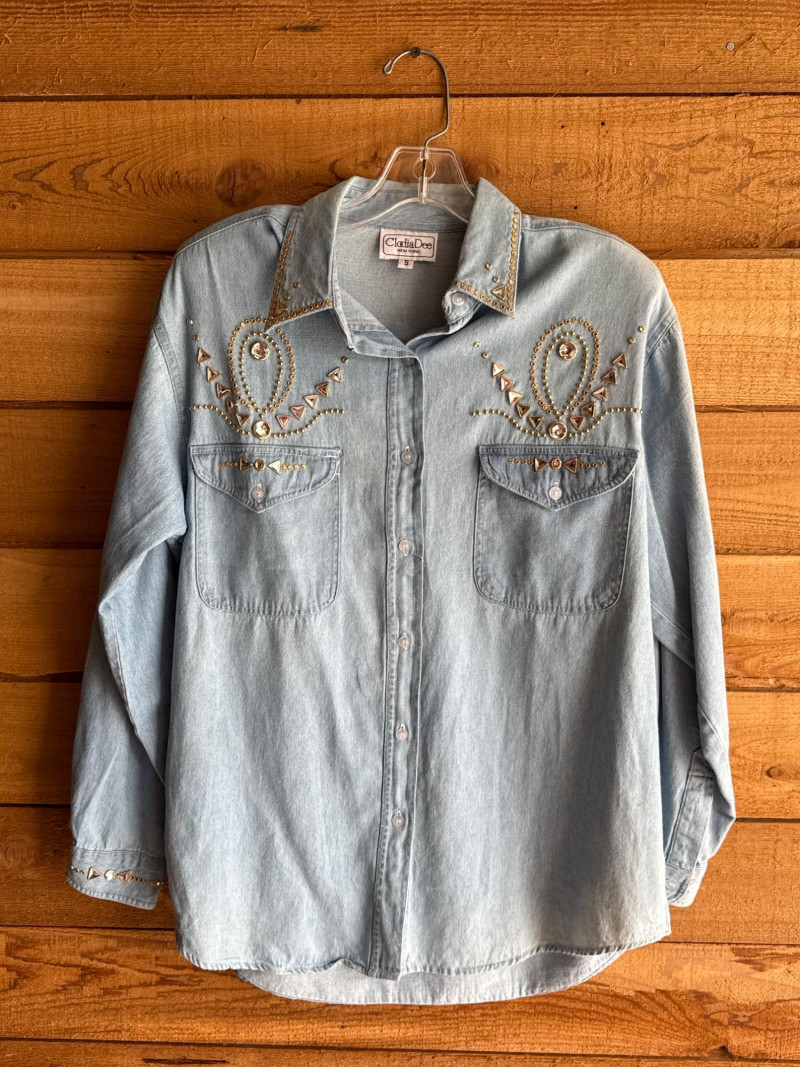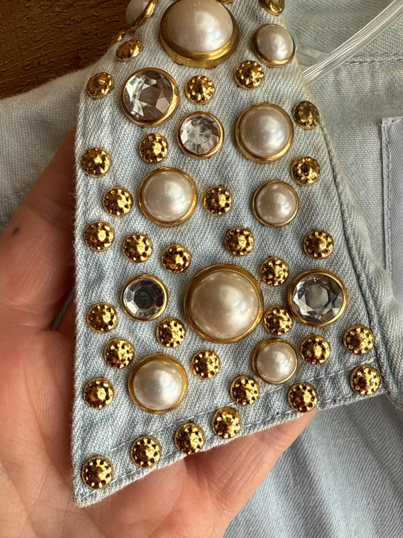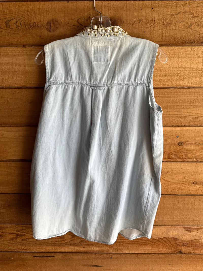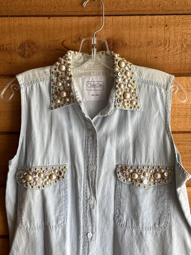 Vintage Denim Bejeweled Vest & Blouse- Sz S/M
