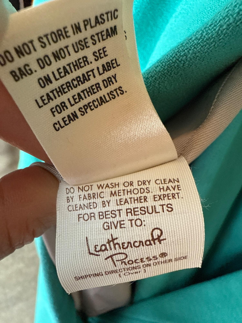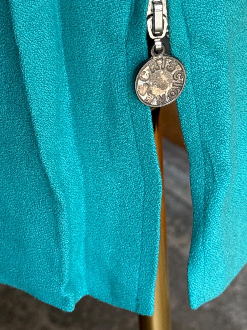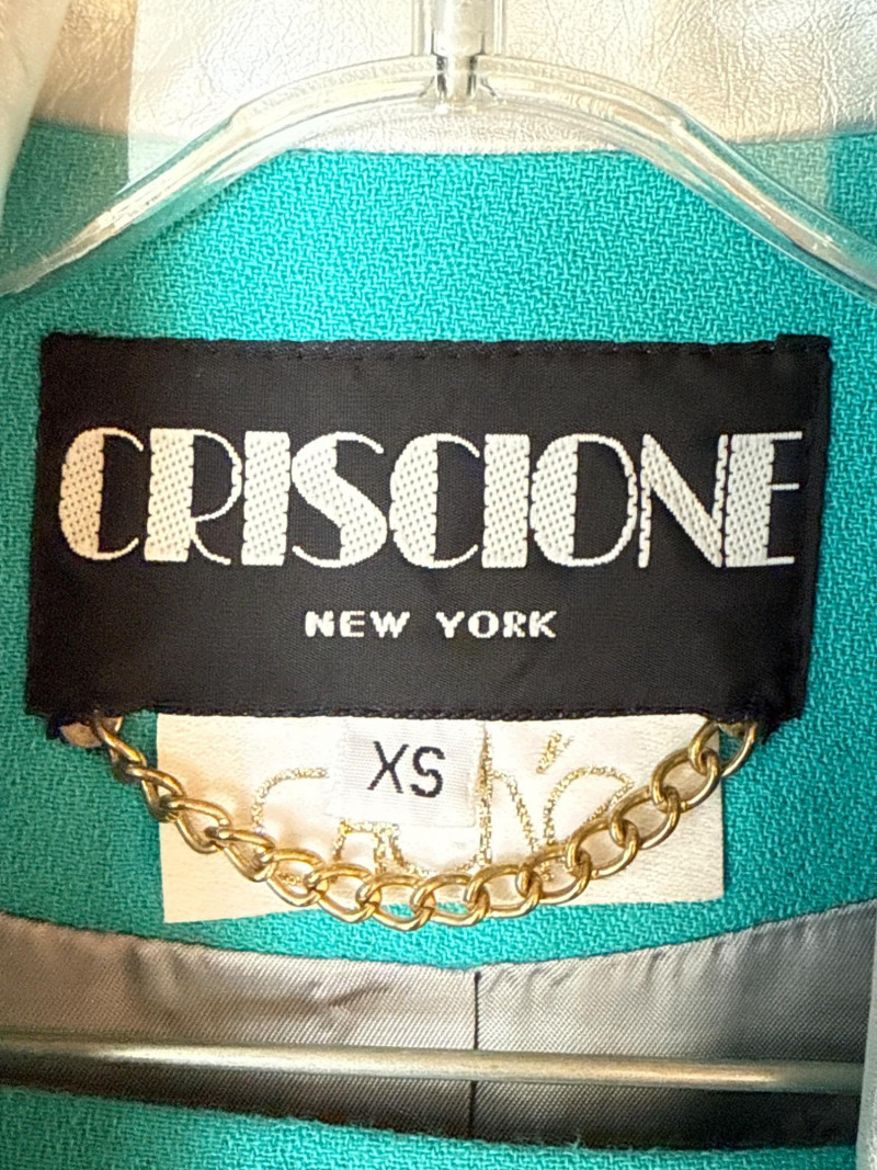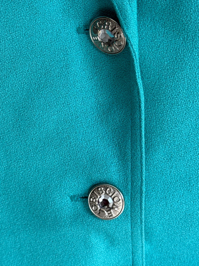 Lot # 93 - CRISCOINE Vintage Aqua w/ Leather Collar Skirt Suit- Sz XS