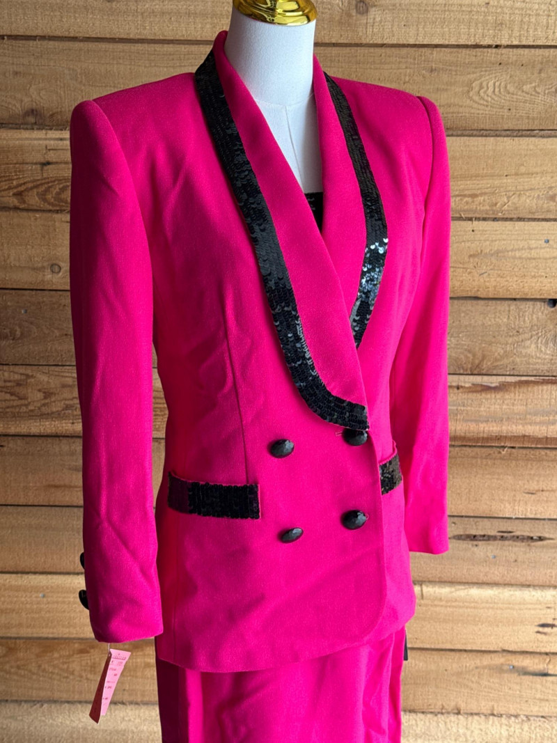 Lot # 96 - NOLAN MILLER Vintage Pink & Black 3 pc Skirt Suit *NWT $369- Sz 6