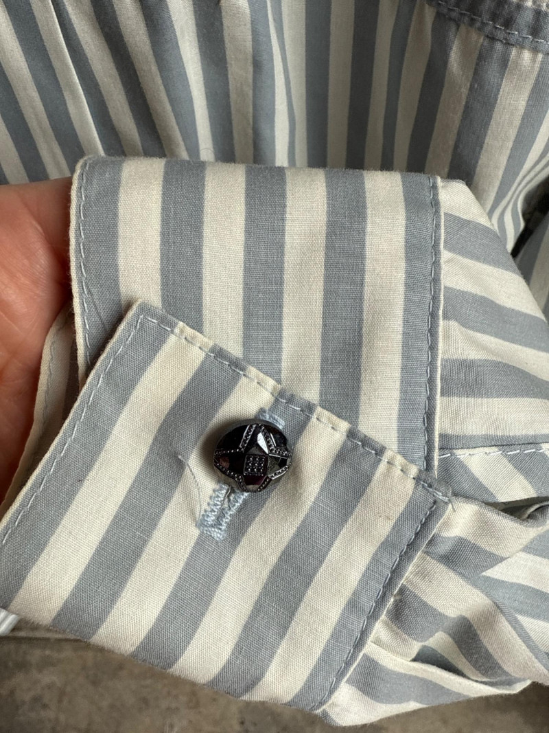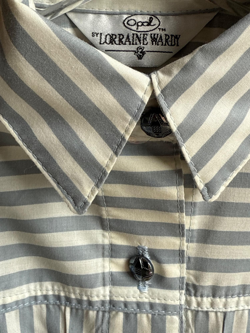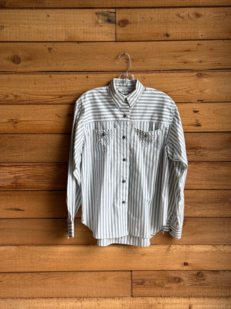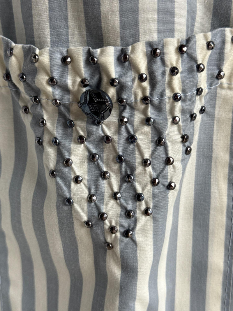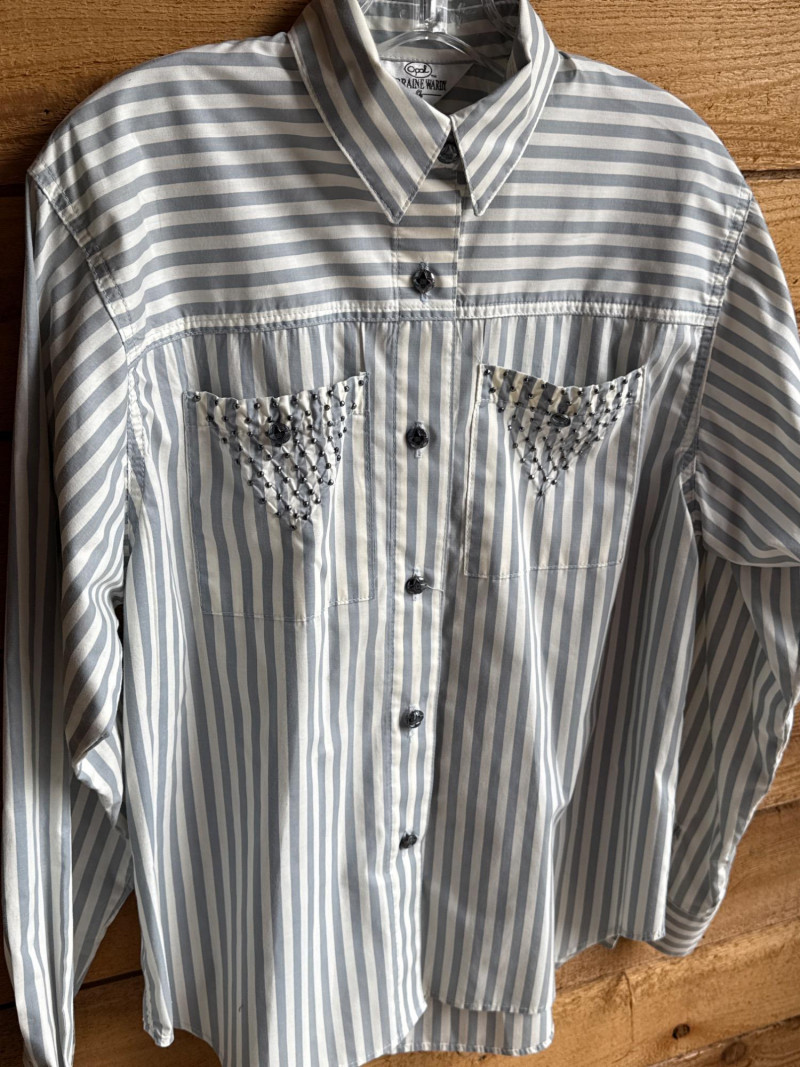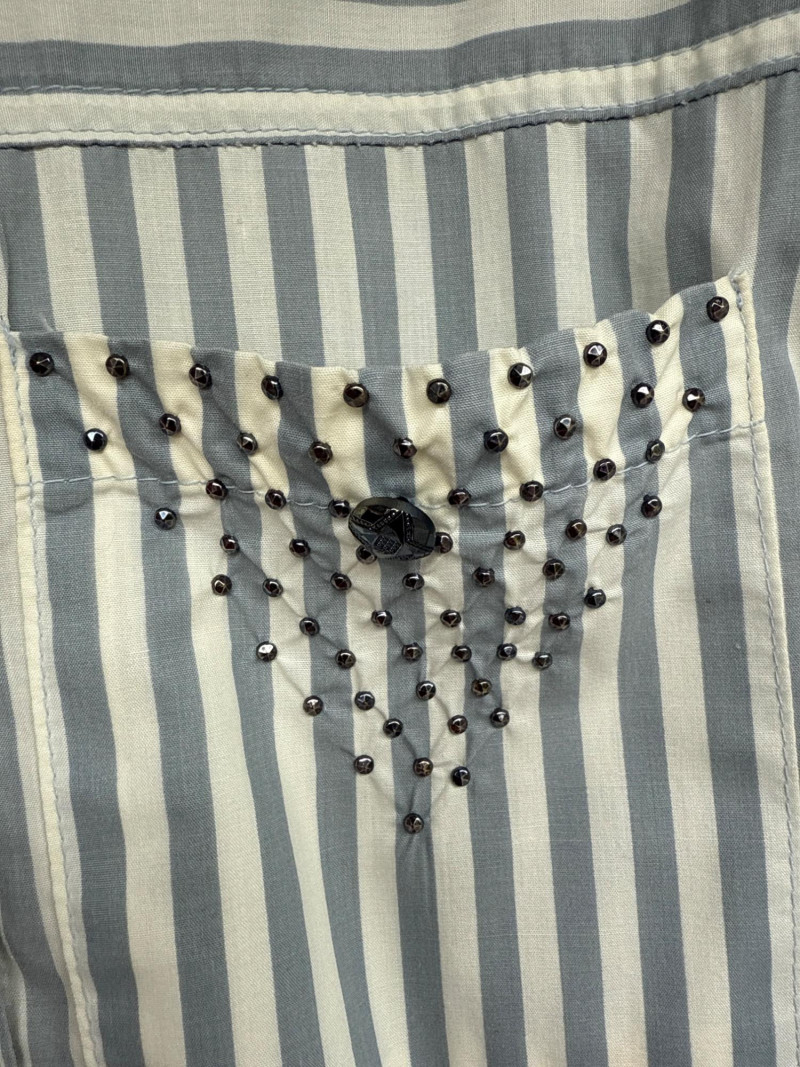 Lot # 99 - OPAL by Lorraine Wardy Blue & White Striped Beaded Blouse- Sz S