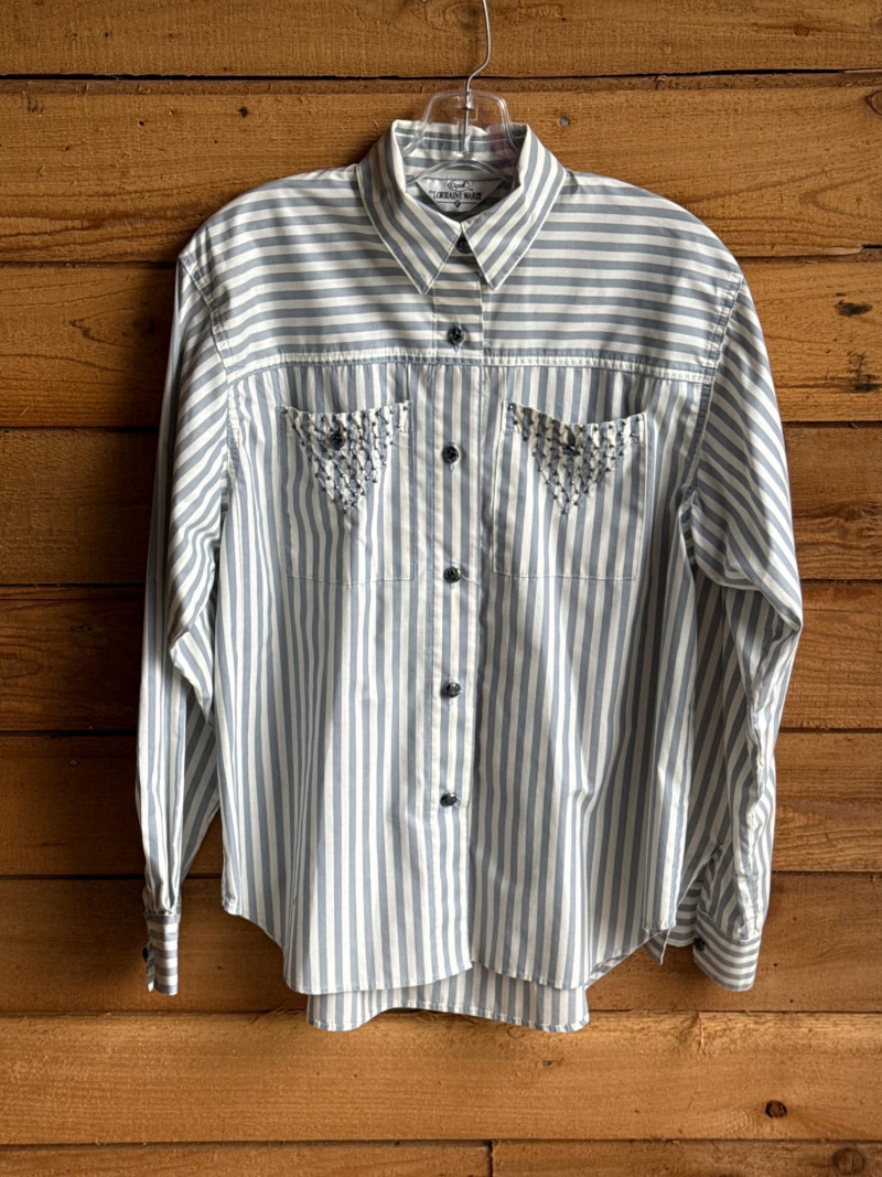 OPAL by Lorraine Wardy Blue & White Striped Beaded Blouse- Sz S