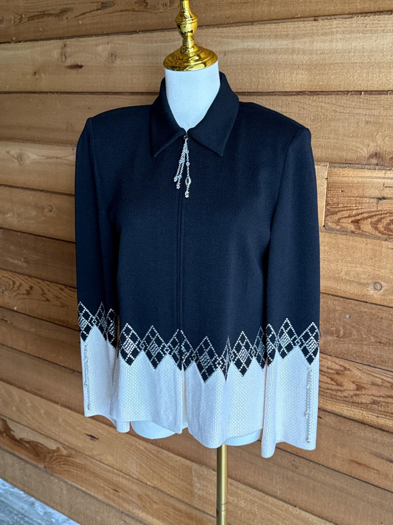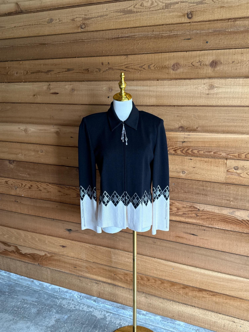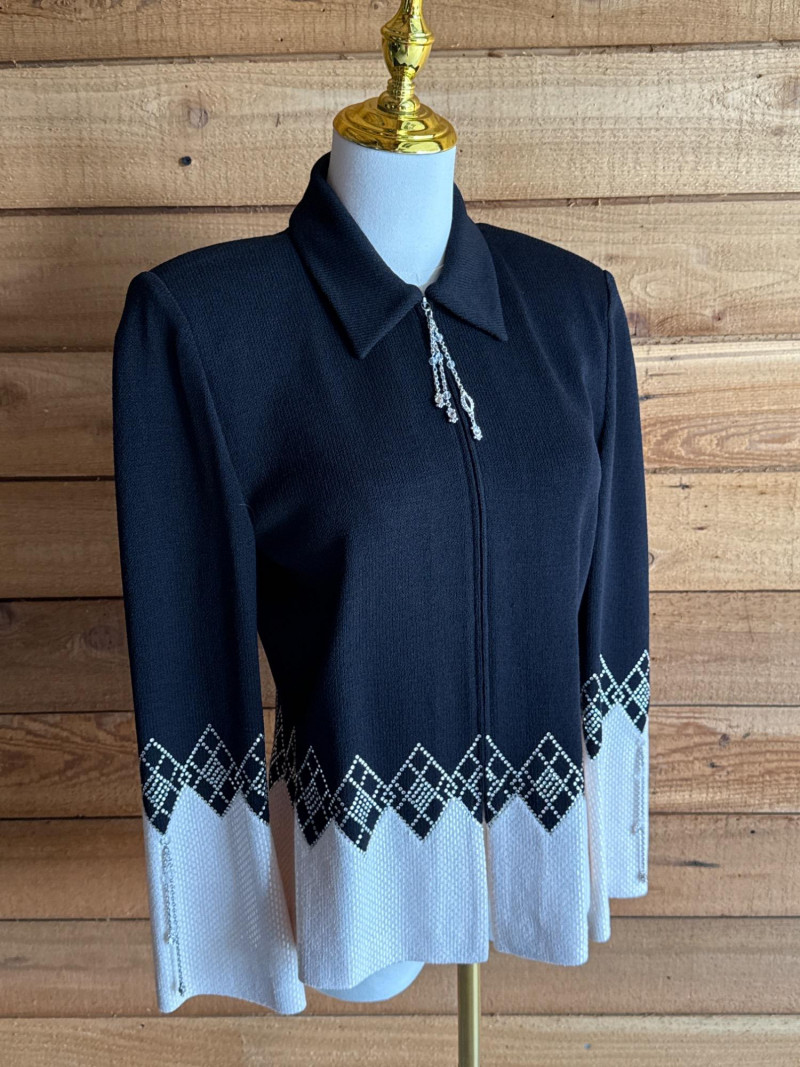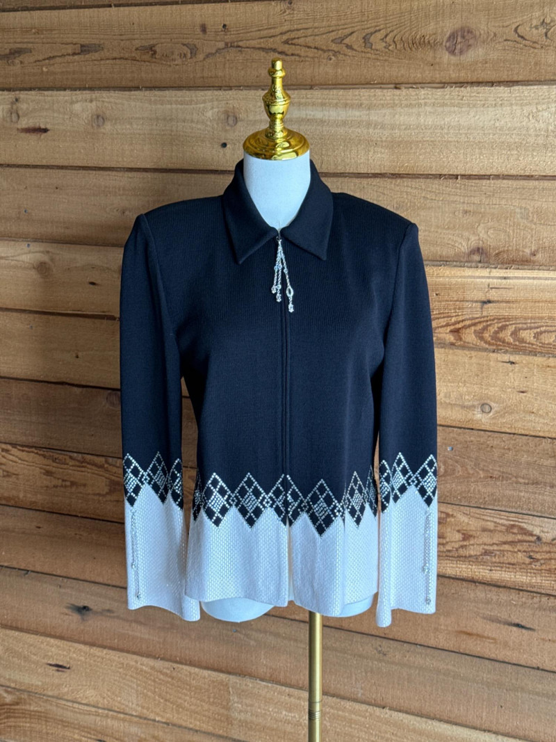 ST JOHN Evening Black & White Beaded Jacket- Sz 4