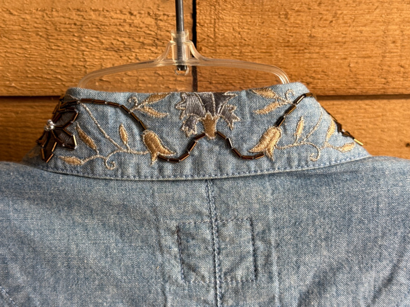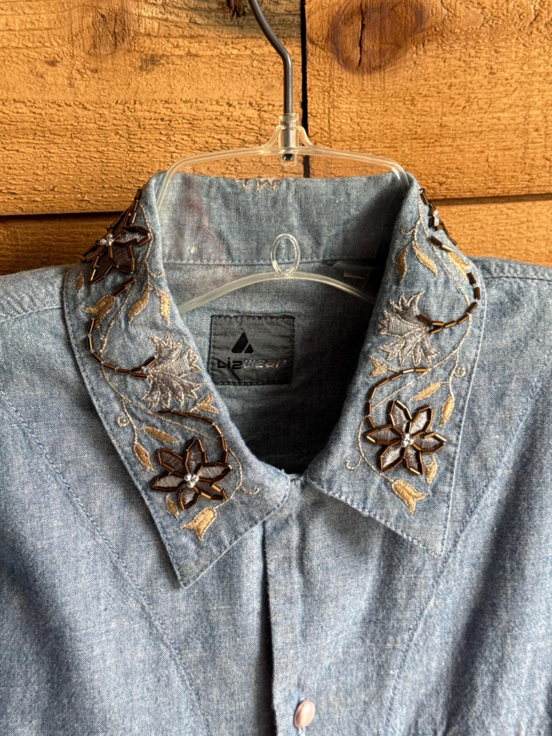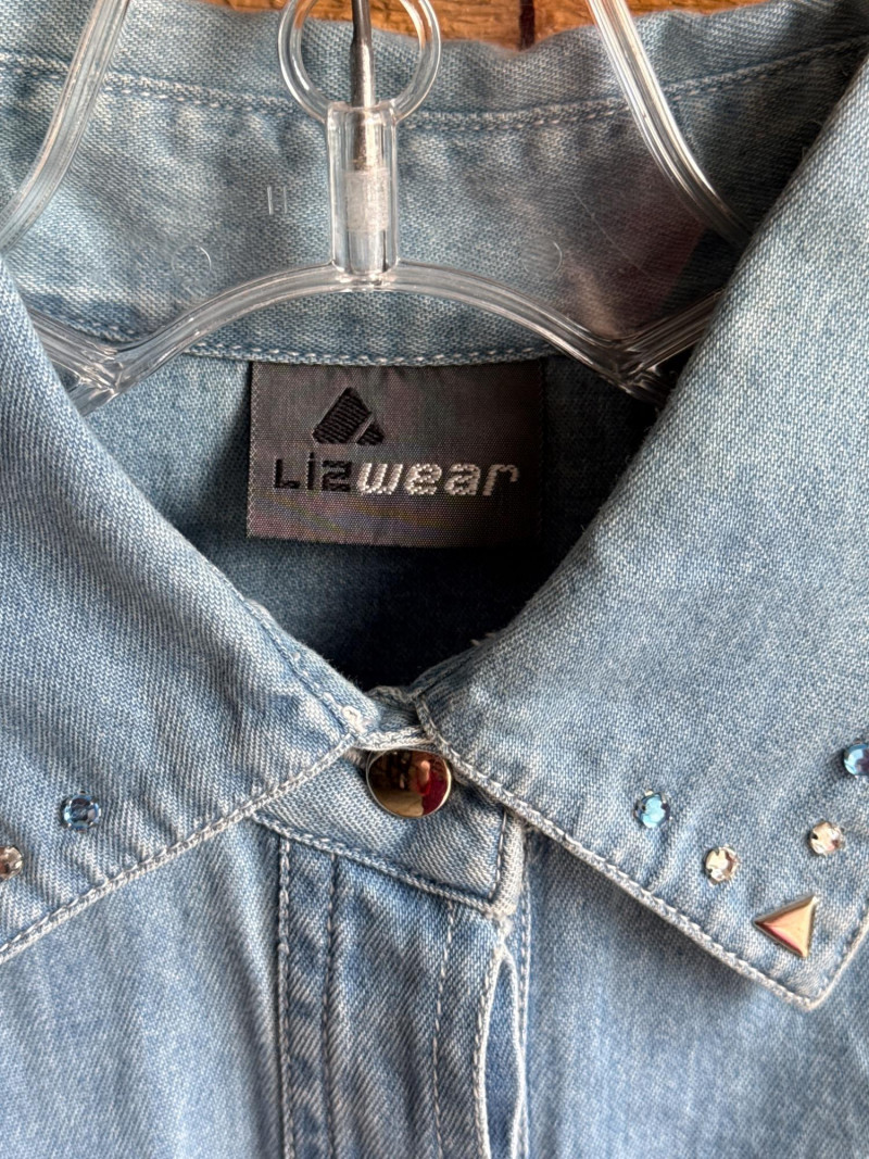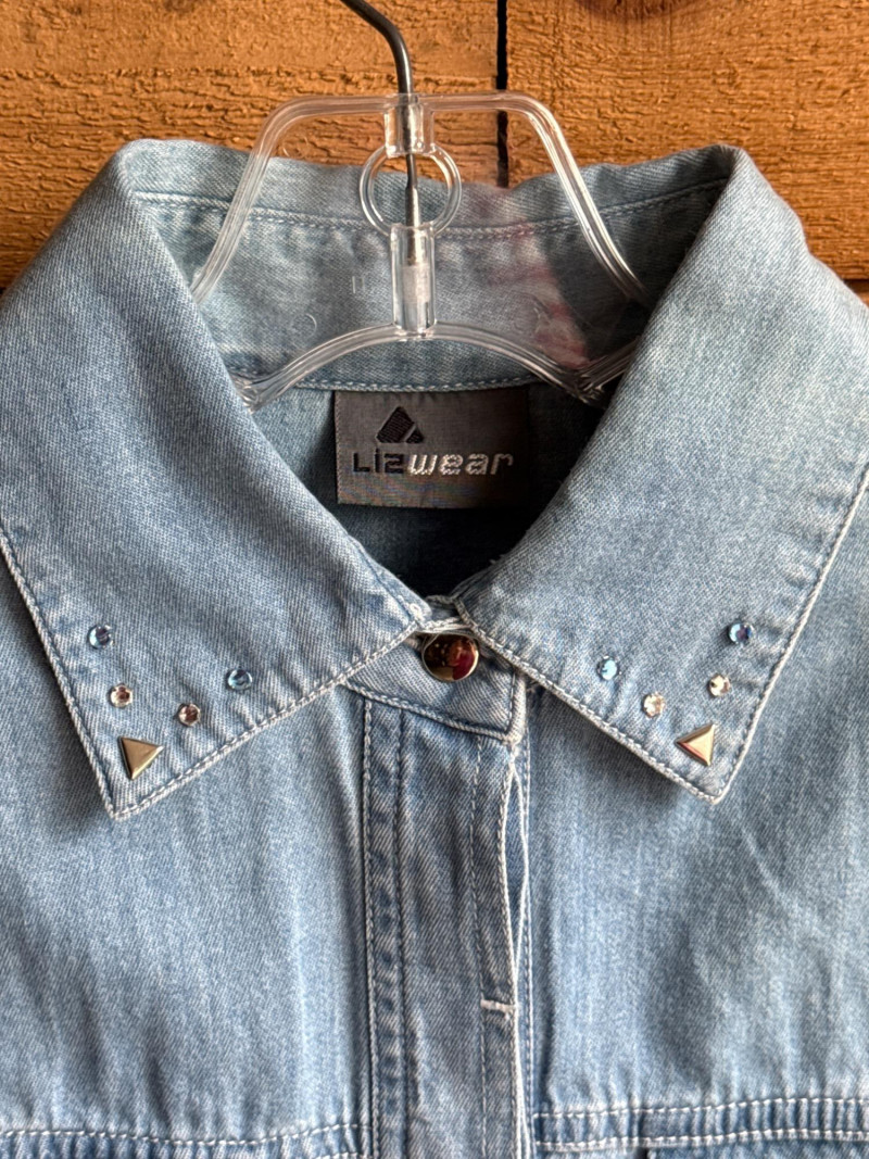 Vintage LIZWEAR Denim Beaded Blouses- Sz S/2