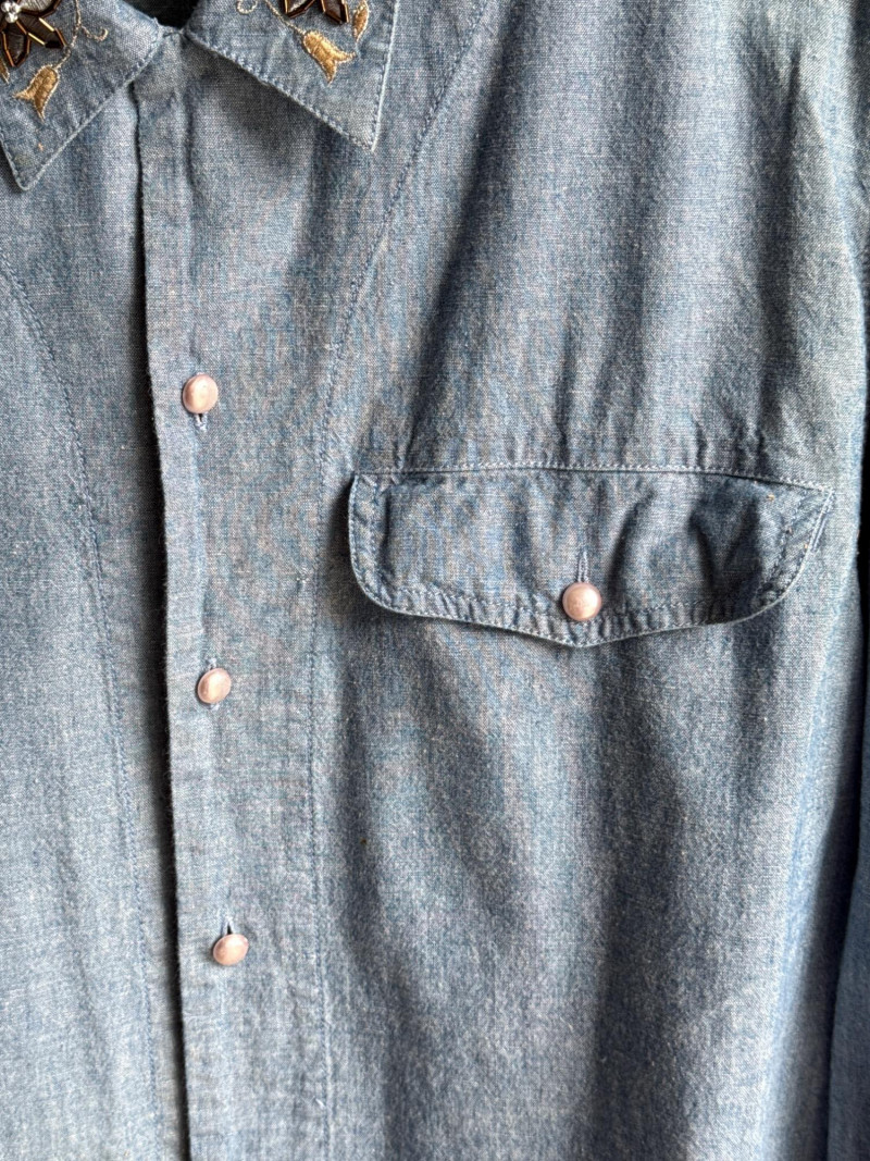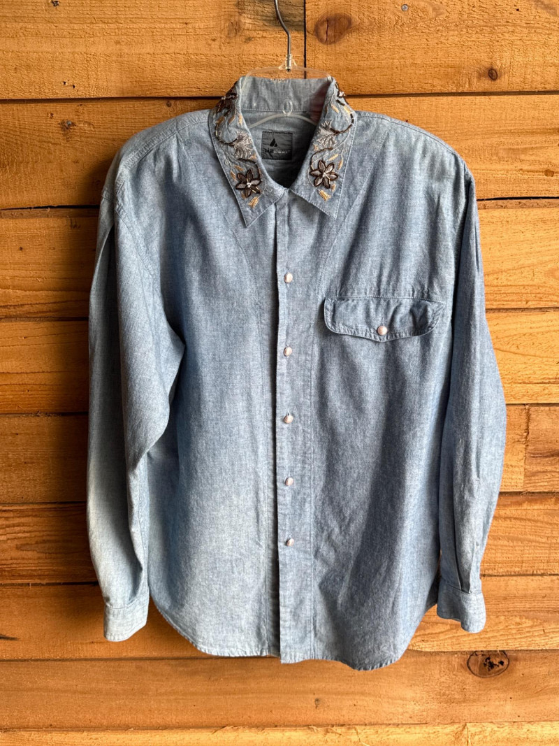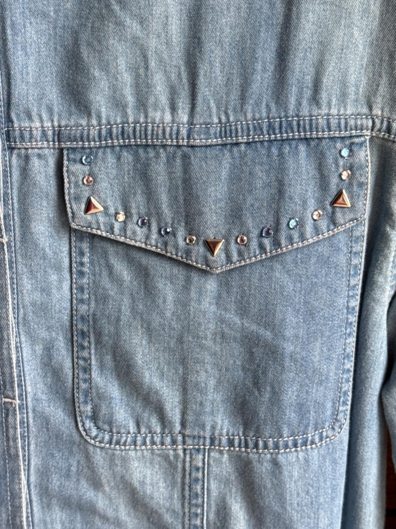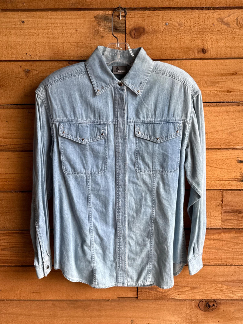Vintage LIZWEAR Denim Beaded Blouses- Sz S/2