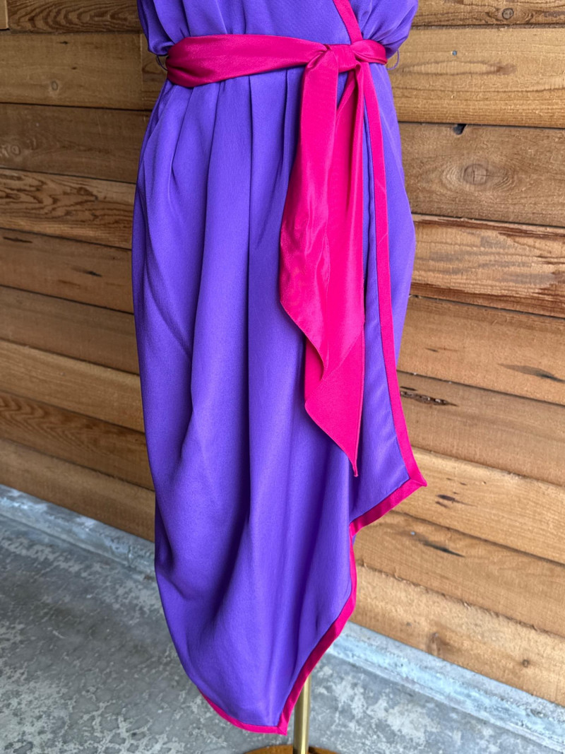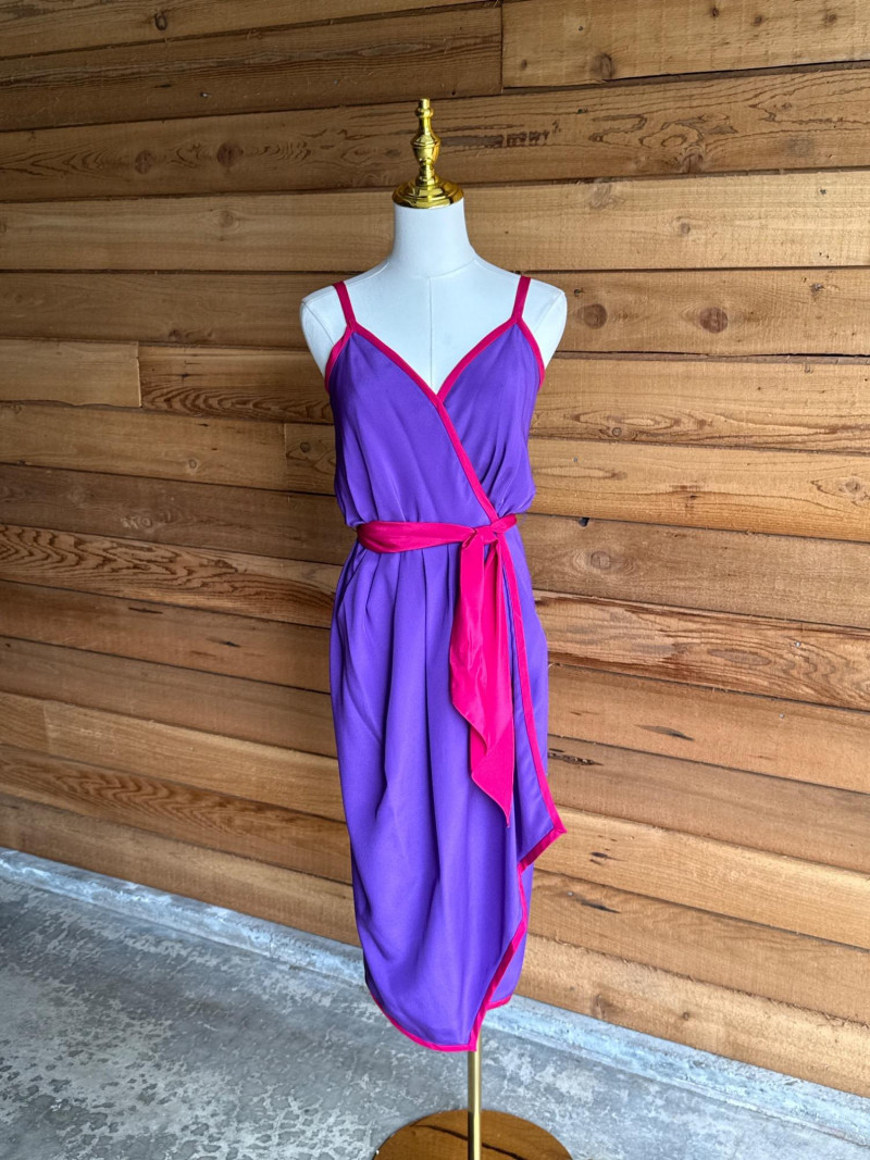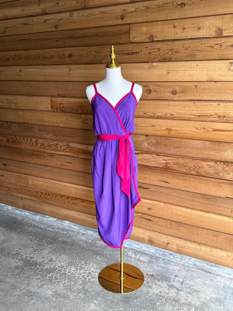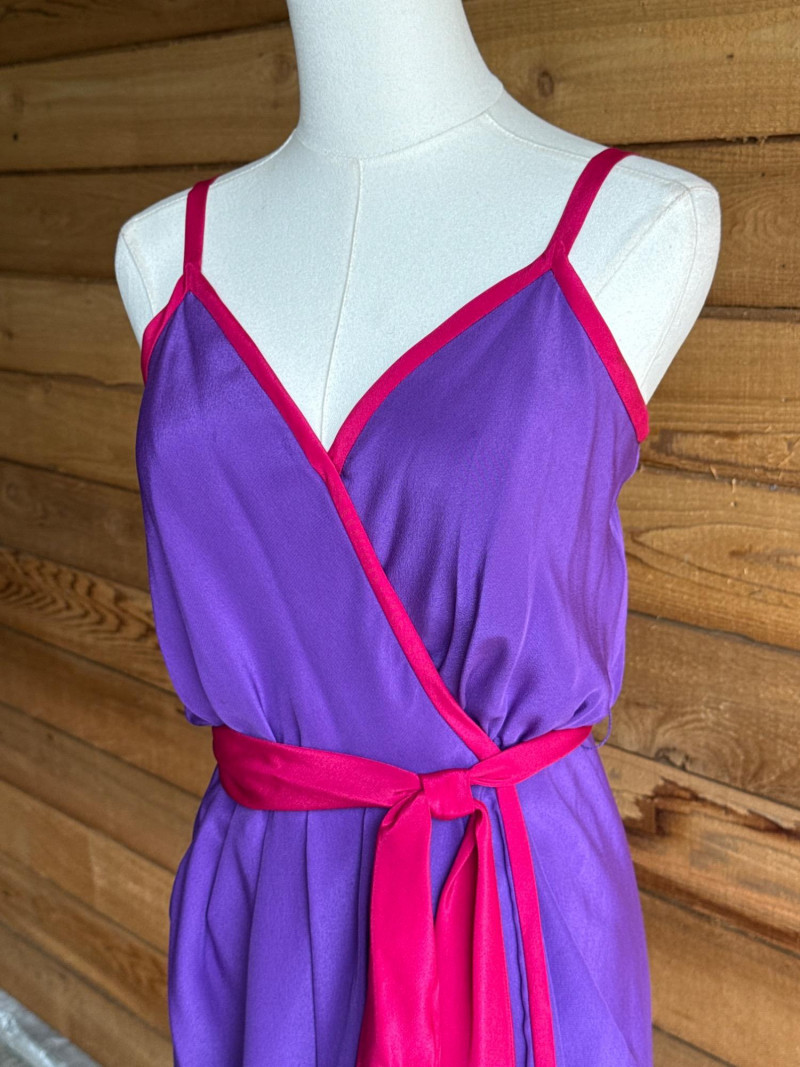 VINTAGE Pink & Purple Silky Wrap Dress- Sz S