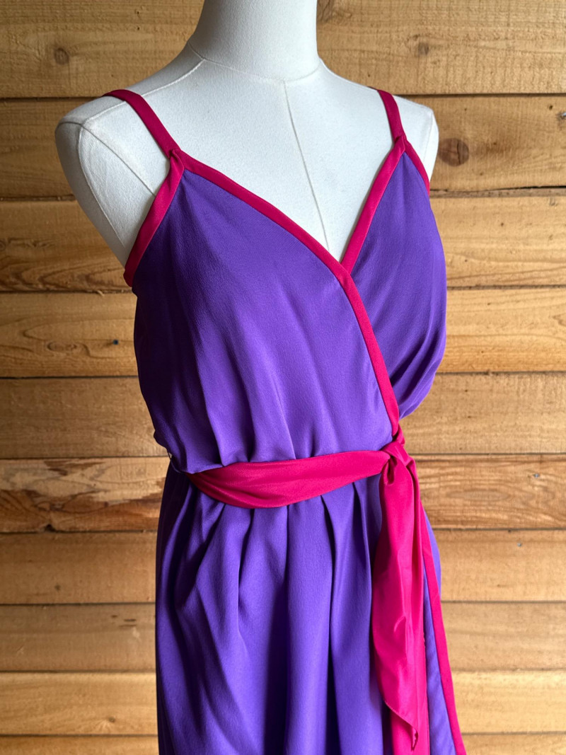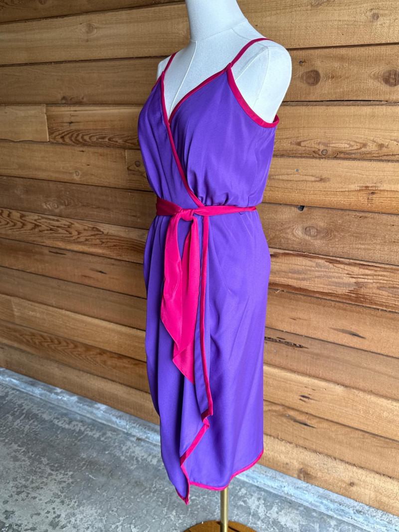 Lot # 104 - VINTAGE Pink & Purple Silky Wrap Dress- Sz S