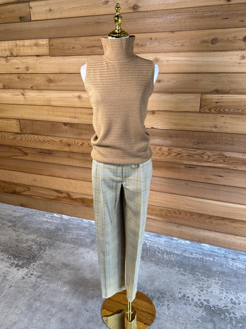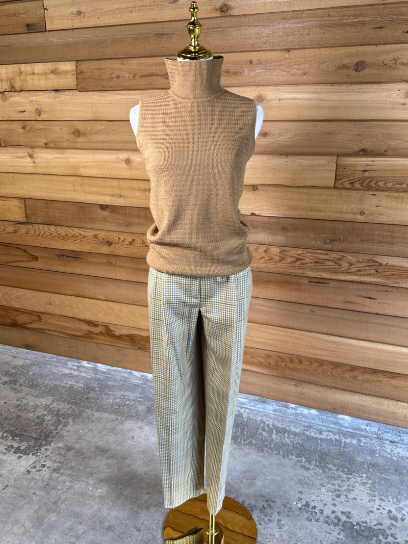 Lot # 115 - Vintage Tan Houndstooth Pant (Sz 8) & Sleeveless Sweater (Sz 2) Duo