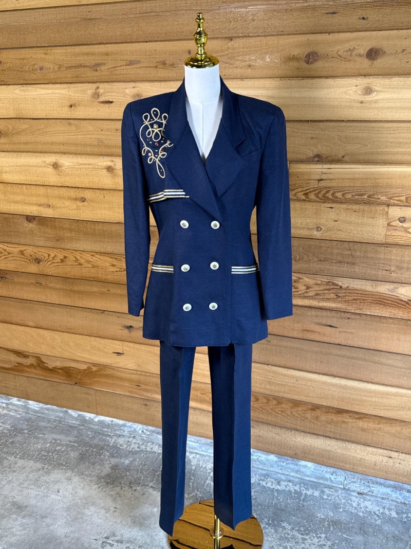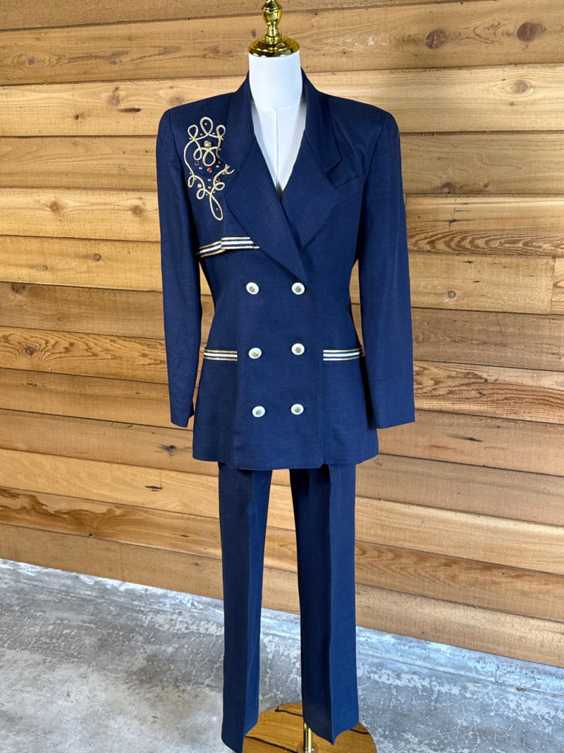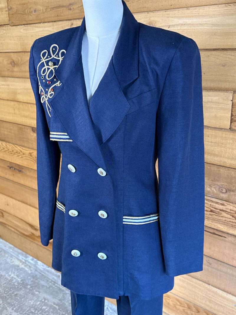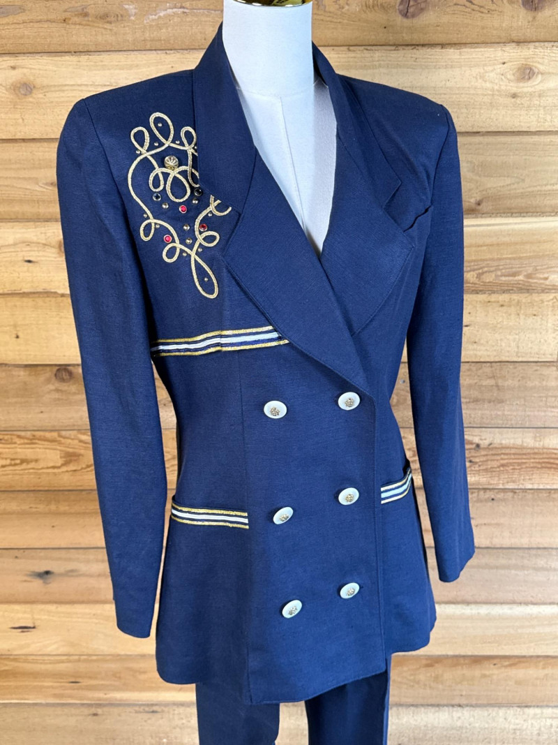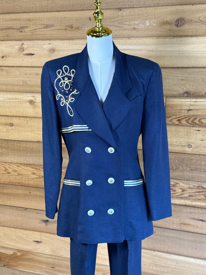 MOZA New York Vintage Navy Beaded Pant Suit- Sz 5/6