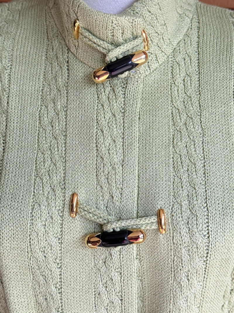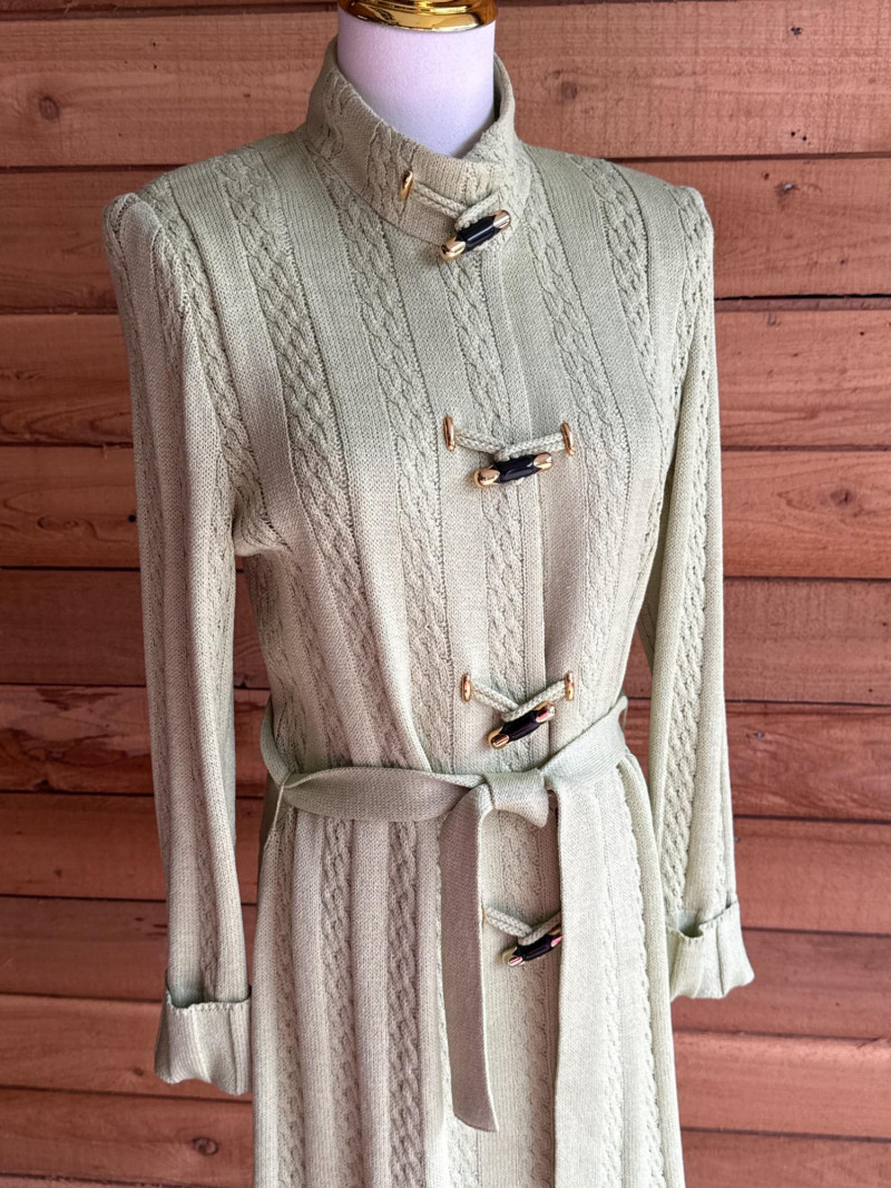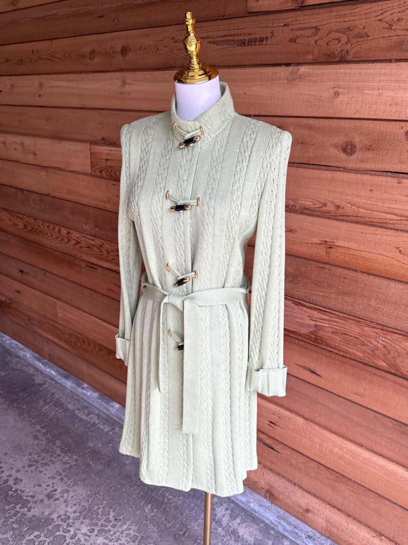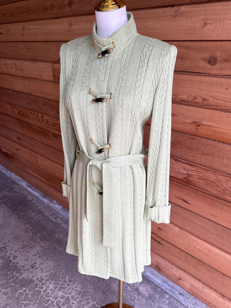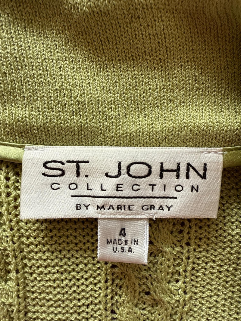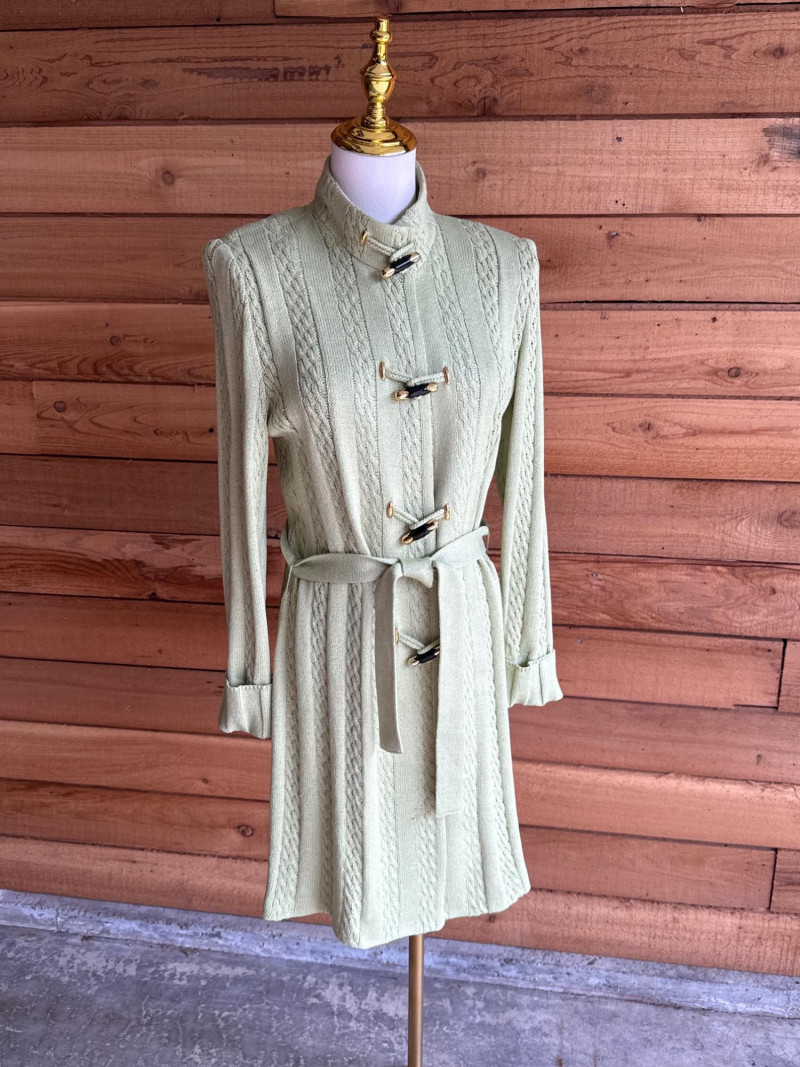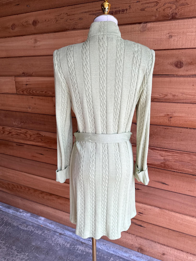 ST JOHN Pistachio Green Long Belted Cardigan - Sz 4 *gently used condition