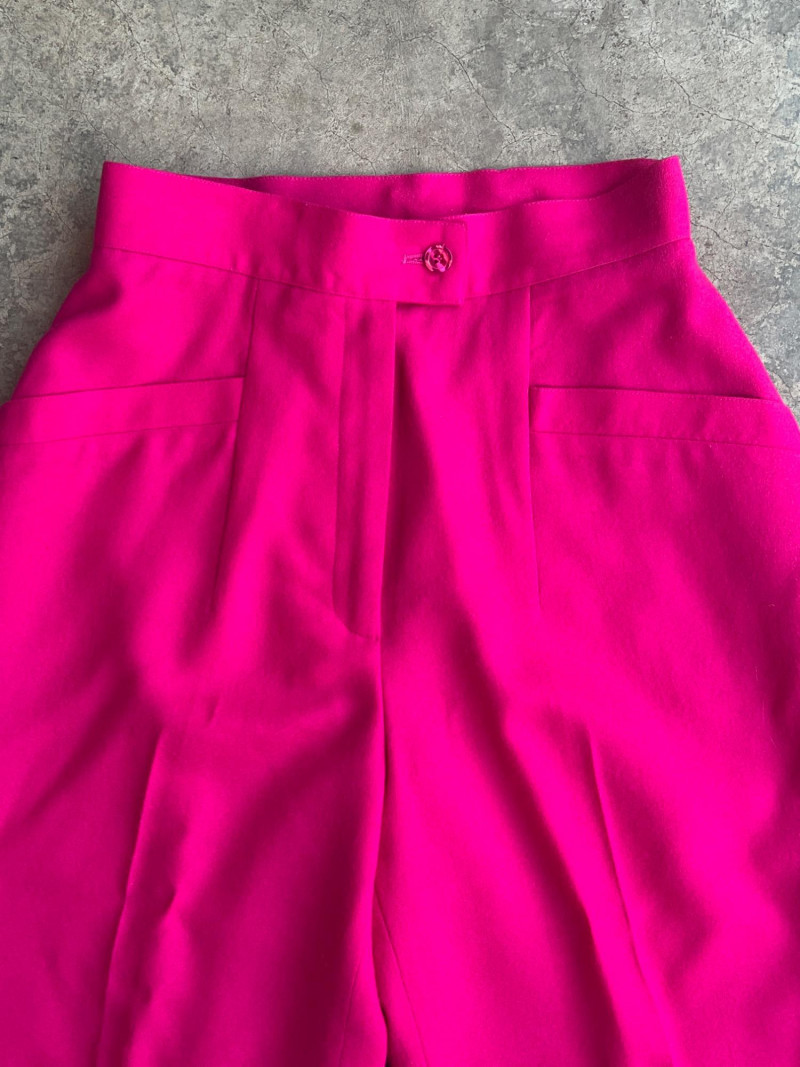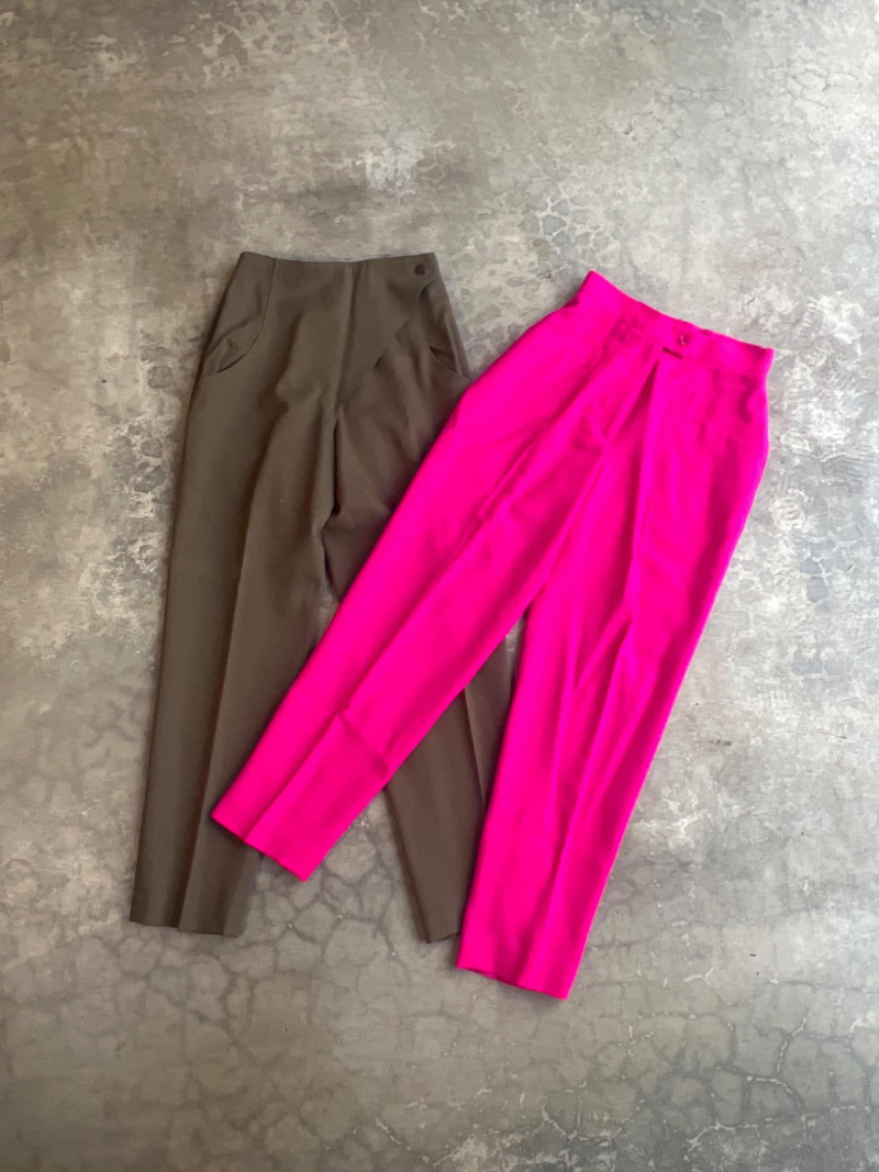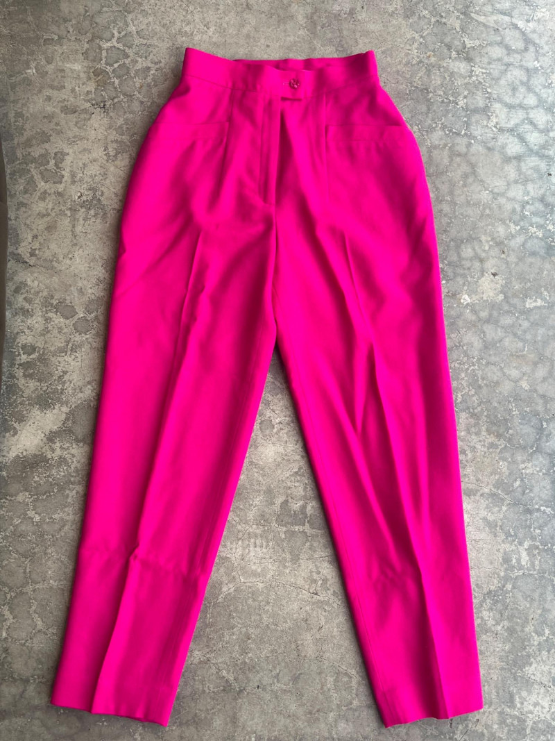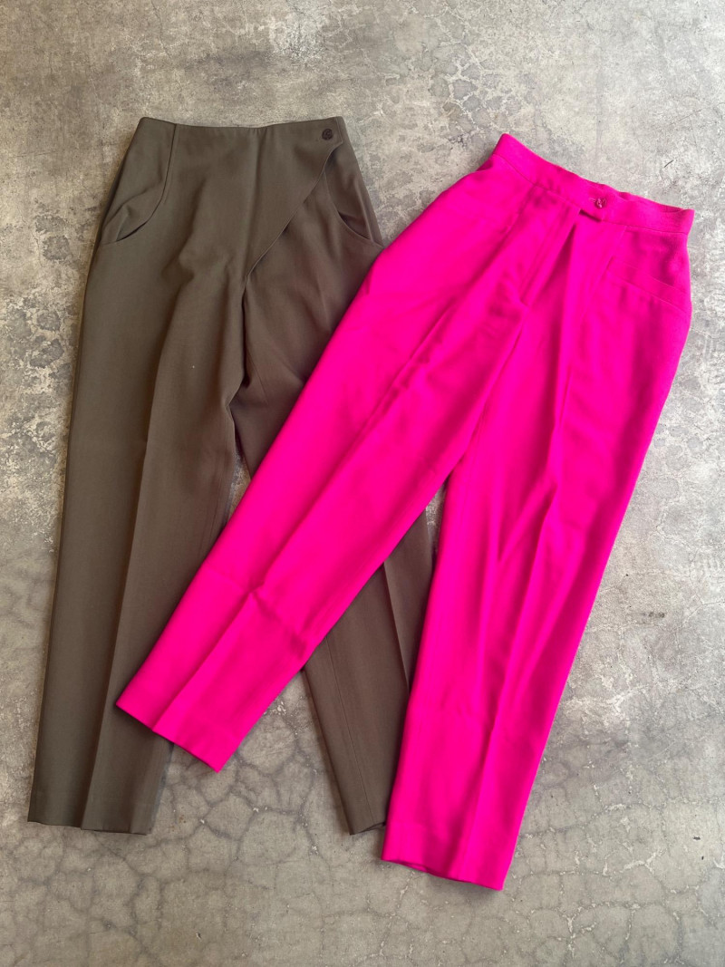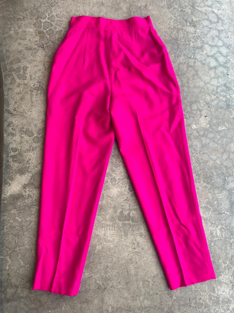 Lot # 129 - Vintage Suzelle Hot Pink & Olive Green Wool Slacks- Sz 6