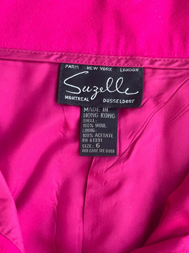 Vintage Suzelle Hot Pink & Olive Green Wool Slacks- Sz 6