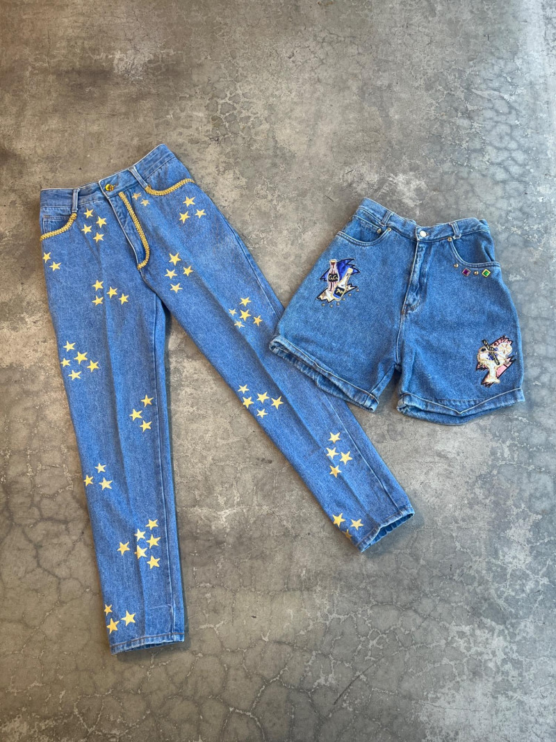 Vintage Painted Denim Jeans (Sz 6) & Shorts (Sz 7/8)
