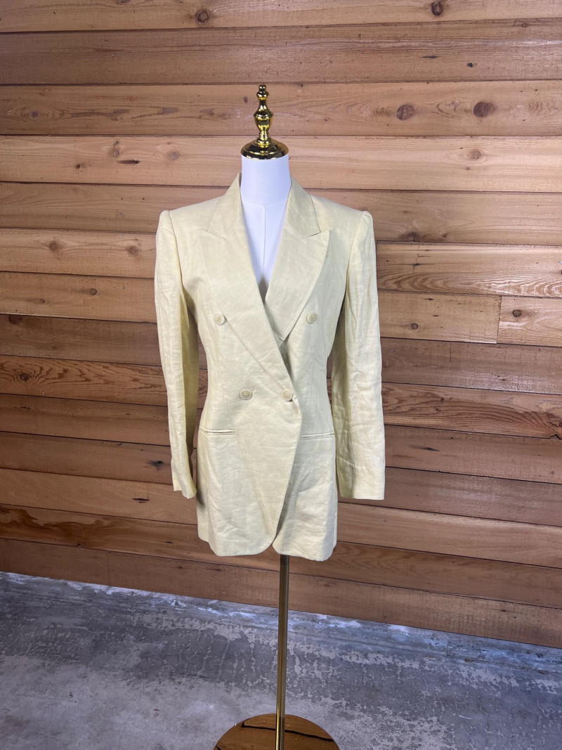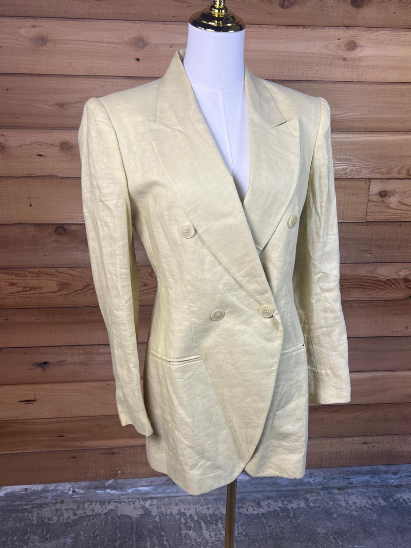 Lot # 136 - JONES NEW YORK Vintage Soft Yellow Double Breasted Blazer- Sz 4