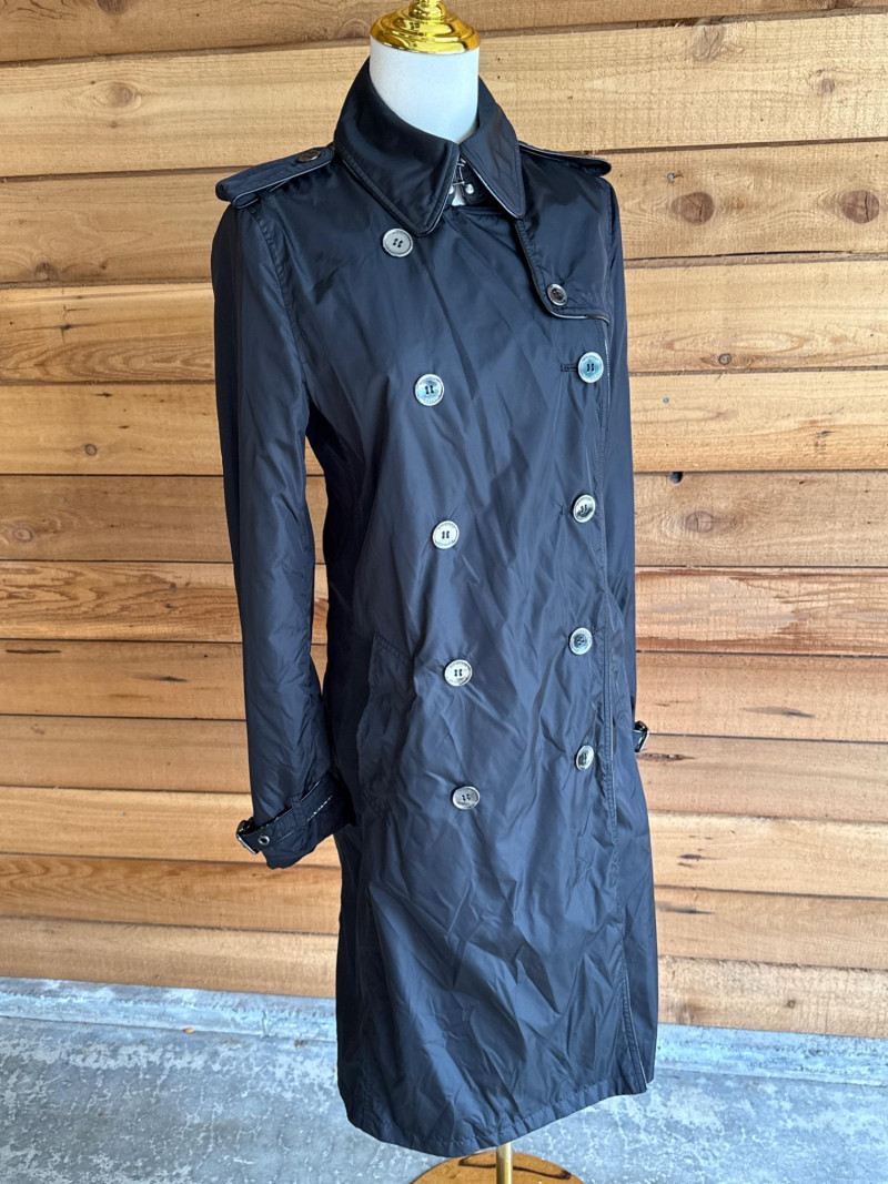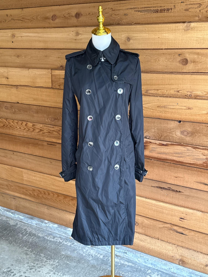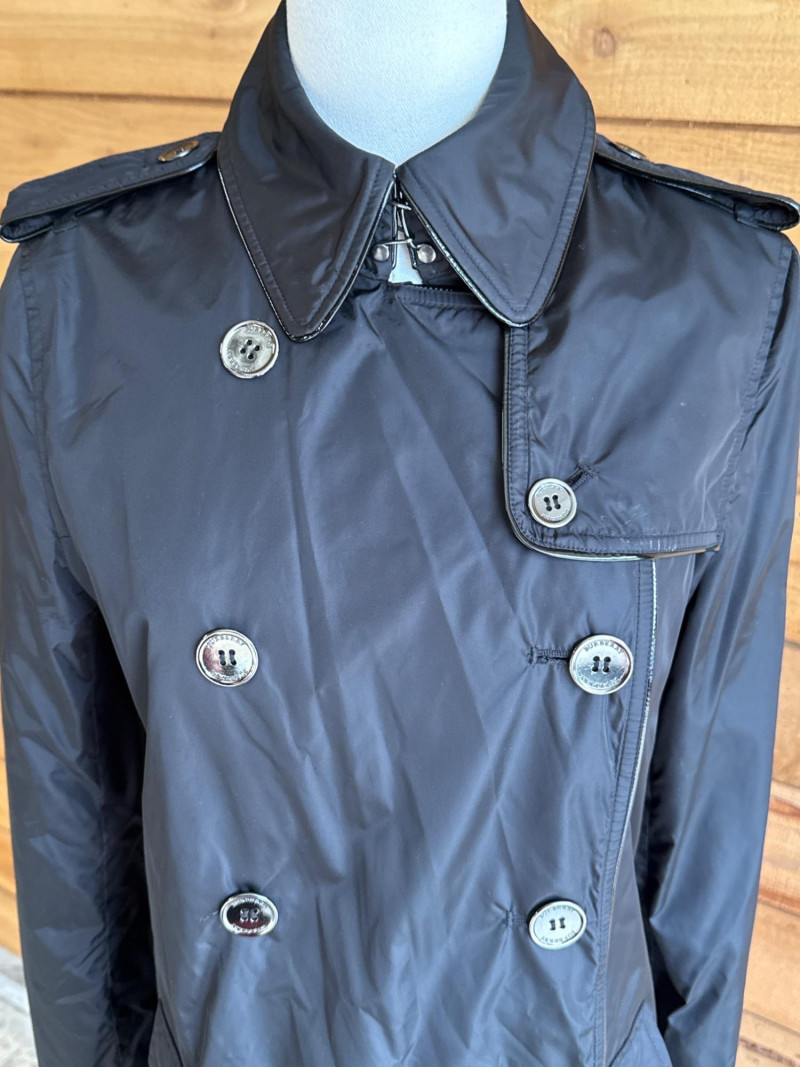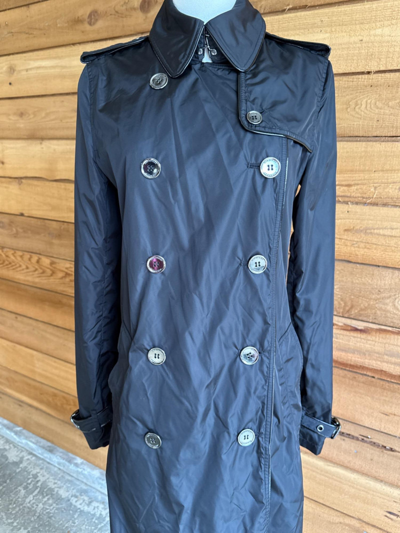 Lot # 12 - BURBERRY Black Trench Coat w/ Leather Trim- Sz 4 *Needs Belt