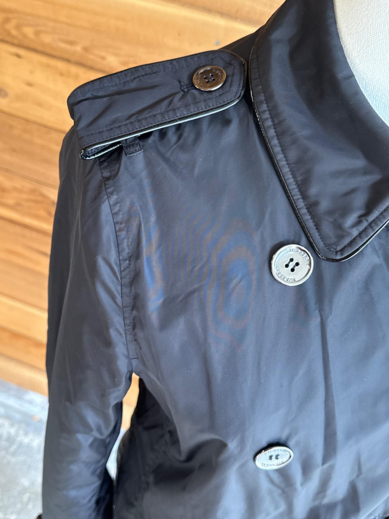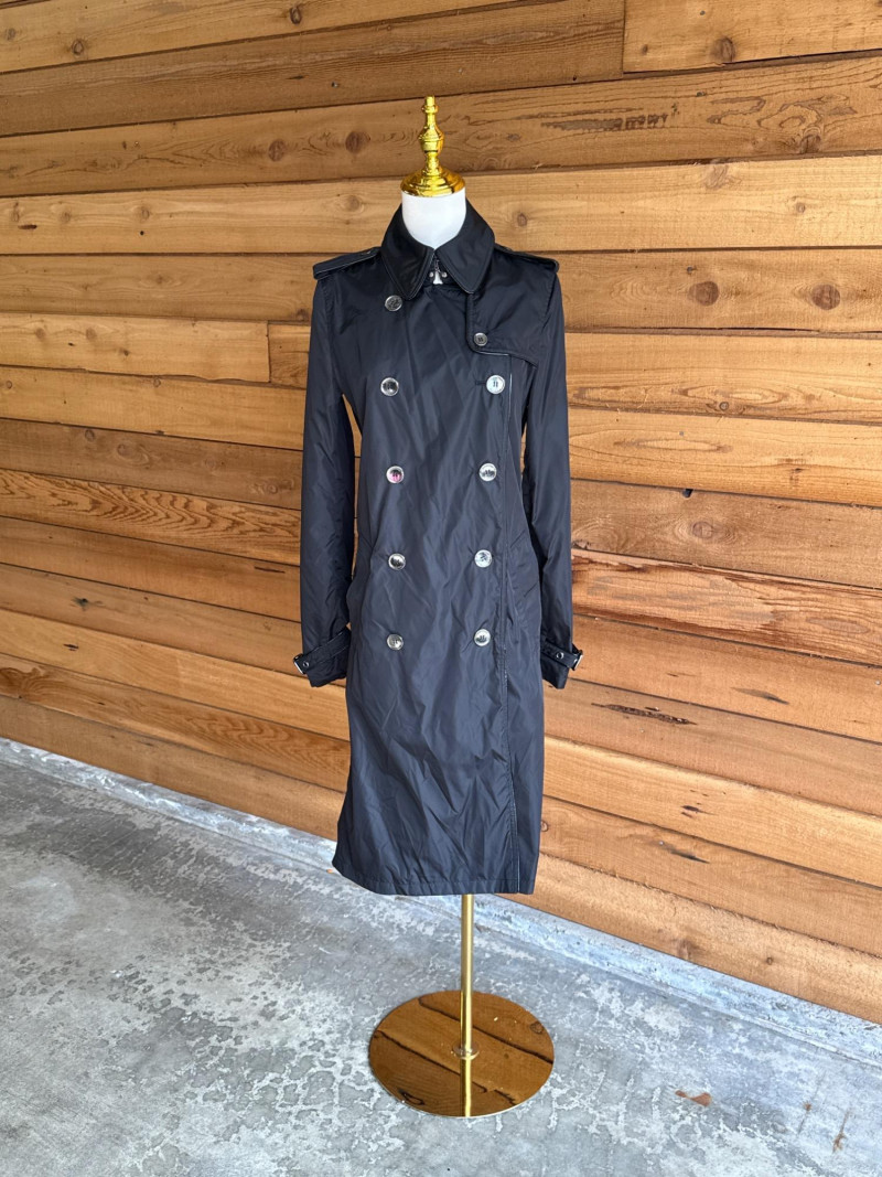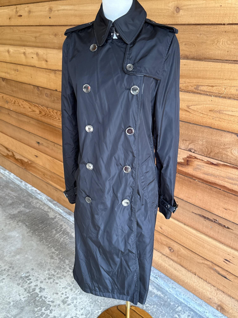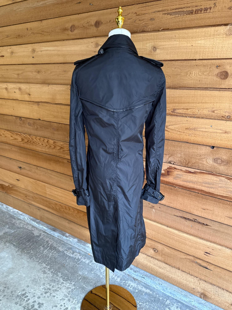 Lot # 12 - BURBERRY Black Trench Coat w/ Leather Trim- Sz 4 *Needs Belt
