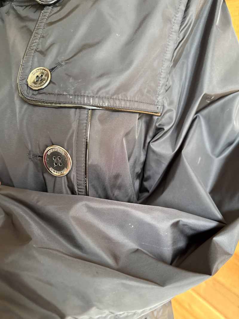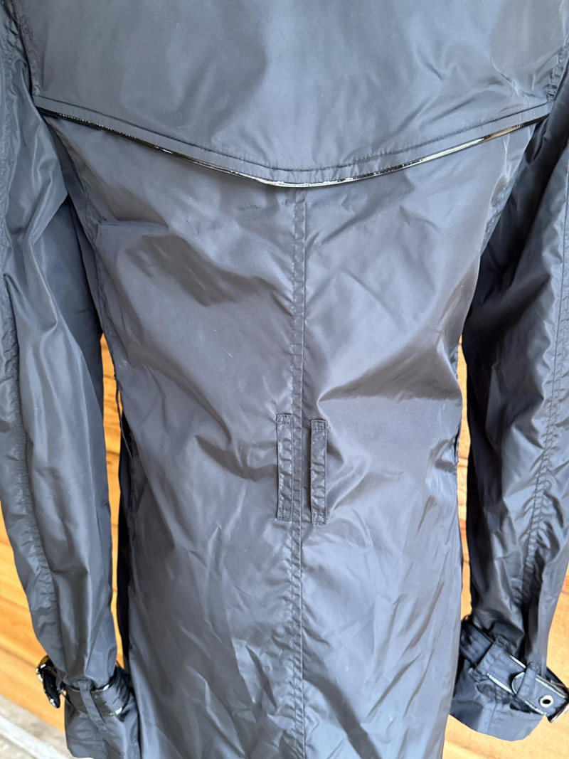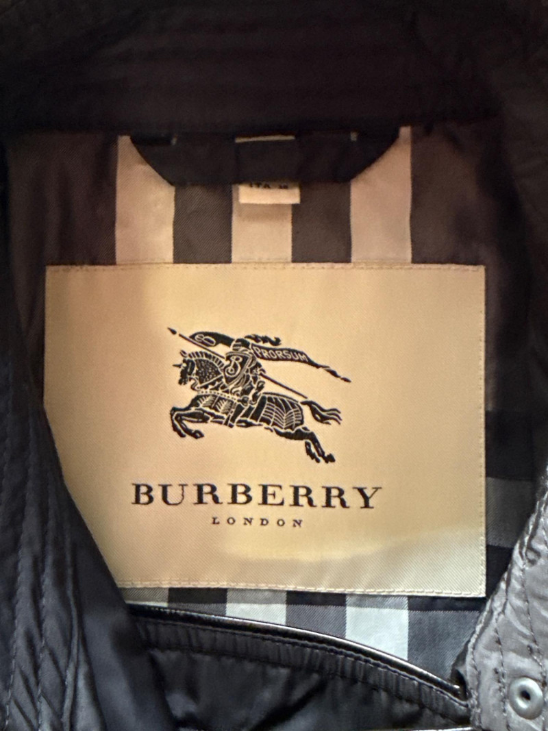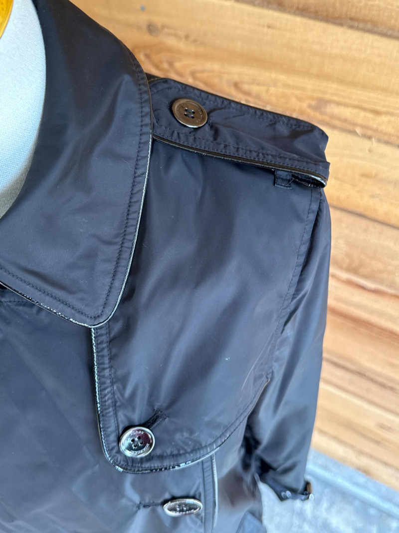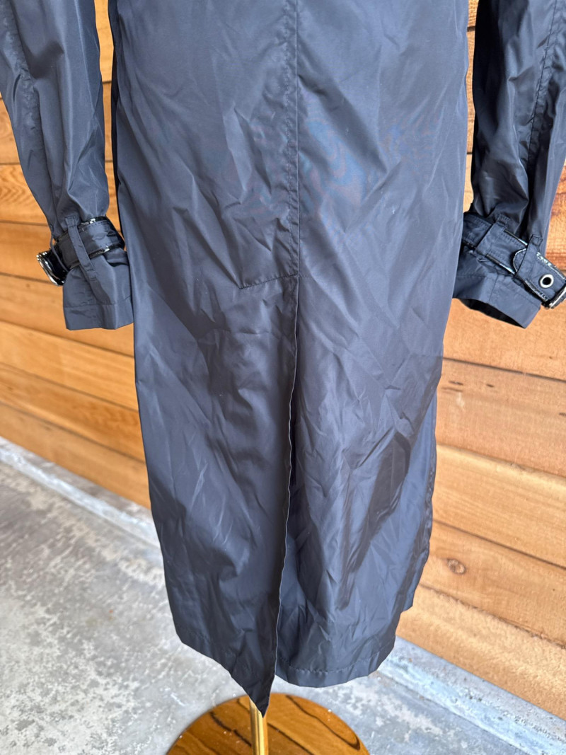 BURBERRY Black Trench Coat w/ Leather Trim- Sz 4 gently used condition, cleaning suggested Needs belt