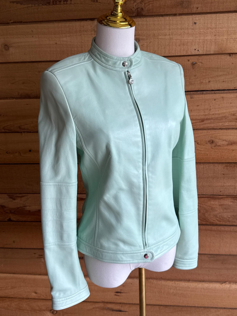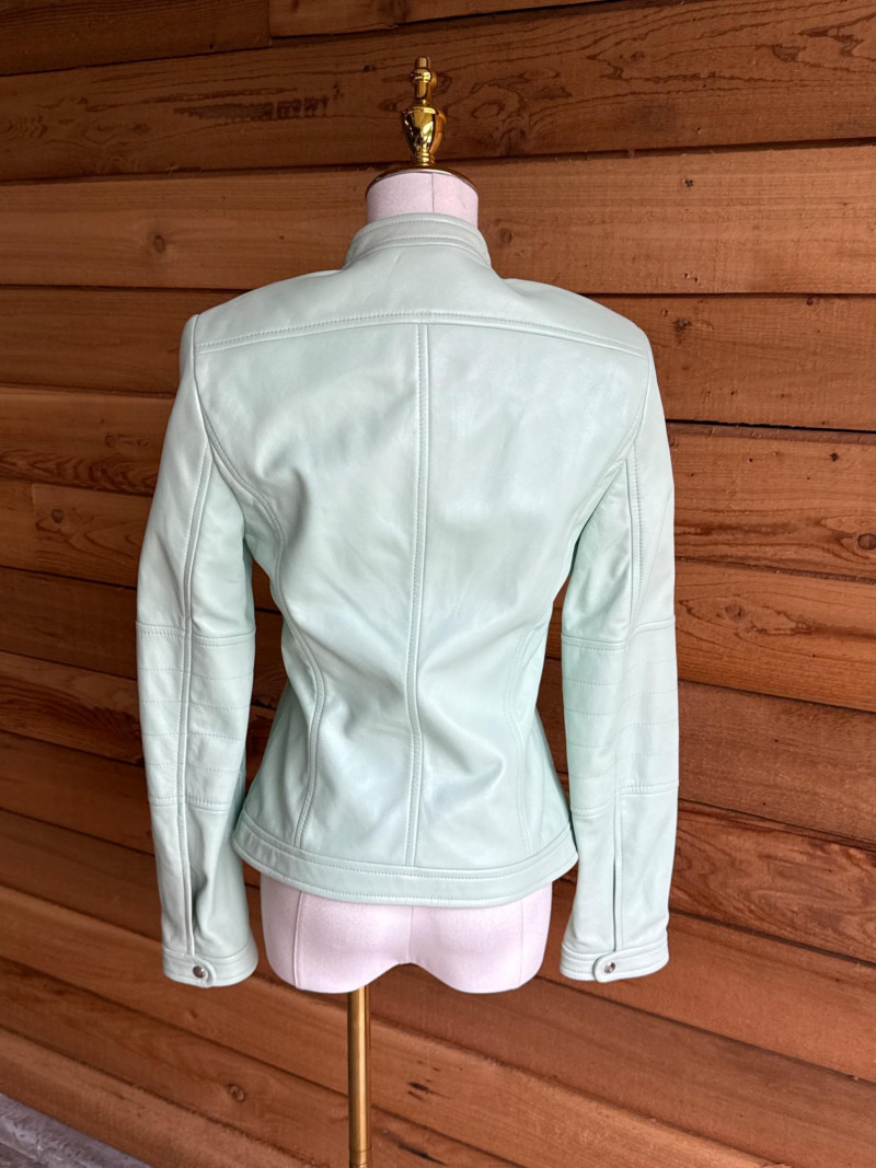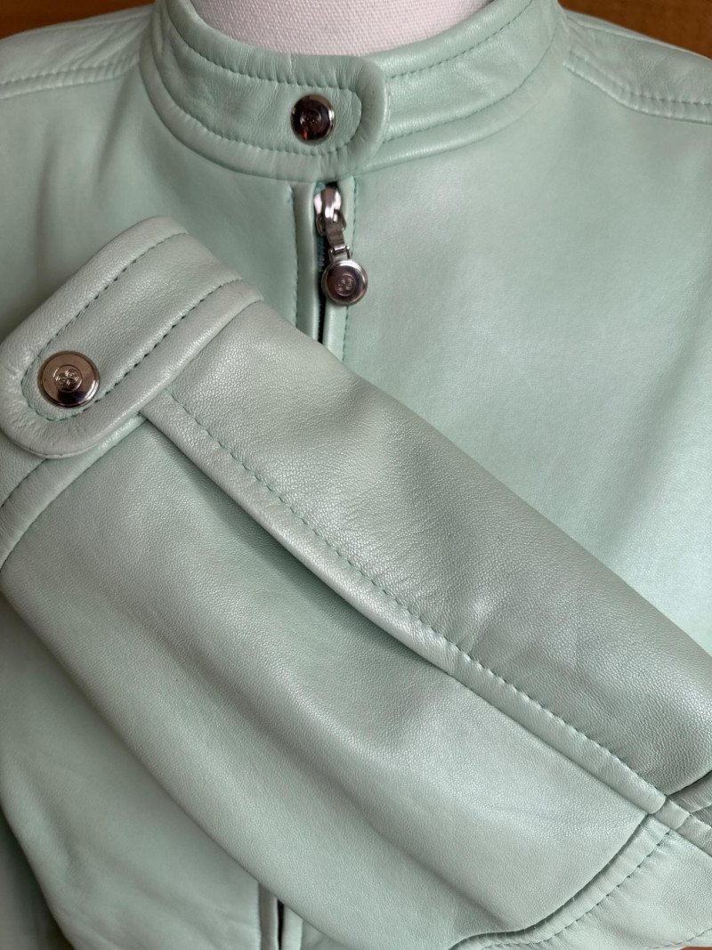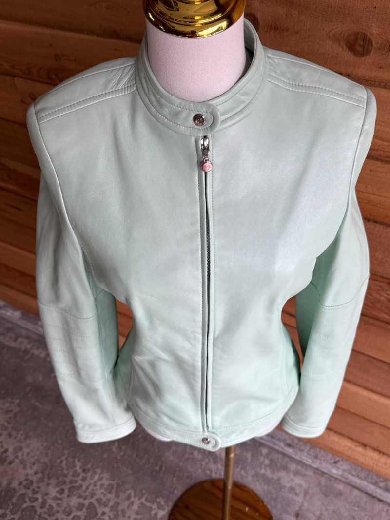 ESCADA Mint Green Moto Leather Jacket- Sz 34 *Matching Shoes & Bag in next lot (#36)