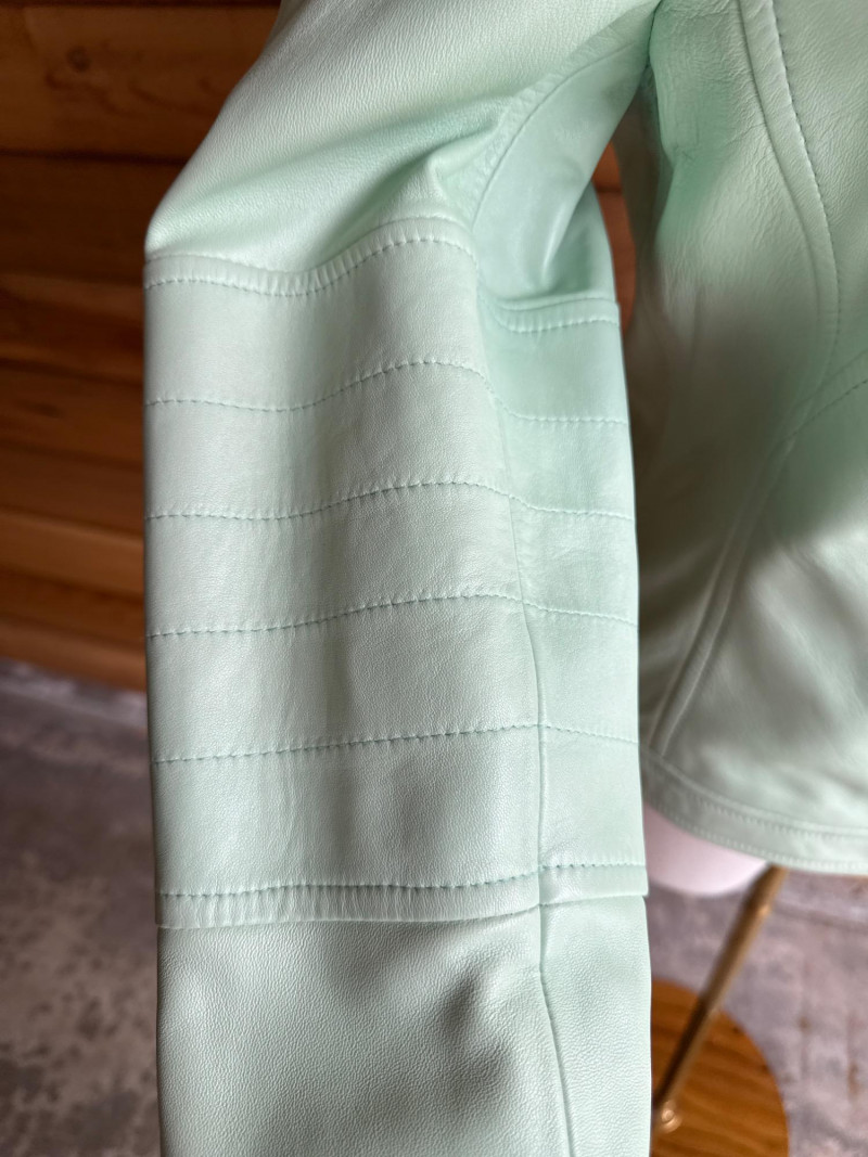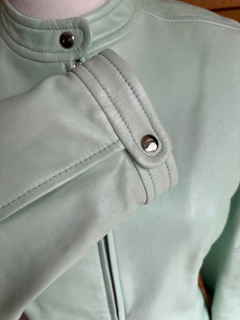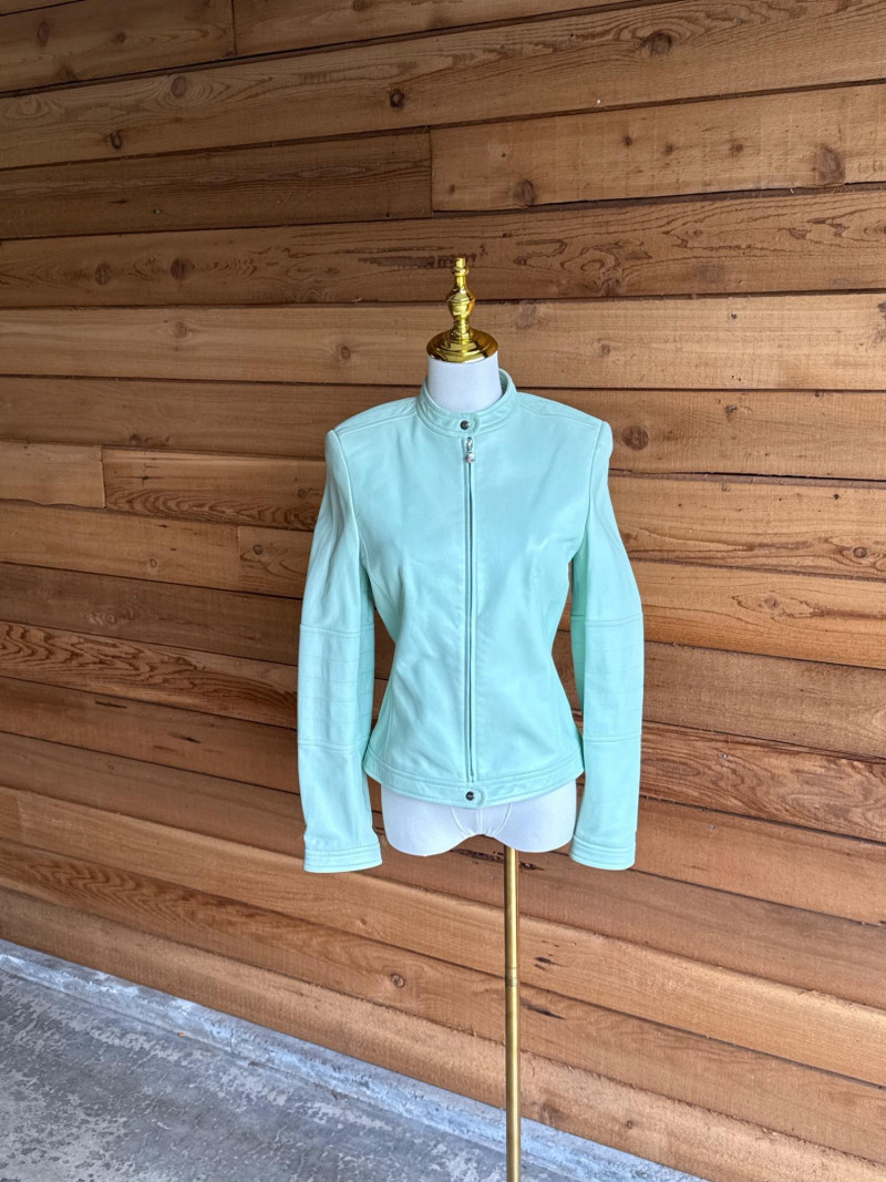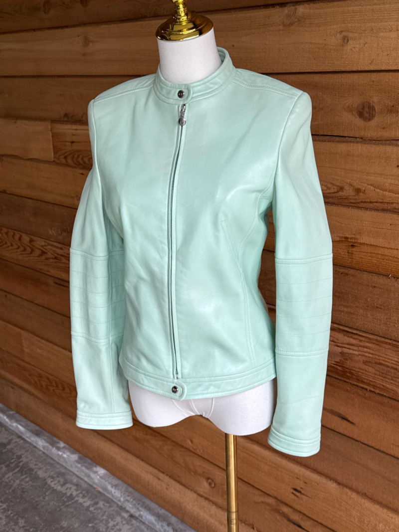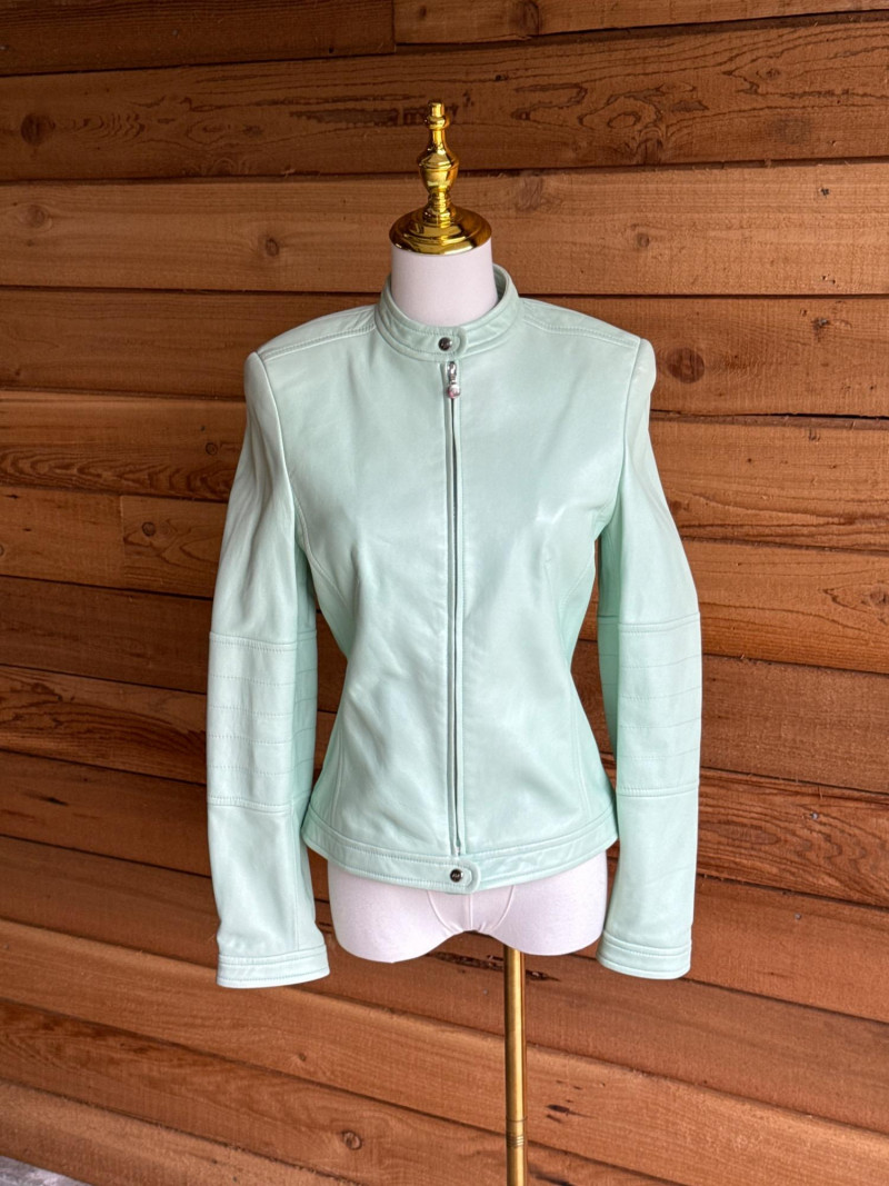 ESCADA Mint Green Moto Leather Jacket- Sz 34 *Matching Shoes & Bag in next lot (#36)