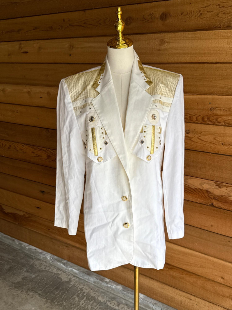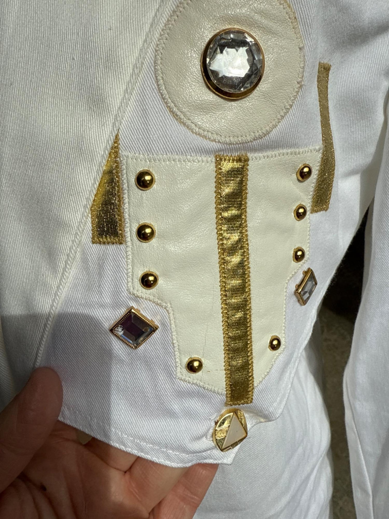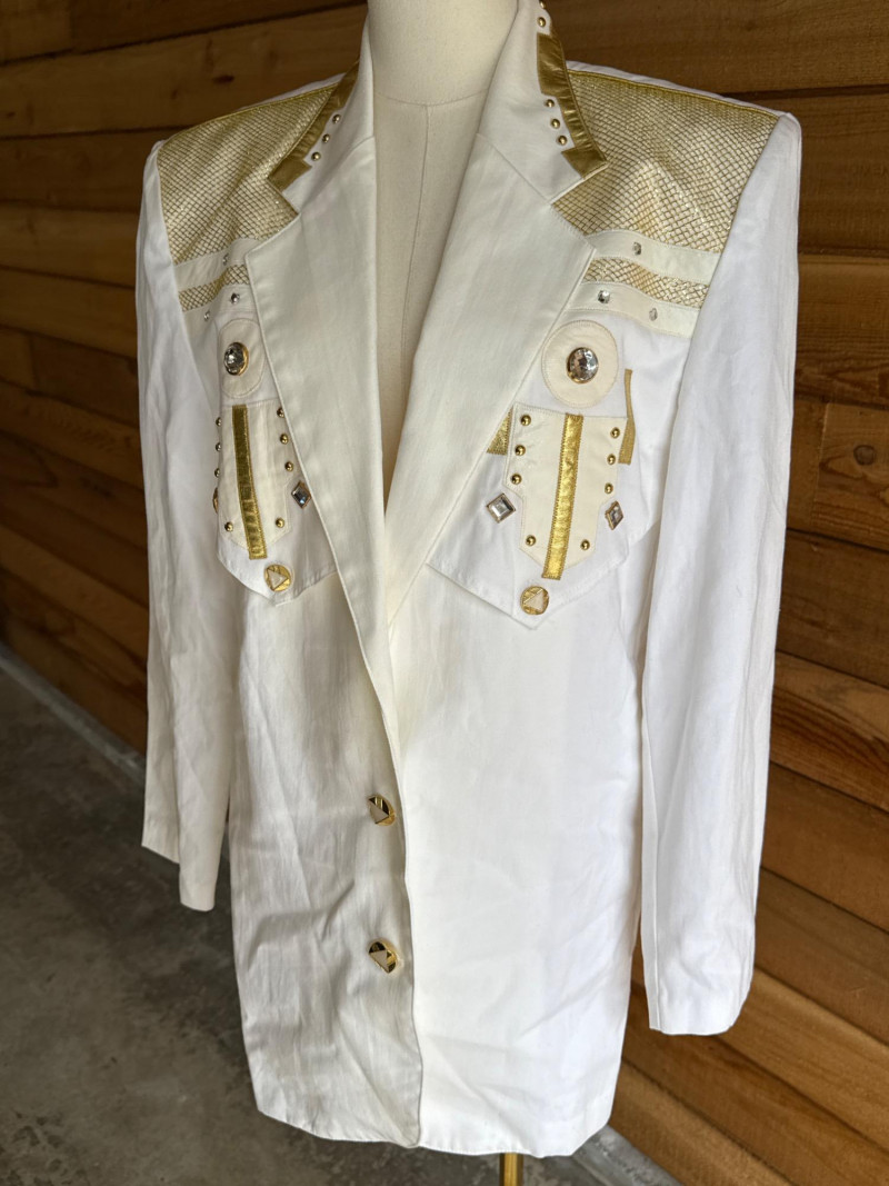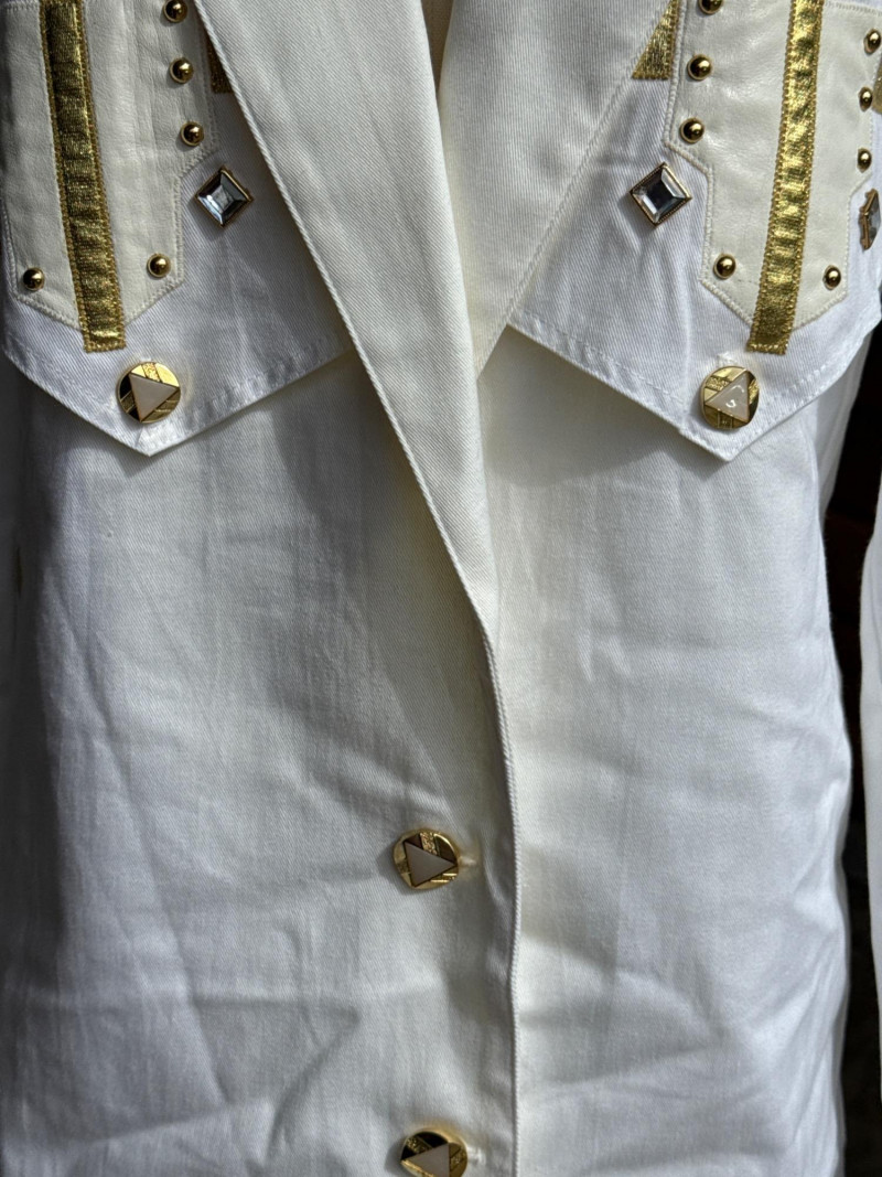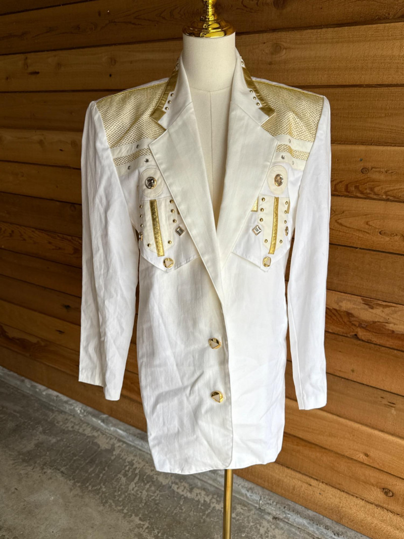 CITY GIRL Sport Vintage White Bling Jacket - Sz 6 *in good vintage condition- possible slight tinge of yellowing? Still a really fun jacket! Gold accents