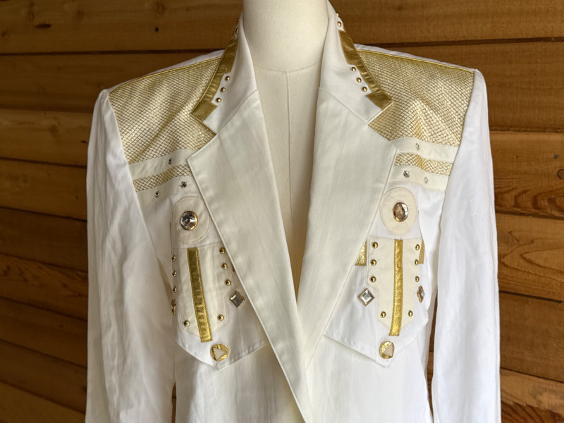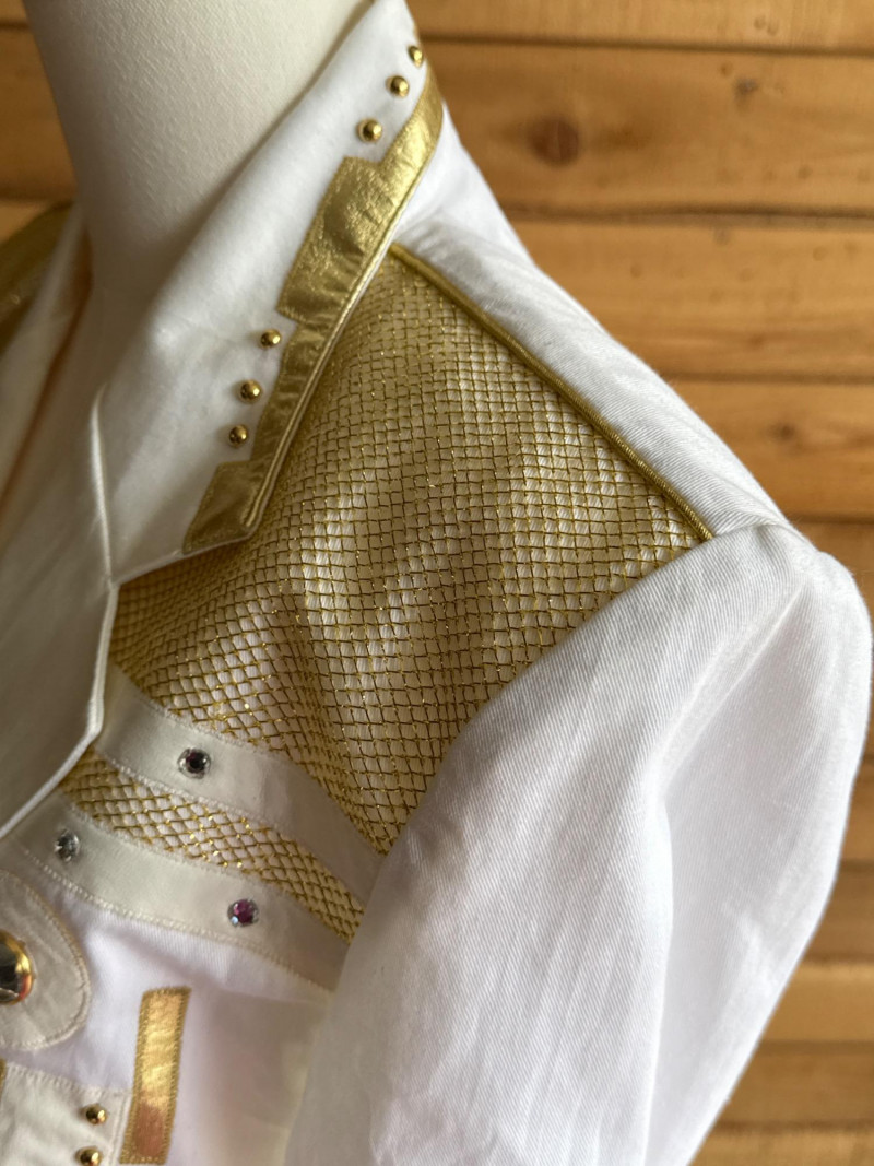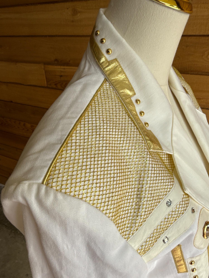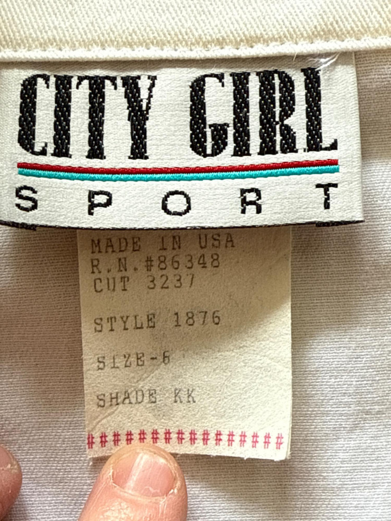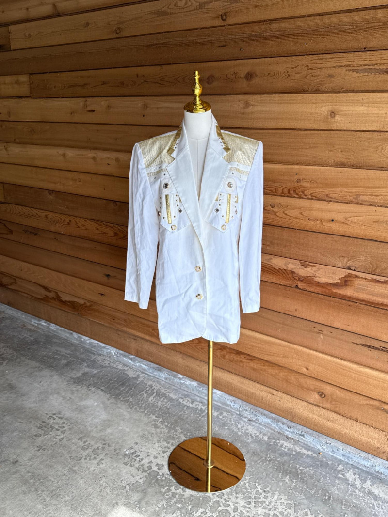CITY GIRL Sport Vintage White Bling Jacket - Sz 6 *in good vintage condition- possible slight tinge of yellowing? Still a really fun jacket! Gold accents