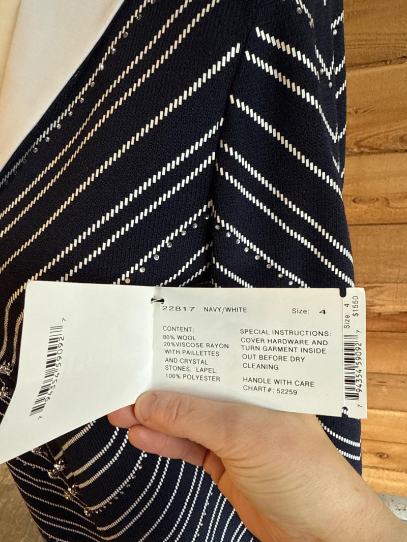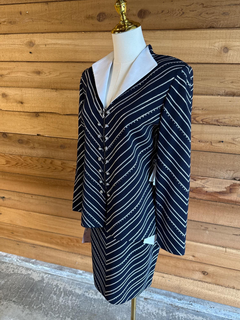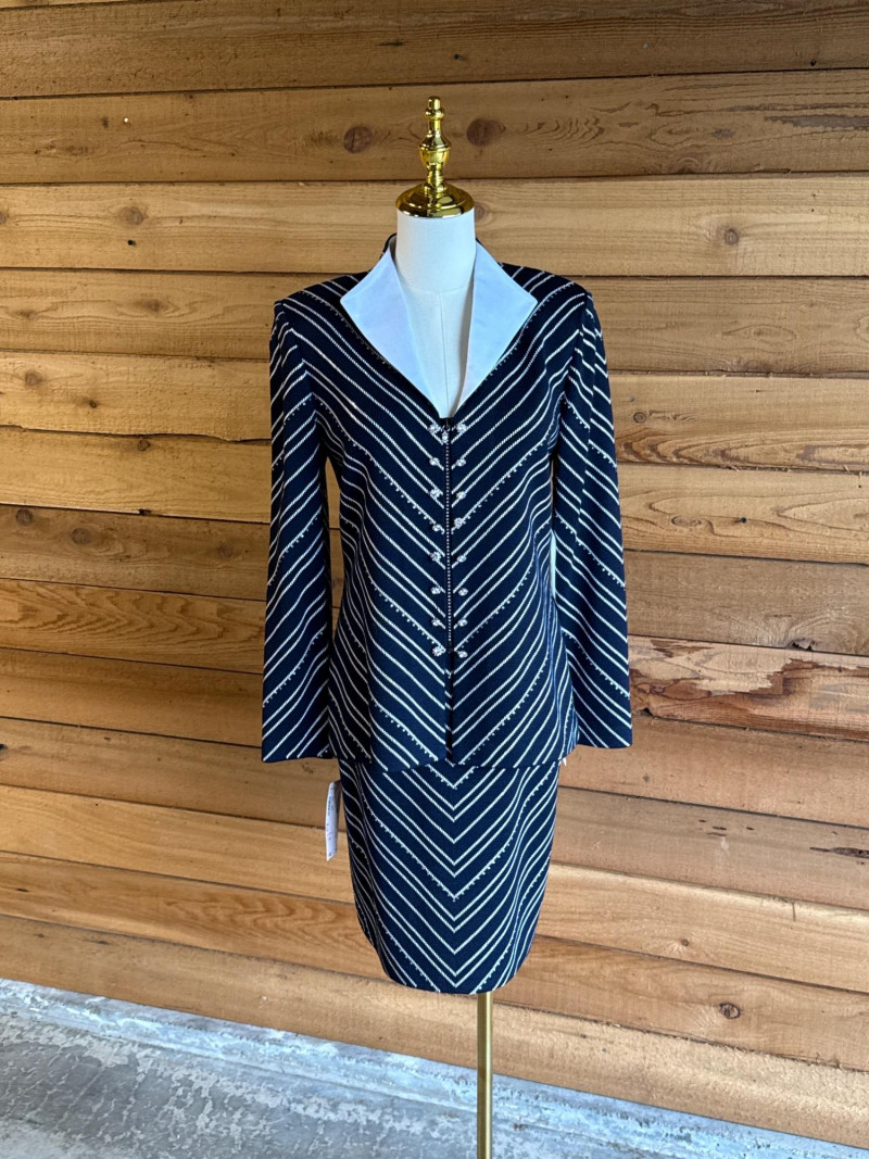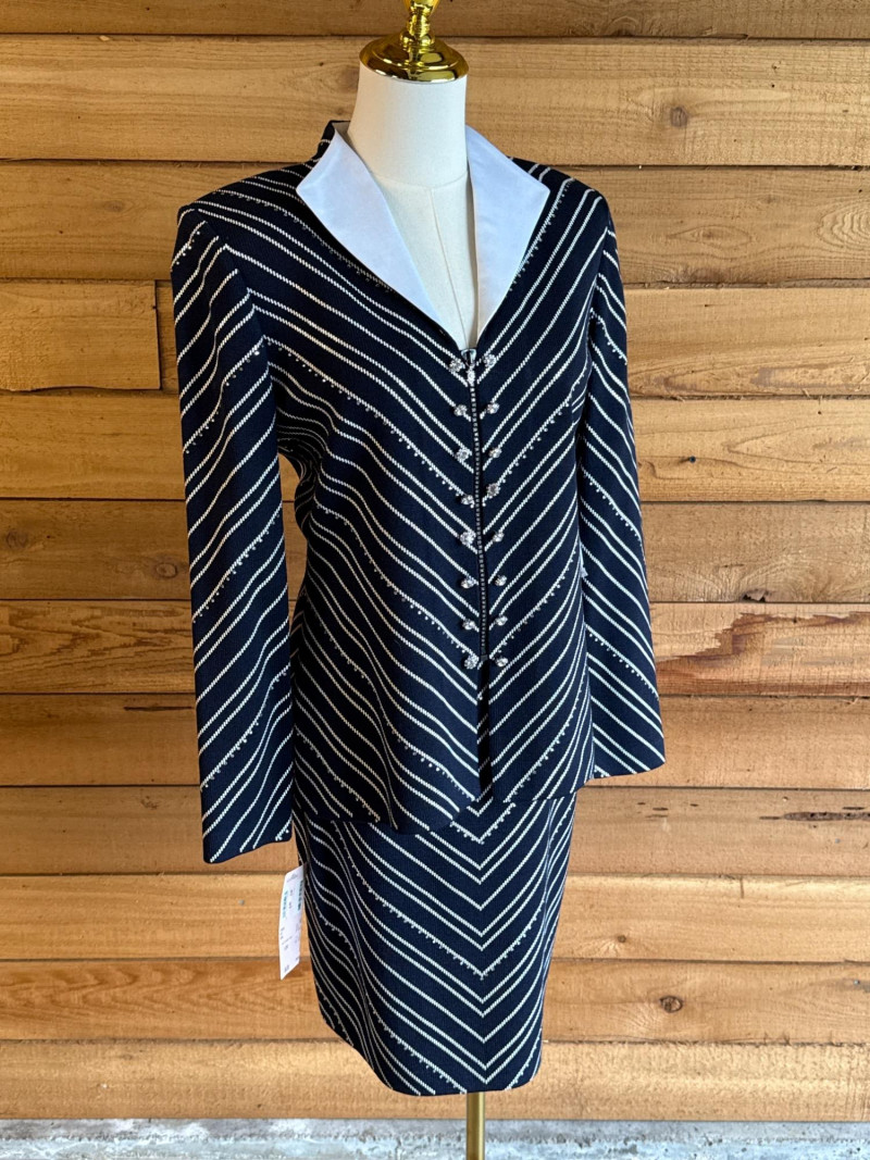 Lot # 13 - ST JOHN Evening Navy Blue & White Skirt Suit *NWT $1550 - Sz 4