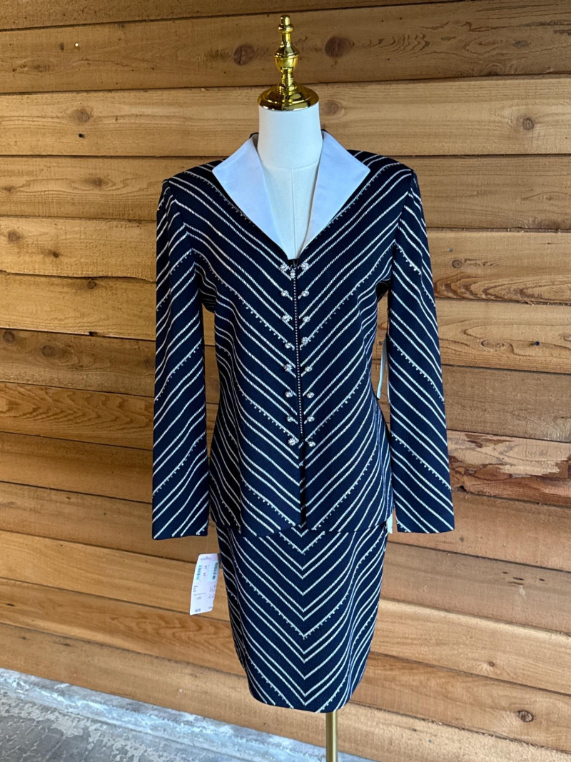 ST JOHN Evening Navy Blue & White Skirt Suit *NWT $1550 - Sz 4