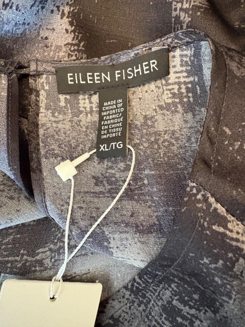 Lot # 23 - Grey & Black Print Silk Shirt - Eileen Fisher - New w/ Tag