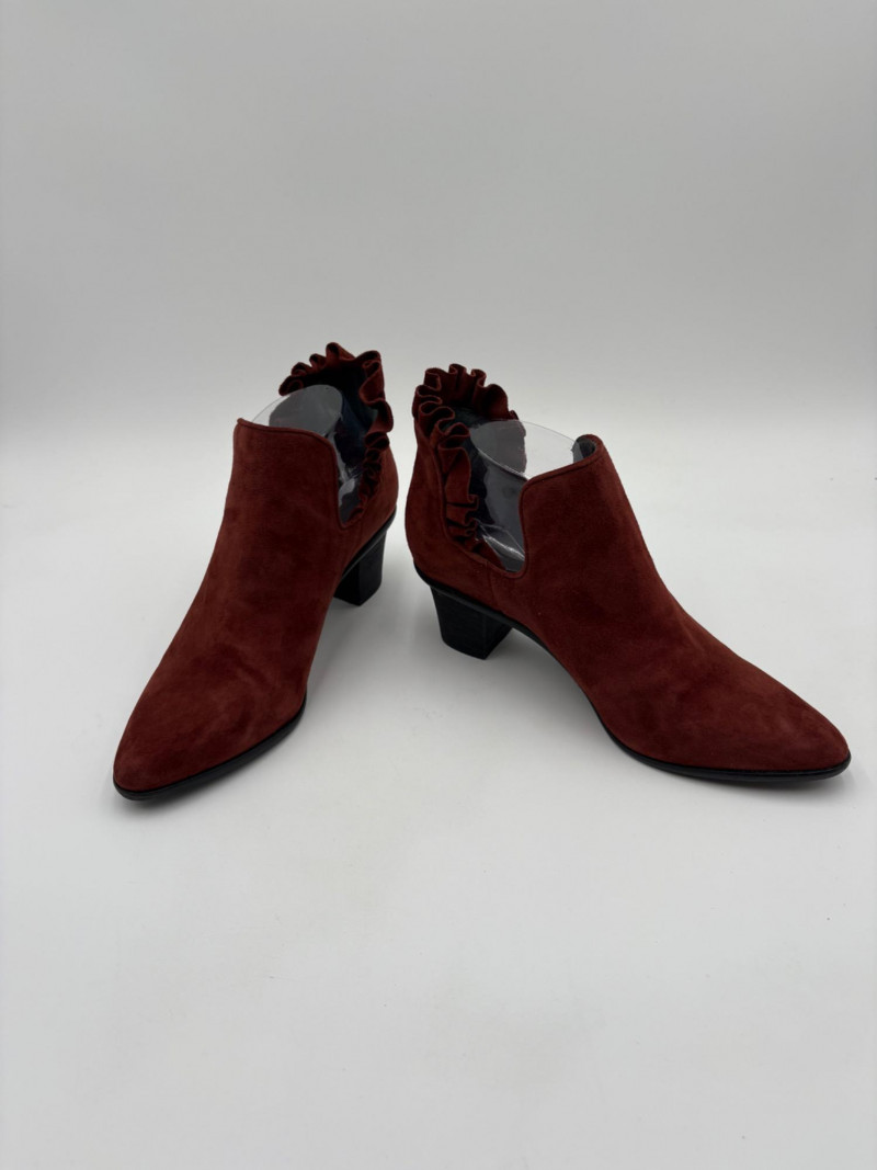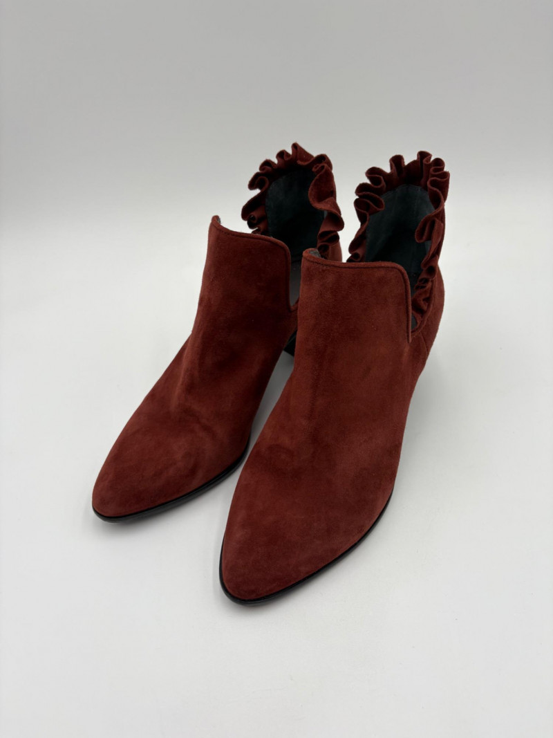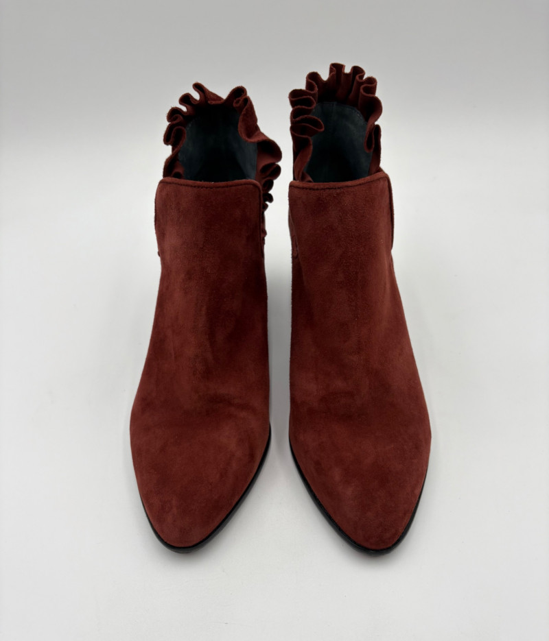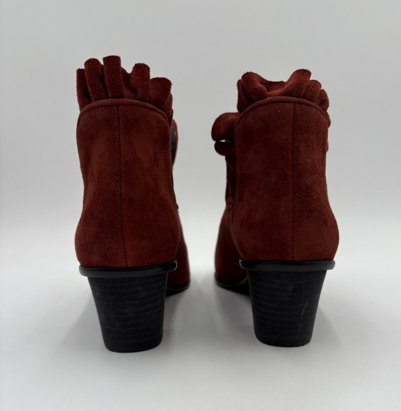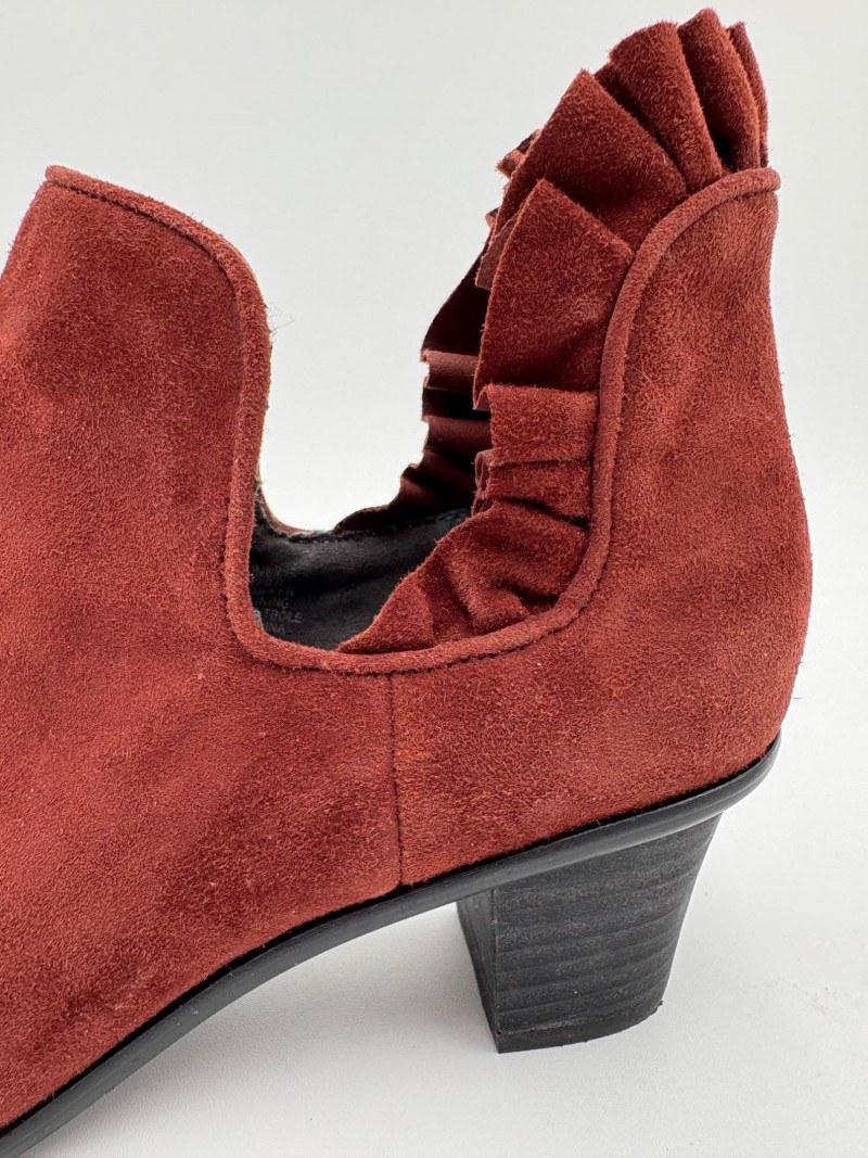 Lot # 45 - Brick/Brown Suede Ruffled Ankle Boots - Lori Goldstein