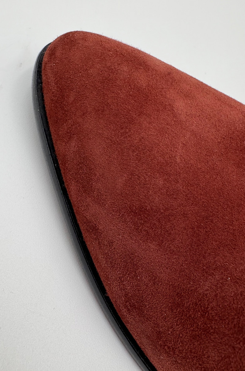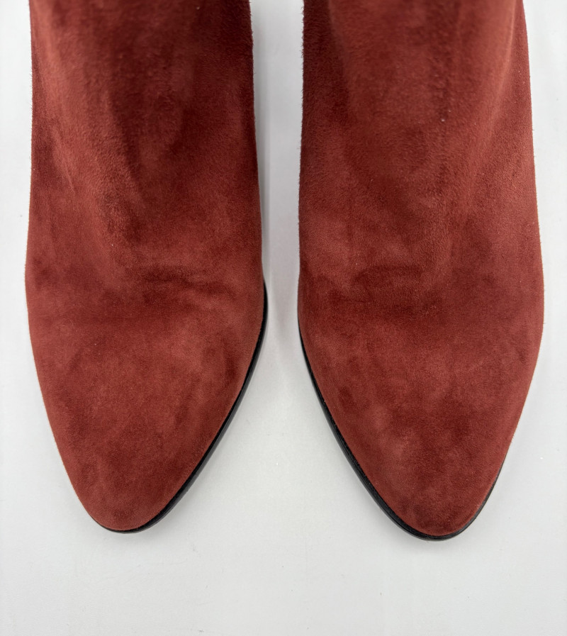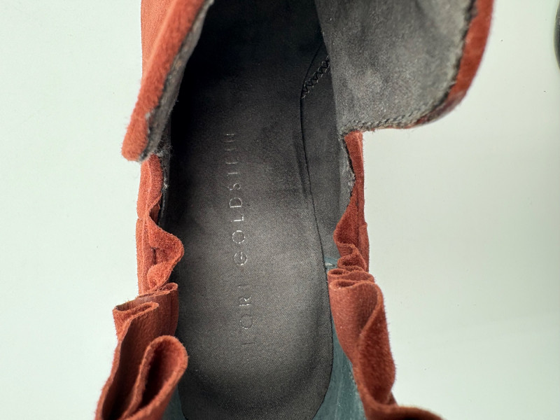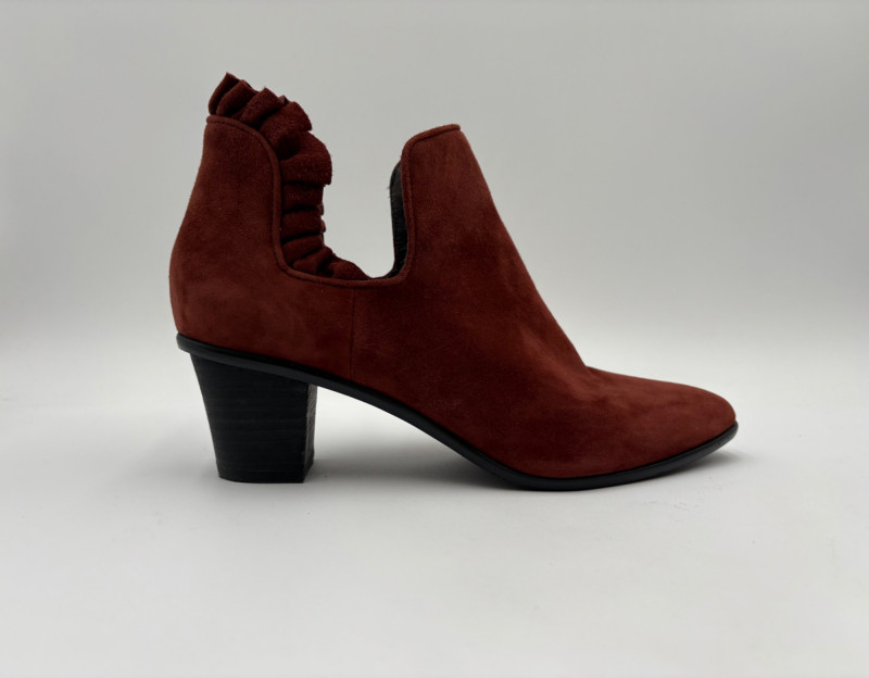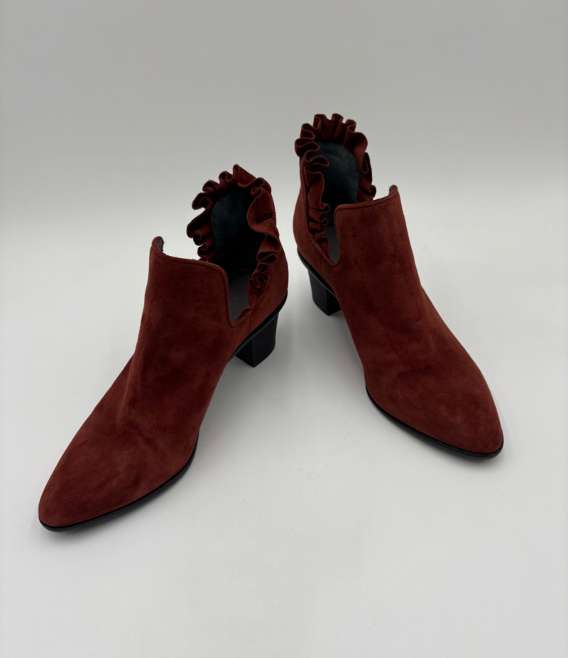 Lot # 45 - Brick/Brown Suede Ruffled Ankle Boots - Lori Goldstein