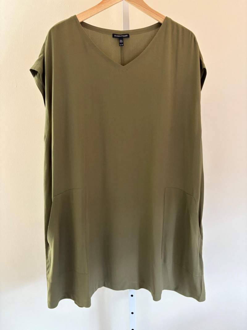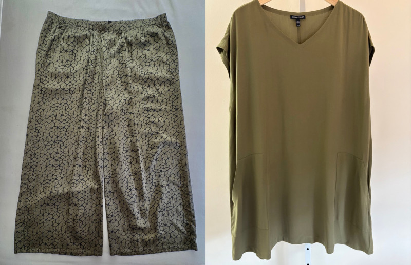 Lot # 46 - Olive Silk Tunic & Print Pants - Eileen Fisher