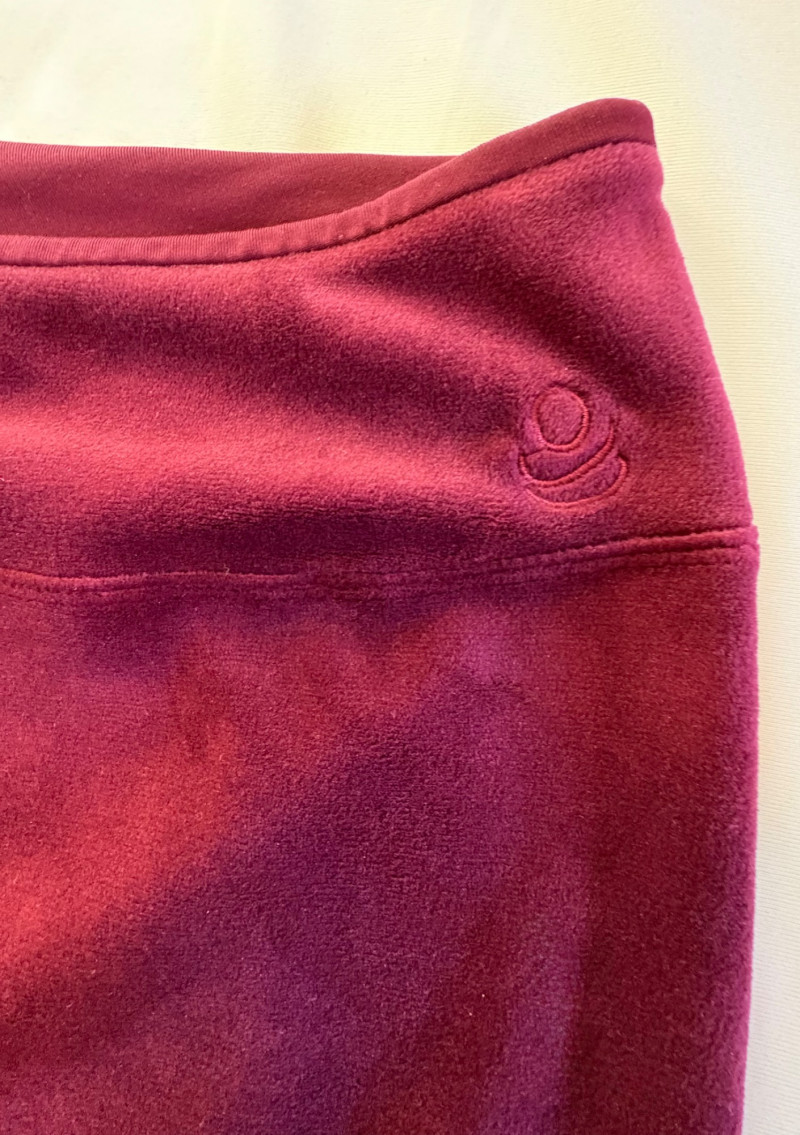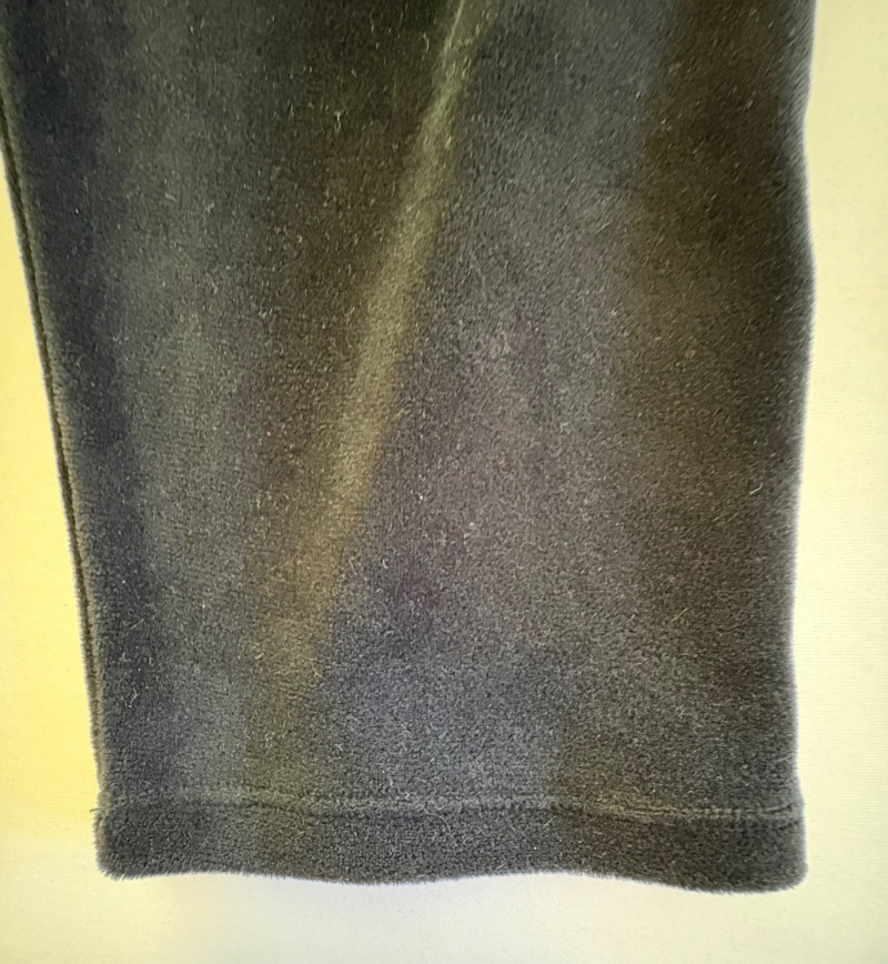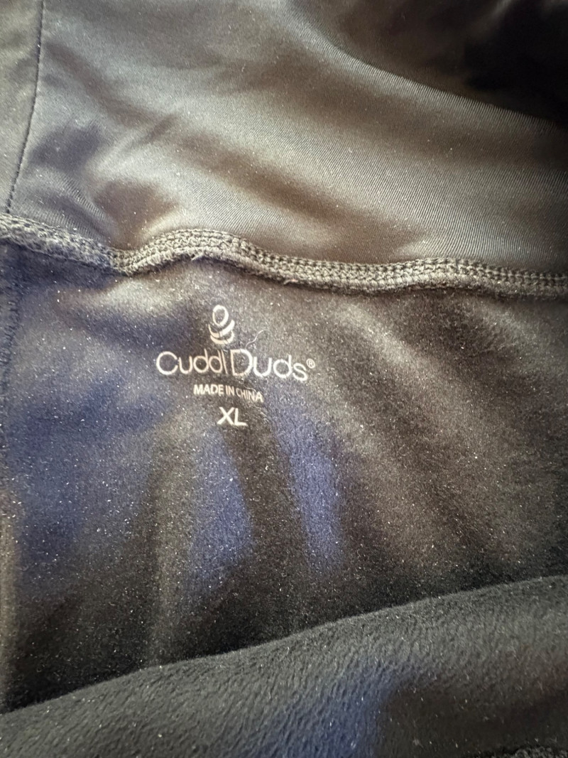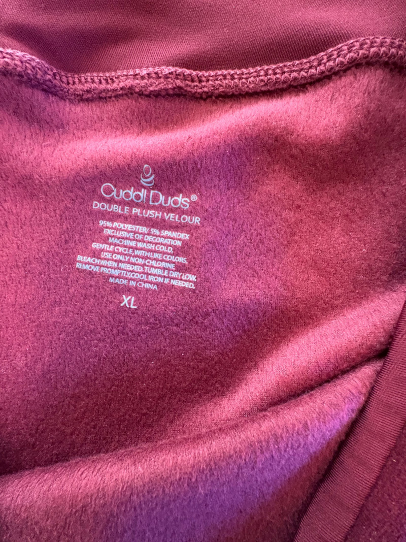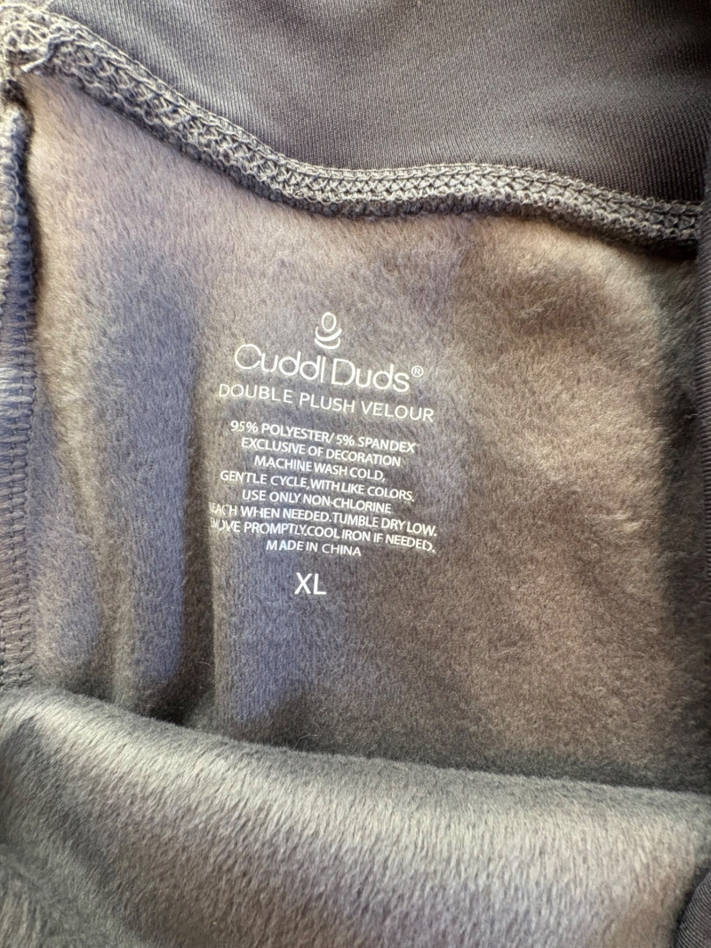 3 pairs of incredibly soft velour pants* from Cuddle Duds in medium grey, burgundy, and black. All have small waistline yoke with thin elastic waistband and tapered legs. All are in excellent condition. 95% polyester with 5% spandex. All measure 18.5" side to side at waist with 28" inseam. Size tags say XL. * we think they feel like Minky fabric