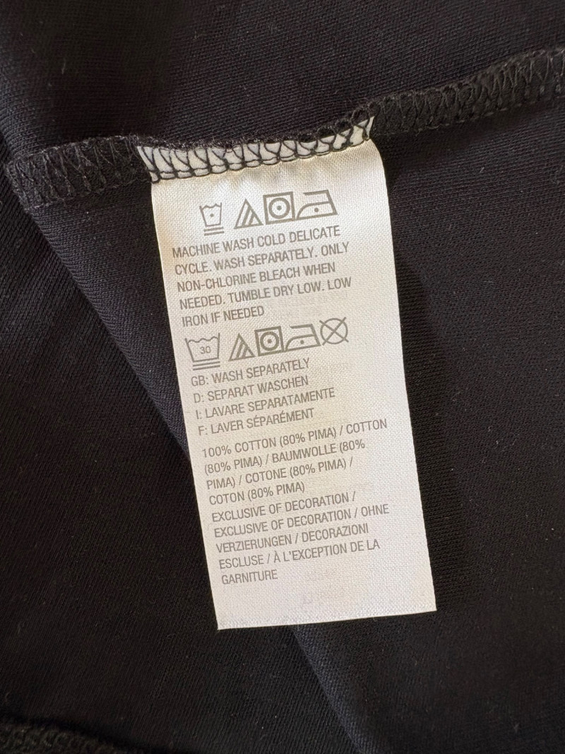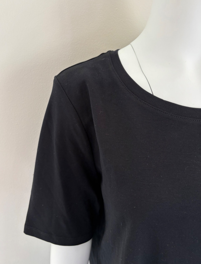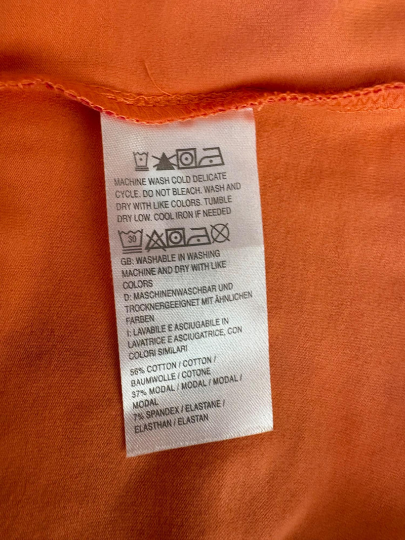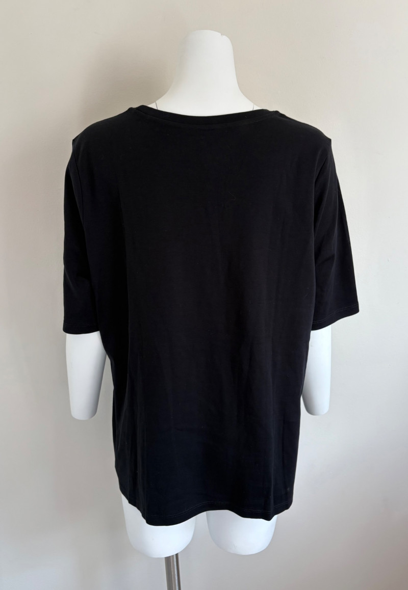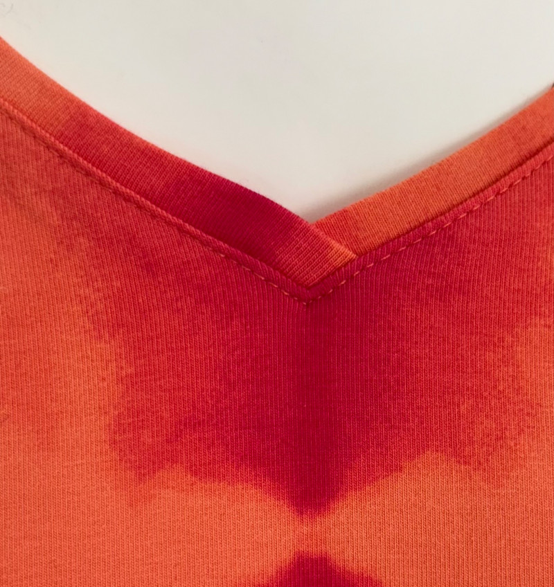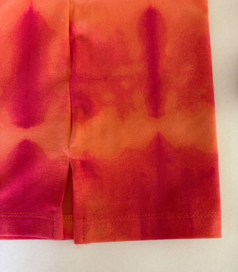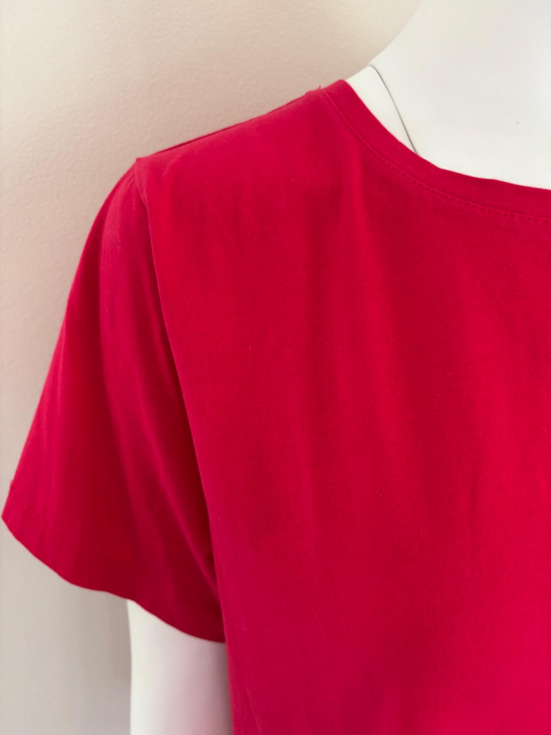 Three knit shirts from Isaac Mizrahi & Massimo. Black scoop neck short sleeve shirt from Mizrahi has ribbed collar and straight cut - knit is heavier than your average t-shirt. In excellent condition with no fading. 100% cotton. Measures 22" pit to pit and 25.5" from back collar to back bottom hemline. Size tag says XL. Tie-dye V-neck shirt from Mizrahi has ribbed collar, 3/4 sleeves, and split hem - knit is heavier than your average t-shirt. In excellent condition with no fading. 100% cotton. Measures 22.5" pit to pit and 26.5" from back collar to back bottom hemline. Size tag says L. Red t-shirt from Massimo has curved neckline and very short sleeves. In excellent condition. 95% cotton with 5% spandex. Measures 23" pit to pit and 26" from back neckline to back hemline. Size tag says16W/18W.