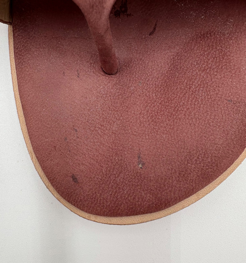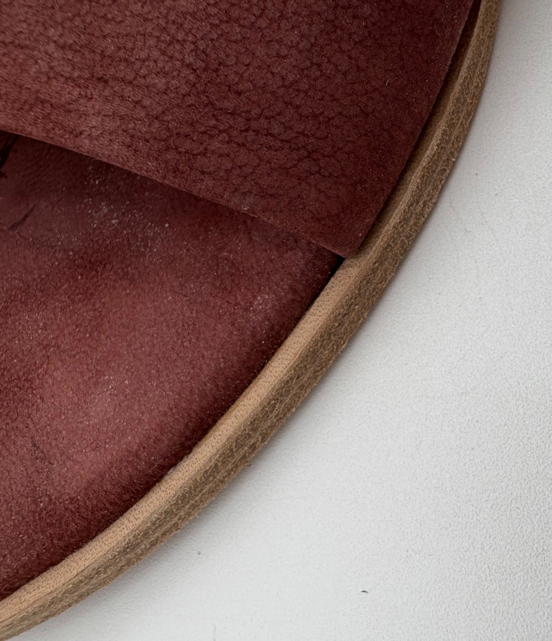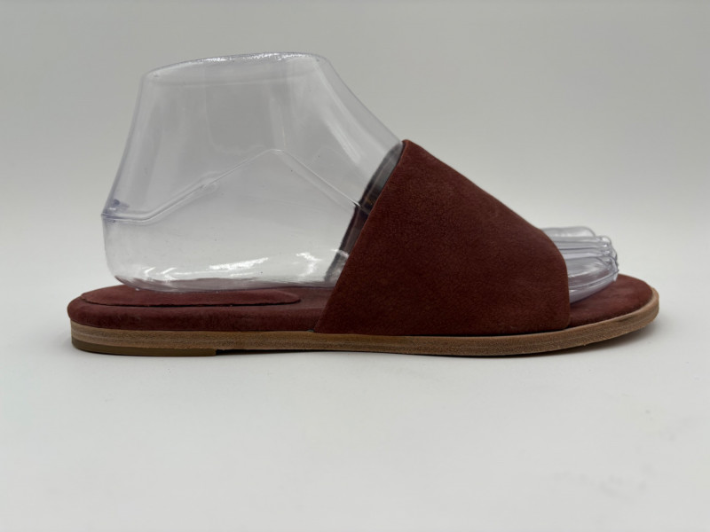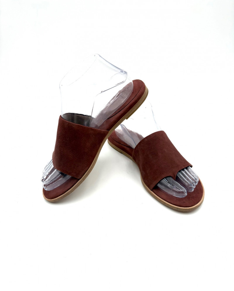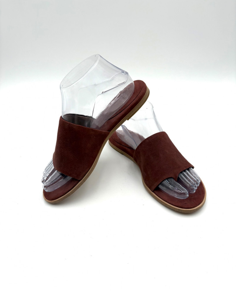 Reddish/taupe flip-flop style sandals from Eileen Fisher. Natural color leather soles with colored suede leather insole and upper. Extra padding on heel. In excellent condition with slight wear on soles, but look new when on. Size 7