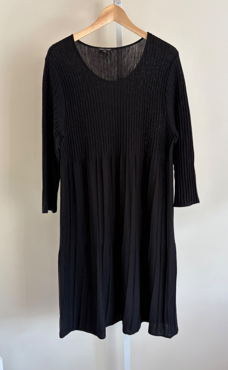 Lot # 72 - Black Wool Knit Dress & Silk Scarf - Eileen Fisher/Cabi