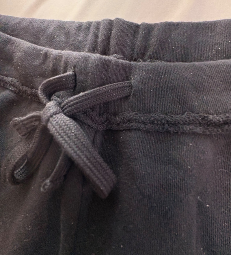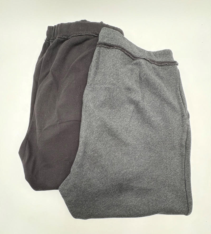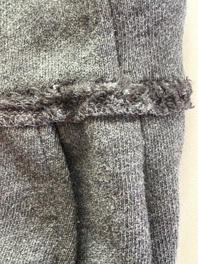 2 pairs of old school high-quality crewneck sweatpants from Eileen Fisher in black and gray. These are not the cheap thin things we’ve become used to - these are heavyweight with a terrycloth interior, elasticated hems, waistband with drawstring, set-in side front pockets, and deconstructed waistband seam. Both are in excellent condition and are made of 100% organic cotton. Black pair measures 18" side to side at waist with 27" inseam. Size tag says L/G. Grey pair measures 18.5" side to side at waist with 26.5" inseam. Size tag says L/G.