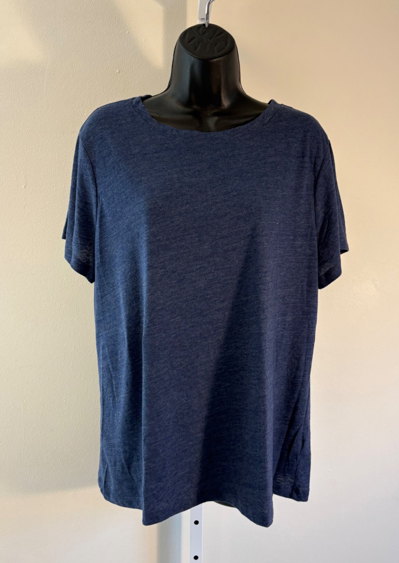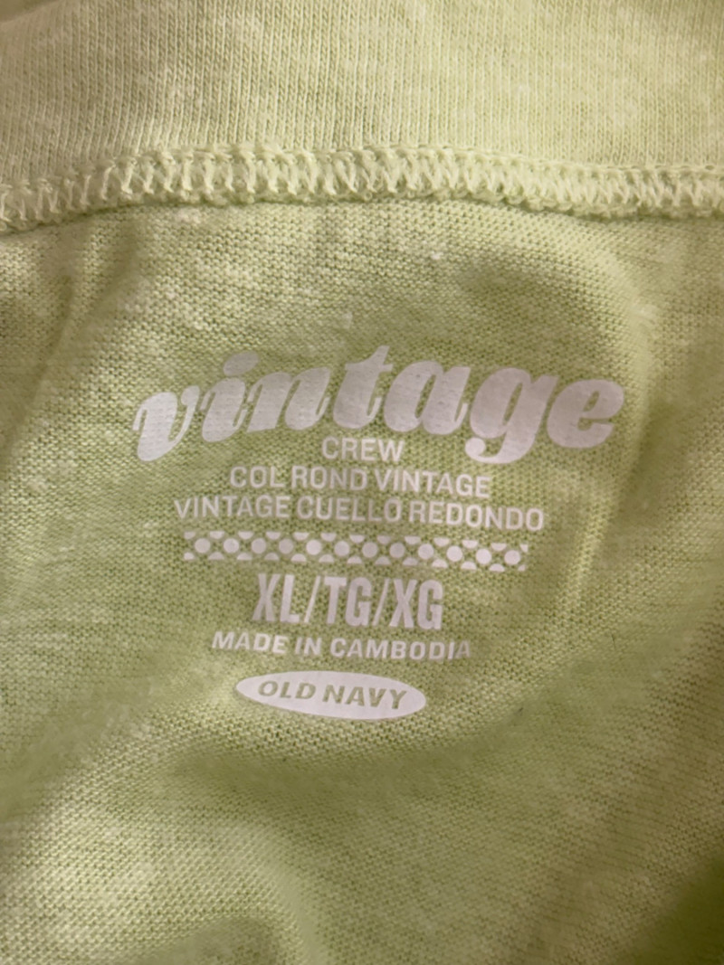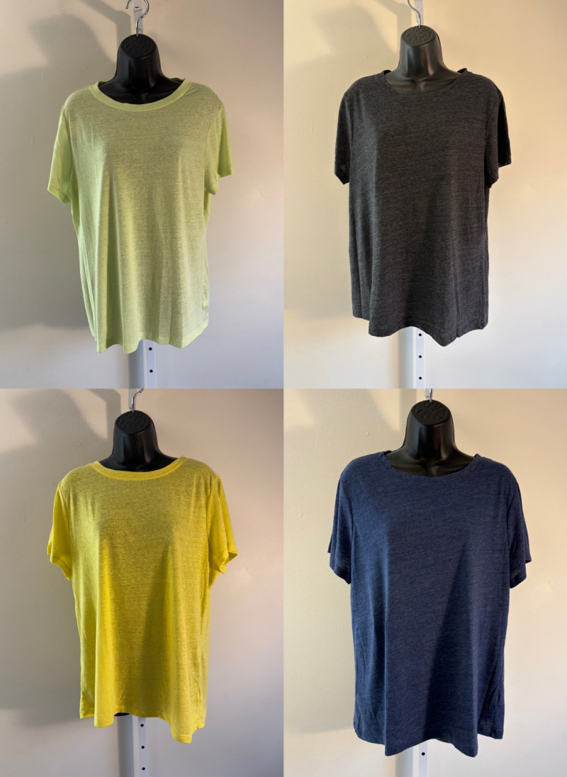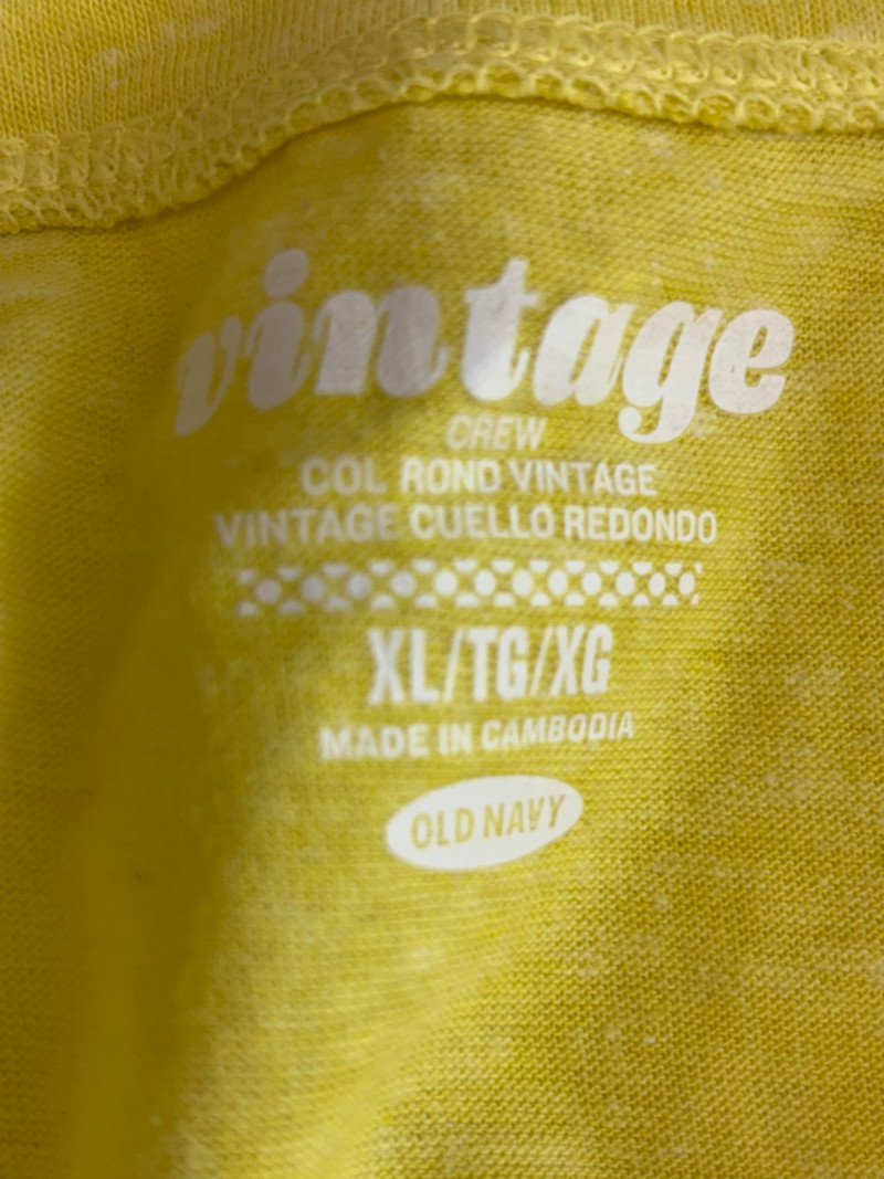 4 great casual t-shirts from Old Navy. All are in good used condition with lots of life left. We believe they are all the same design with ribbed round neck, short sleeves, and lightweight weave in 53% polyester with 35% cotton and 12% rayon. Size tags say XL. They all measure between 19.5" and 21" pit to pit and between 24" and 28" from back neckline to back hem (probably from different washing techniques). Size tags say XL :